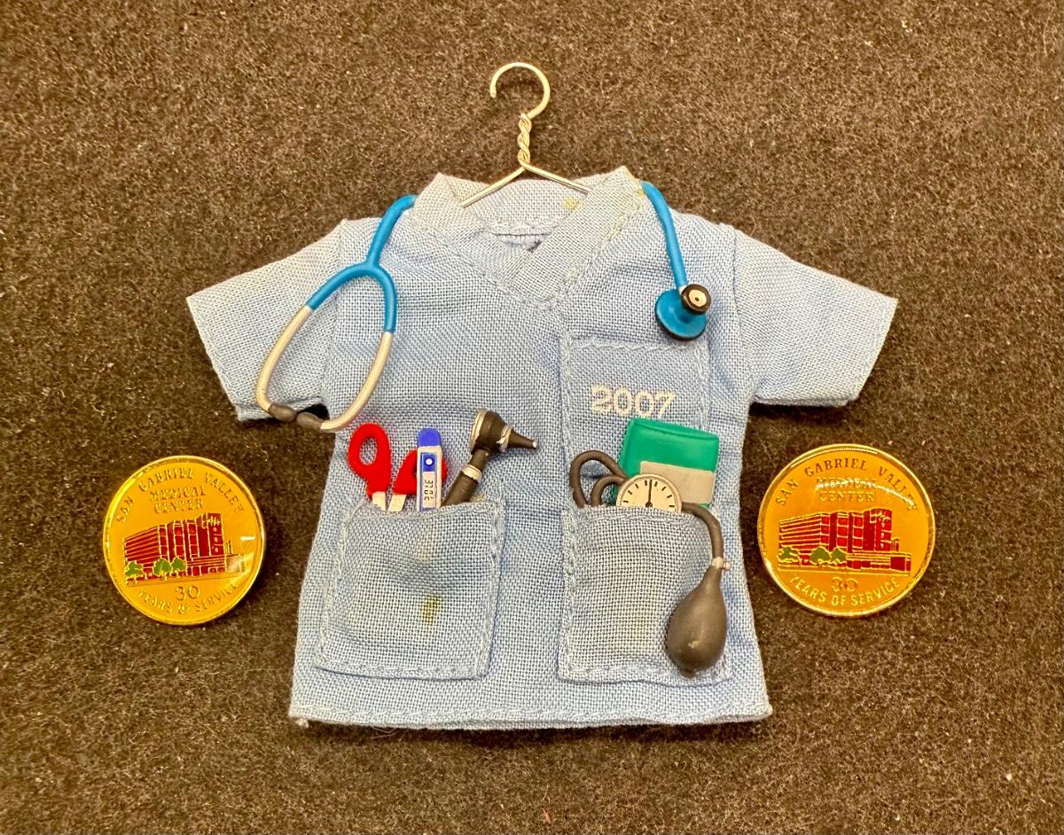 Miniature Nurses Coat and 30 Year Hospital Service Puns