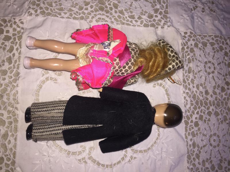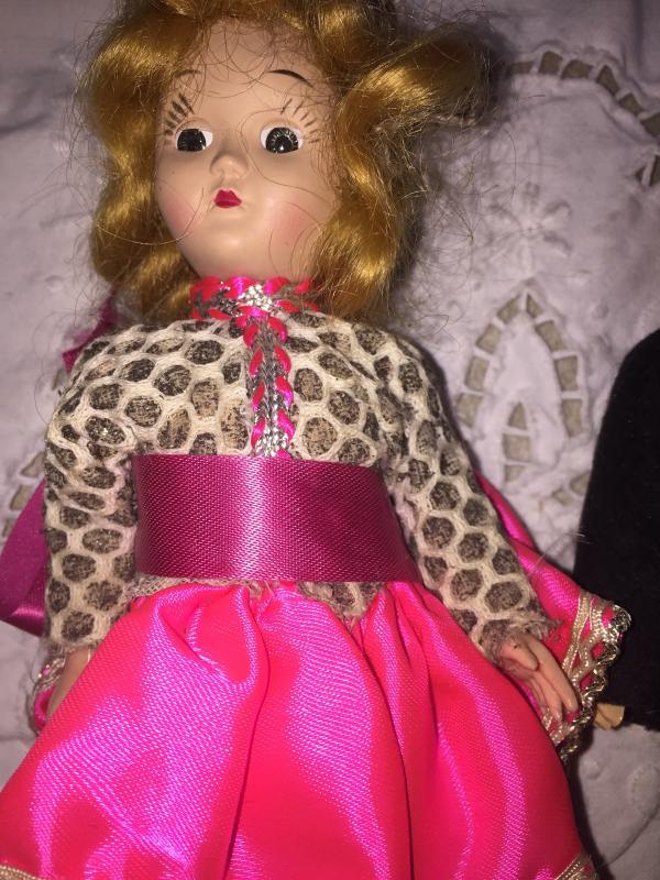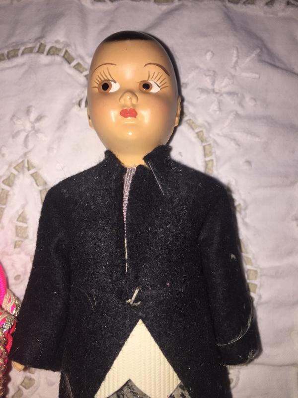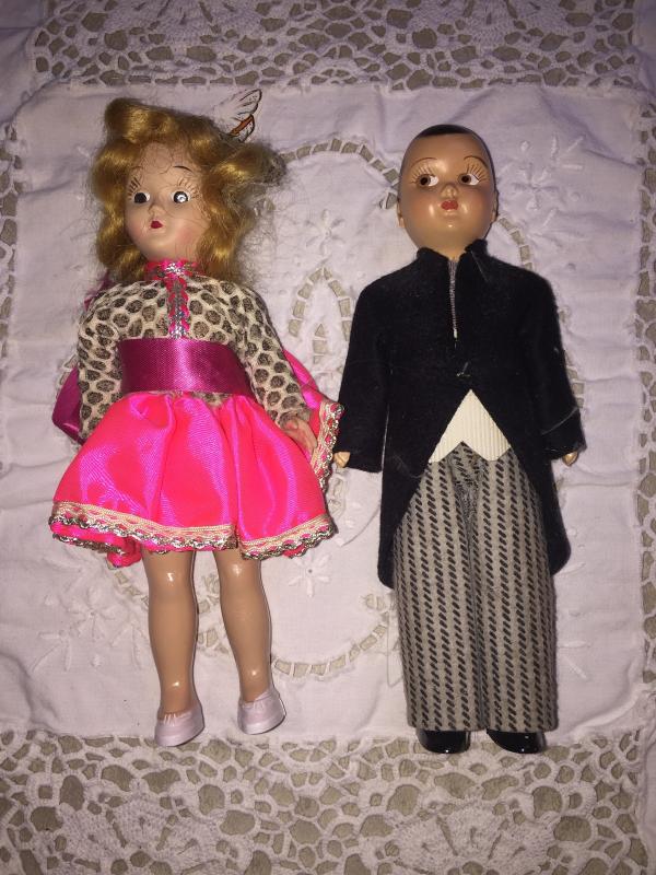 Marci doll with her sweet little partner! These two are in great vintage condition fingers and toes still intact hair still in place original Clothing on the pair. The sweet miniature dolls are a great addition for any doll collector.