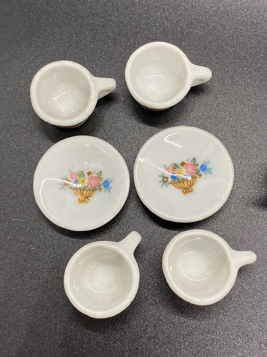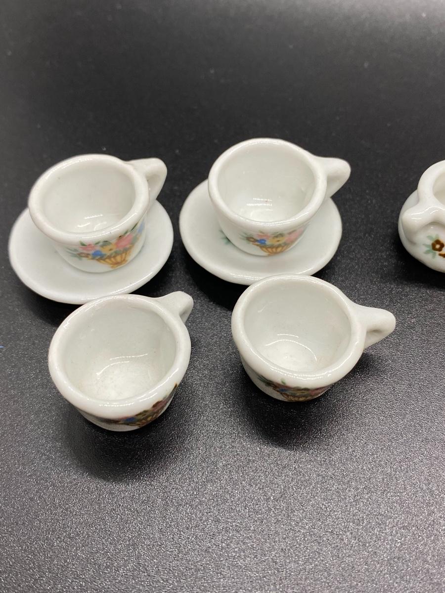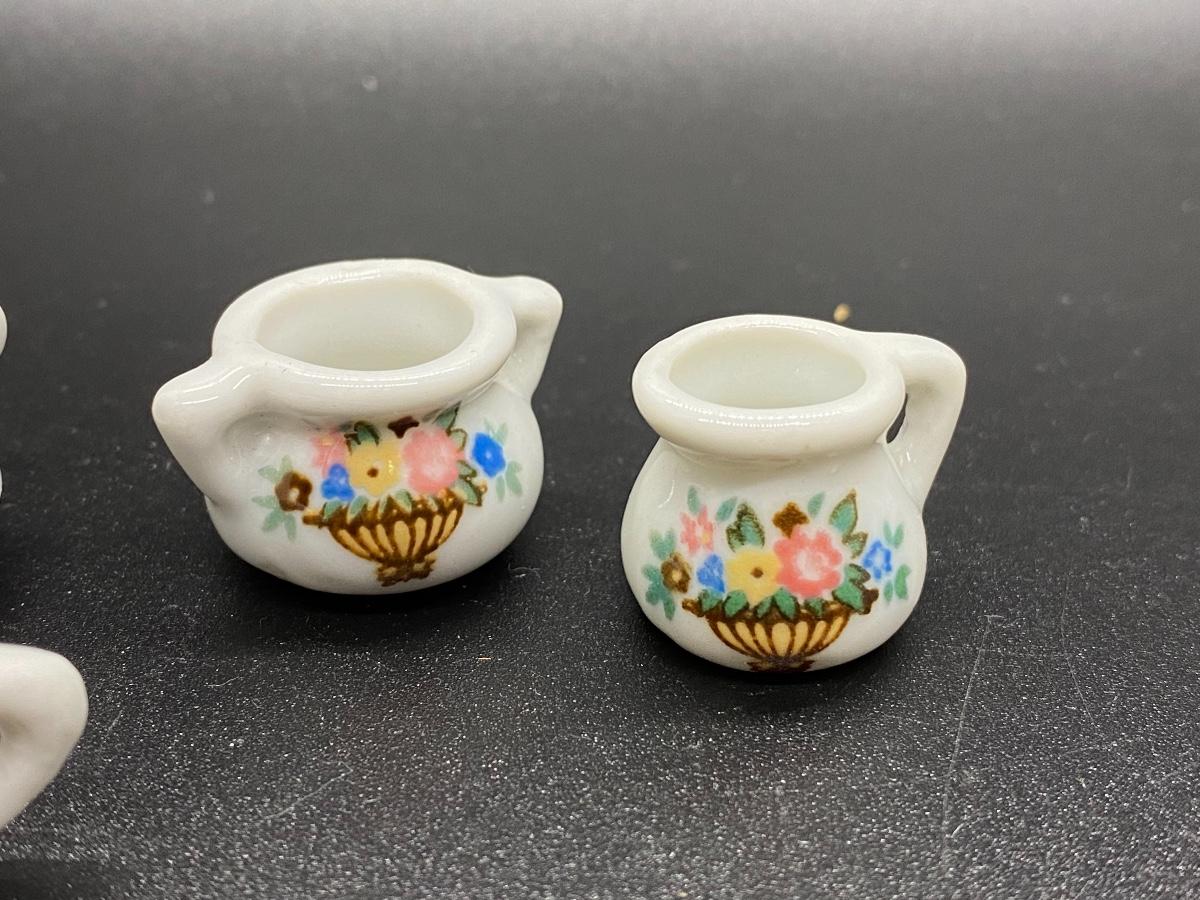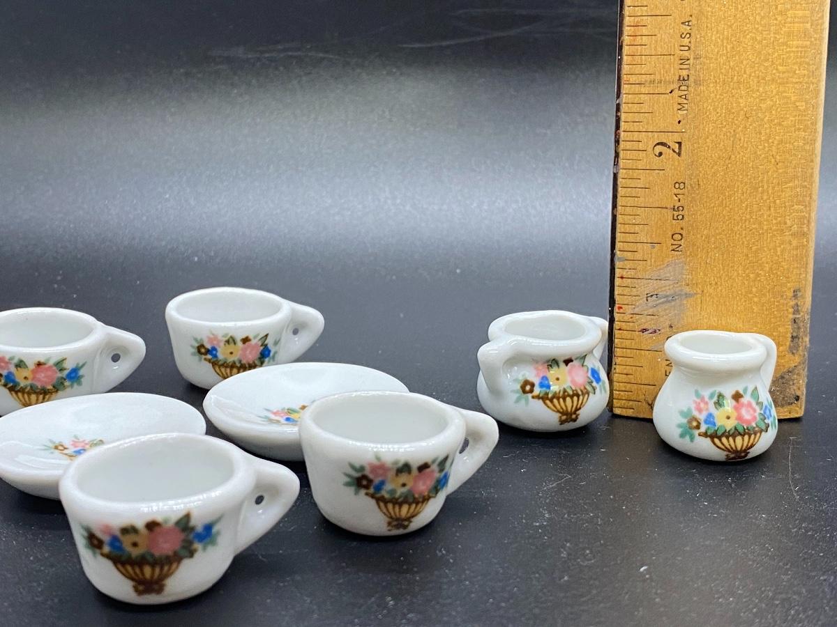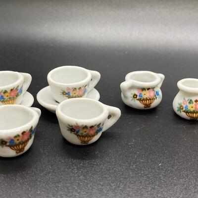 Miniature Porcelain Floral Tea Cups, Saucers, Sugar Bowl, Pitcher