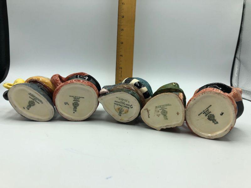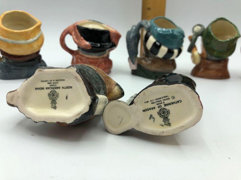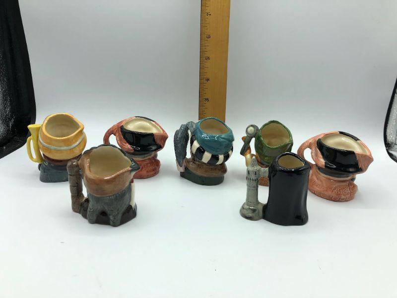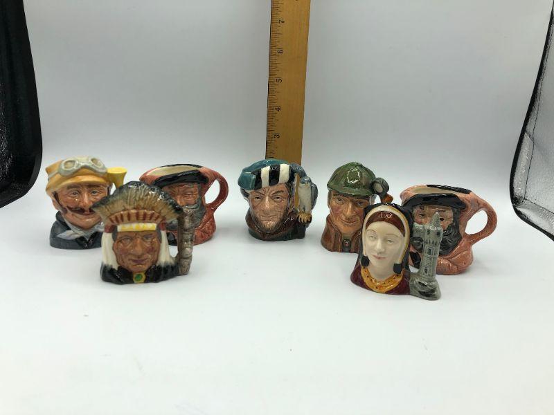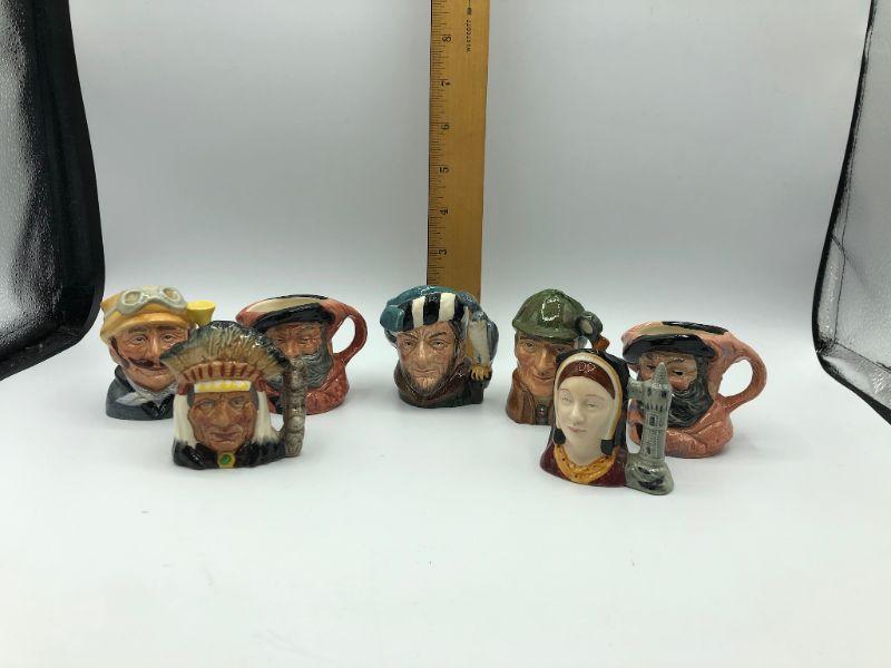 Set of 7 miniature Royal Doulton Toby Mugs. 2" size. Includes everything photo'd.