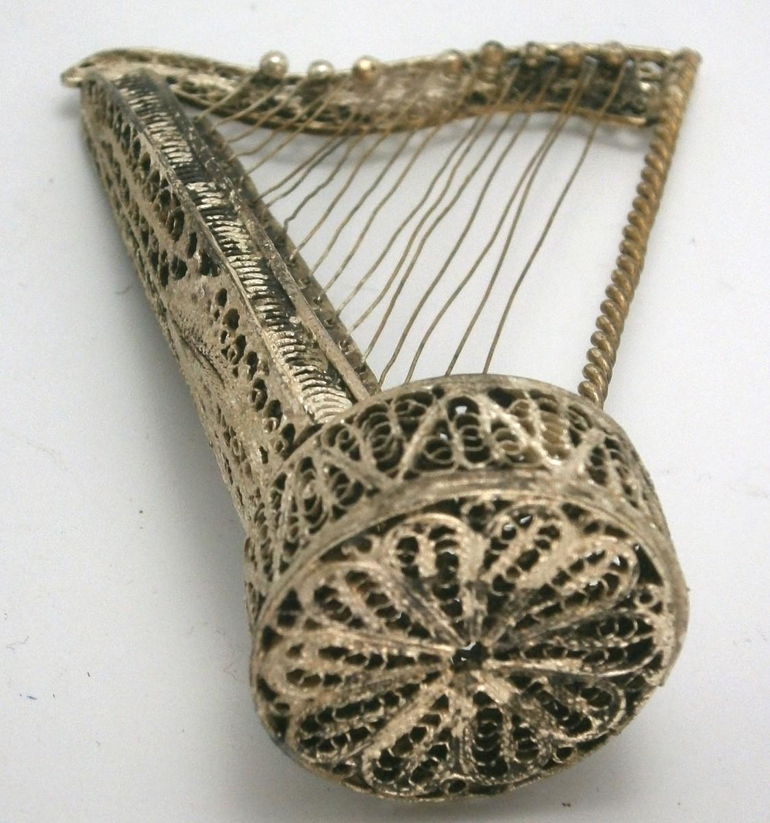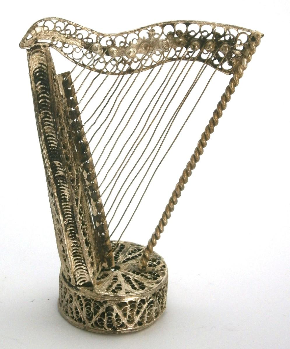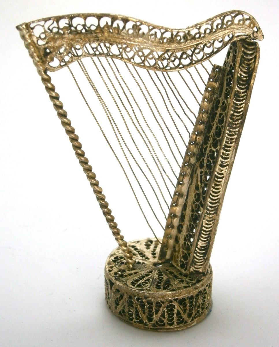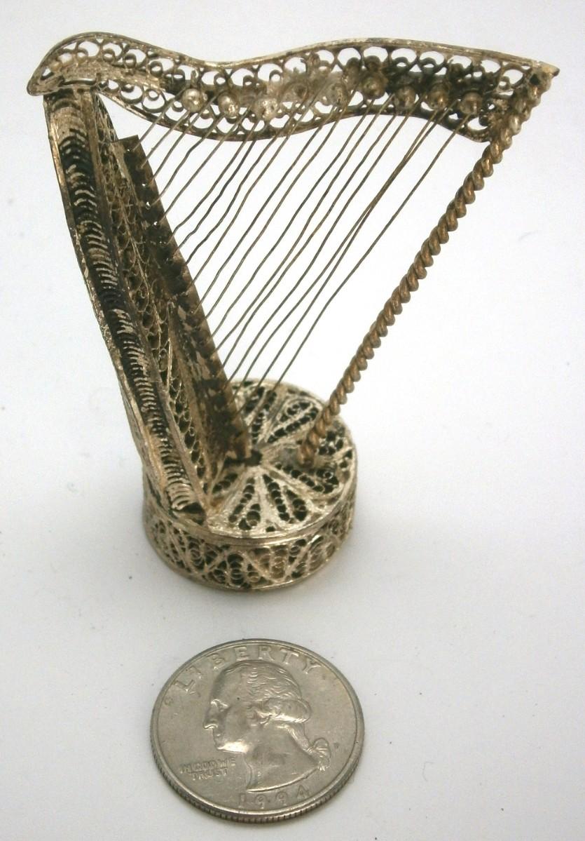Miniature Silverplate Harp from the early 1900's, 2 3/4 in. tall, no markings, could be very low grade silver.