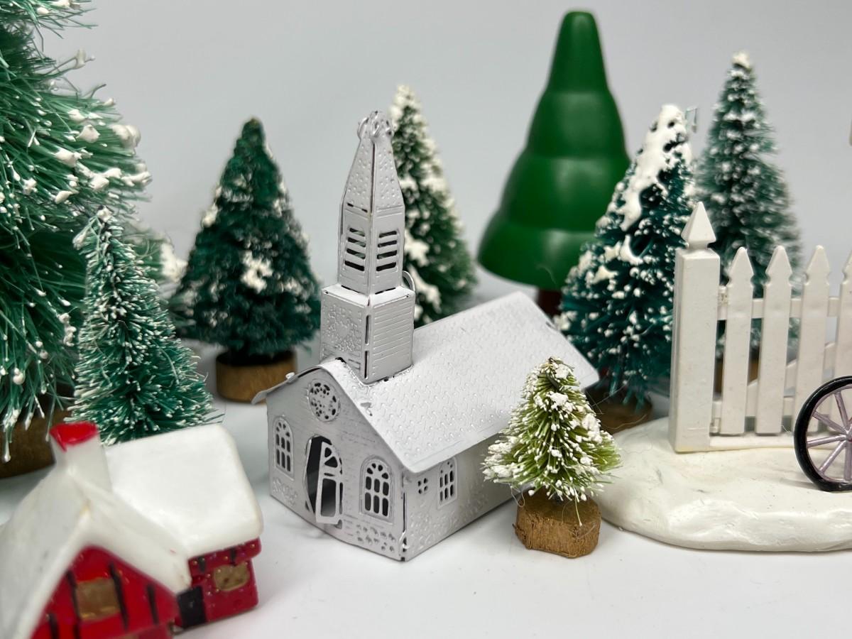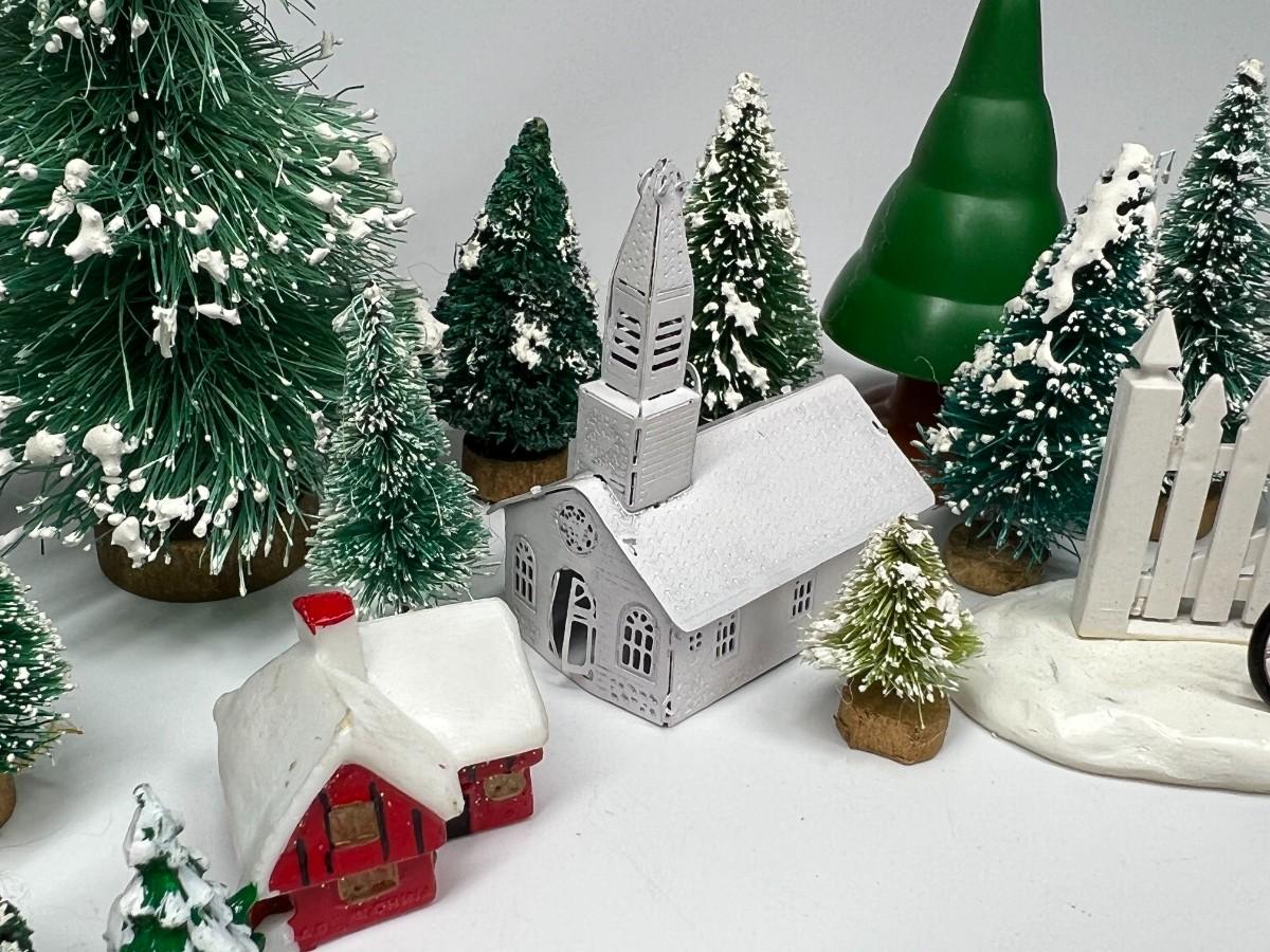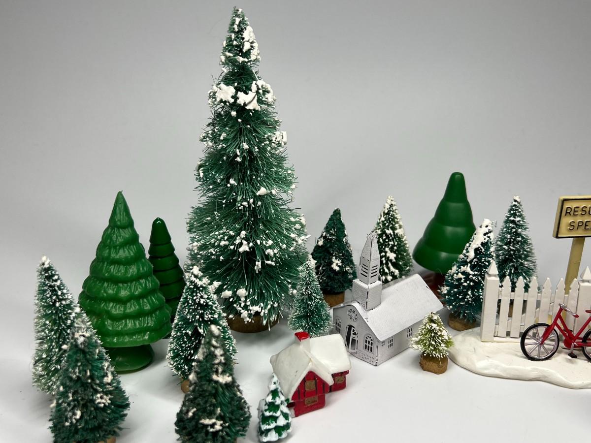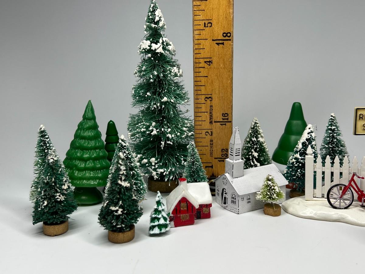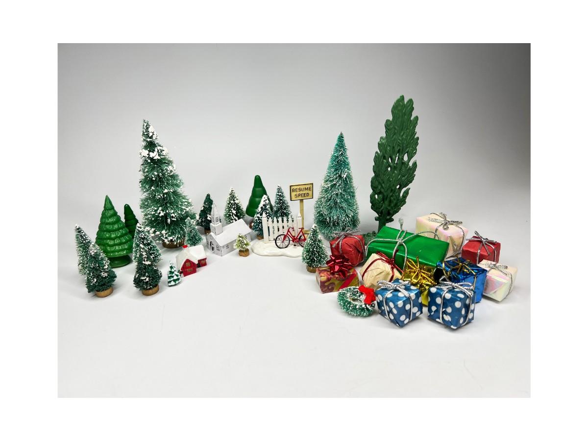 Miniature Snowy Pine Trees Christmas Holiday Buildings & Paper Christmas Presents