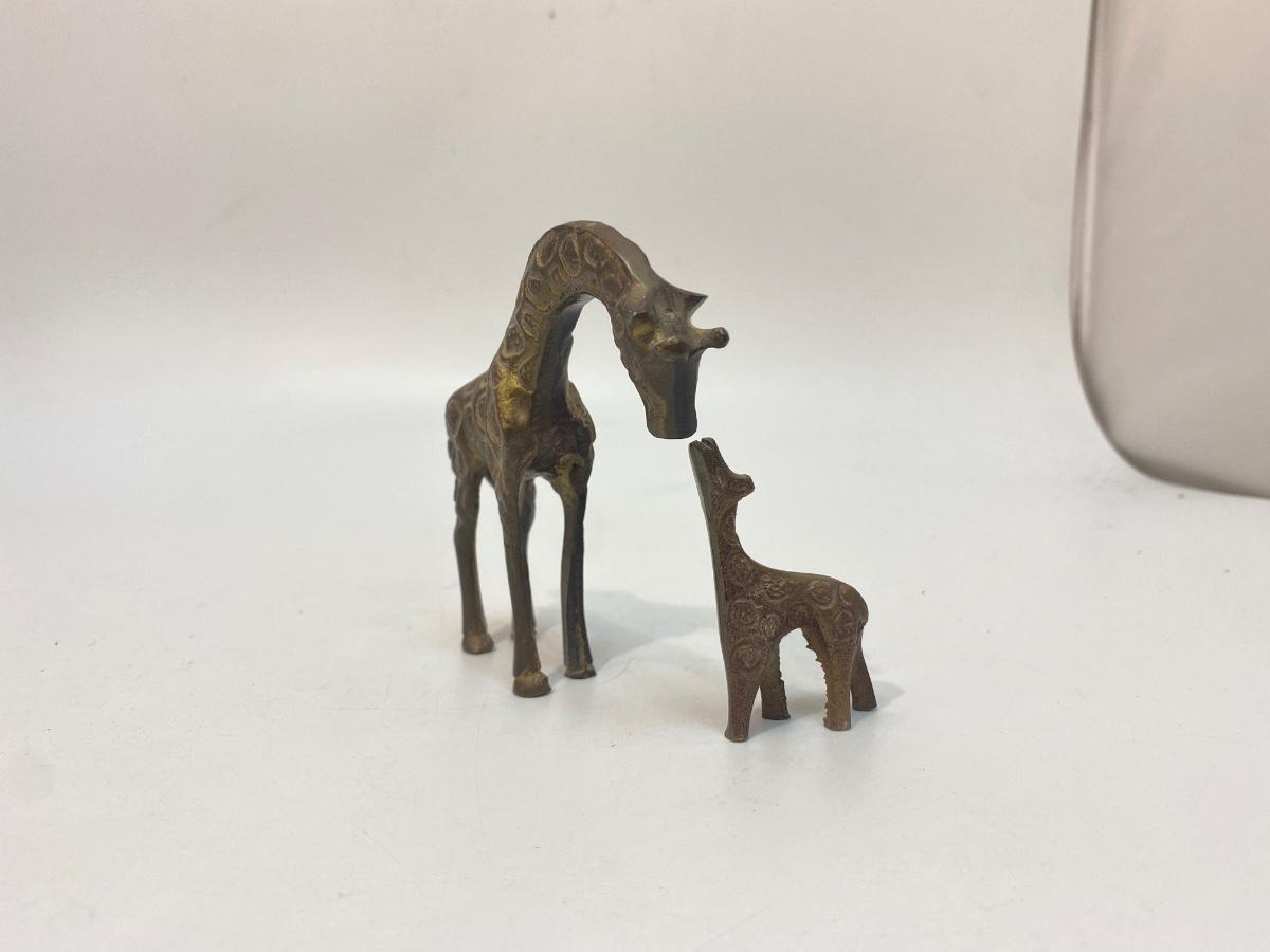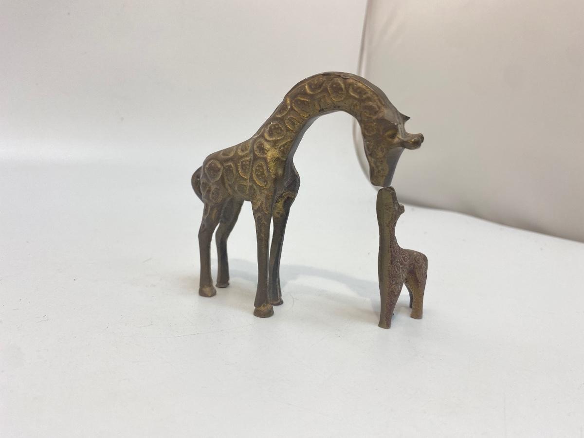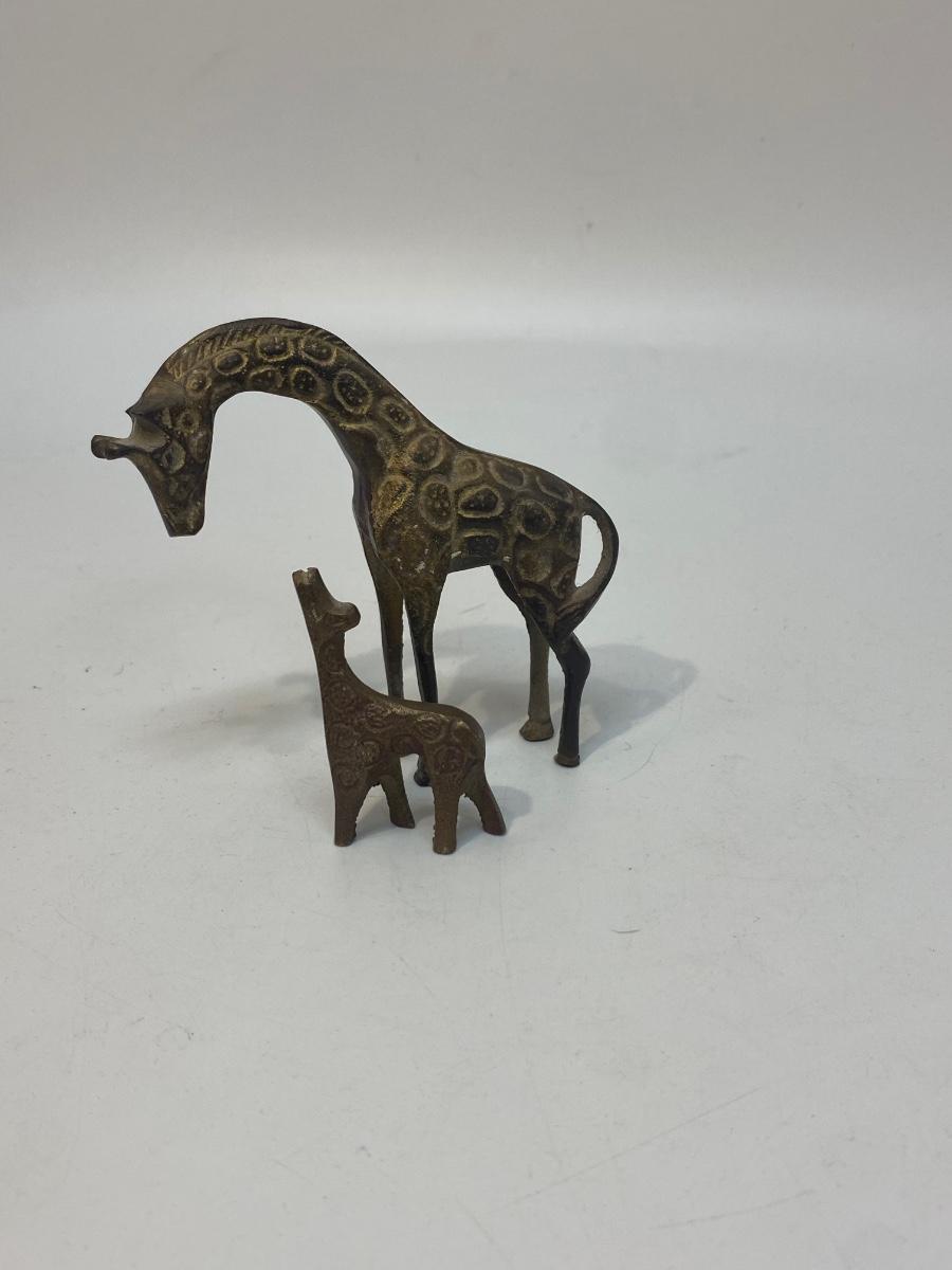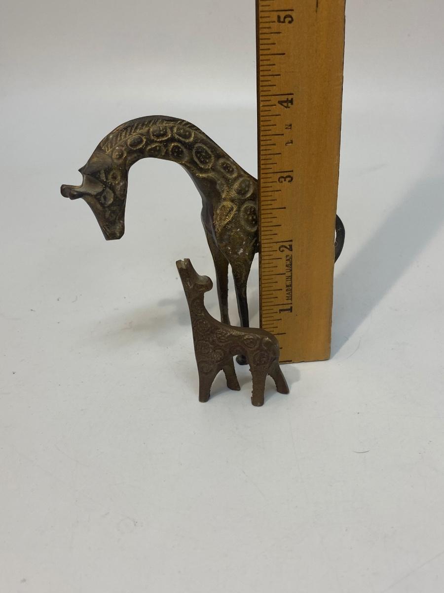Miniature Solid Brass Giraffe Figurines Mother and Baby. Good condition. Under 4" size.