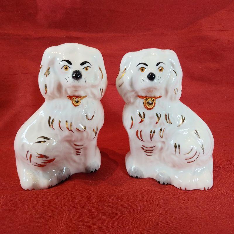 This is wonderful pair of miniature Staffordshire/Minton dogs made in Beswick, England are marked #1378 -7 . They are 3-inches wide X 3 1/2-inches tall. From the Ft. Lauderdale estate. Very sweet. In very good condition. No chips or cracks. They will look marvelous on your mantel.