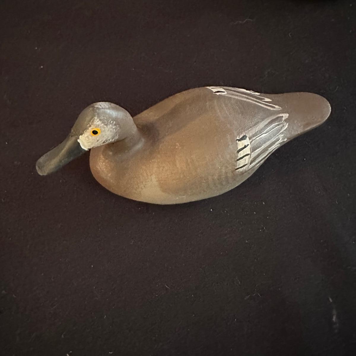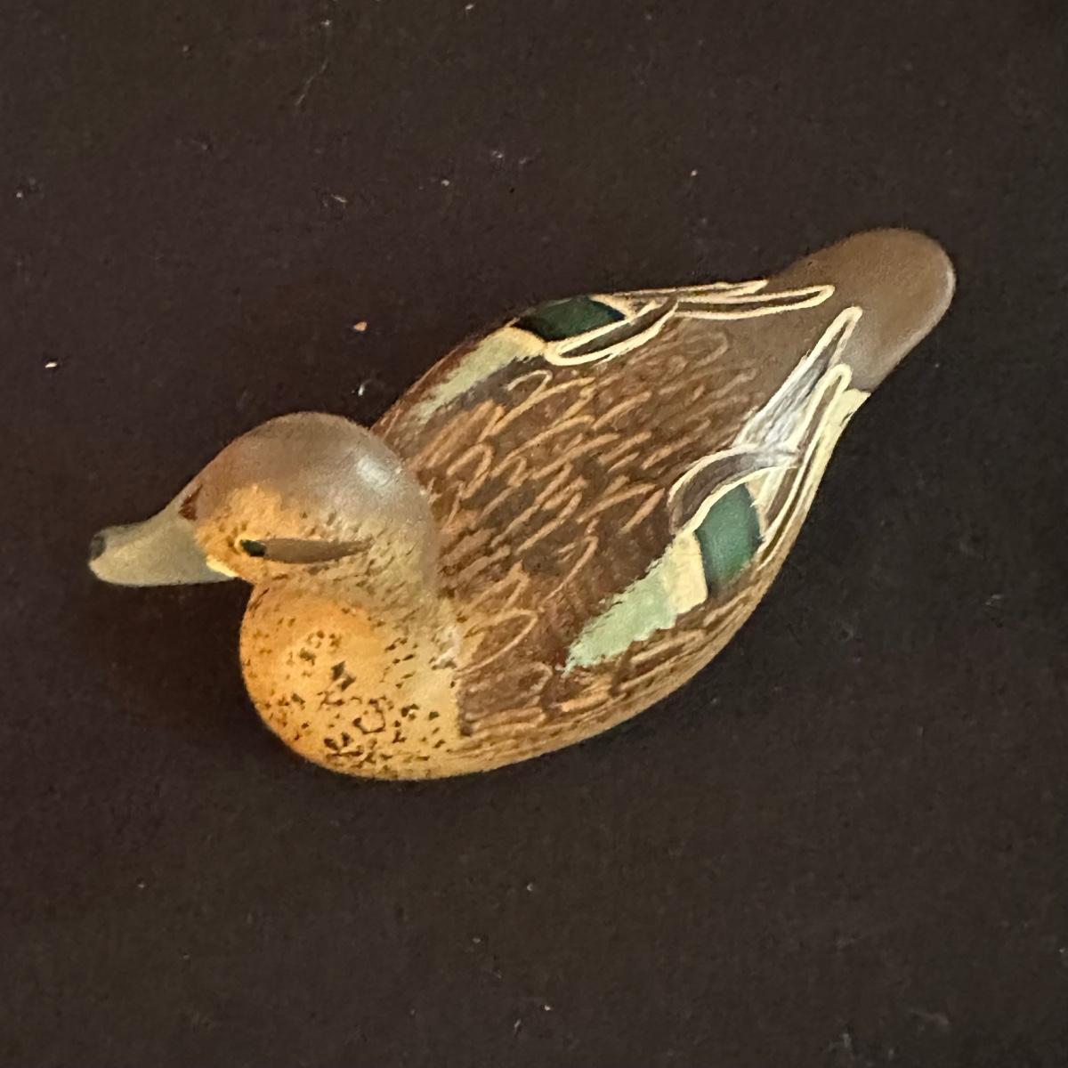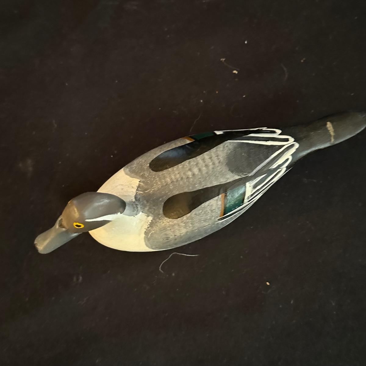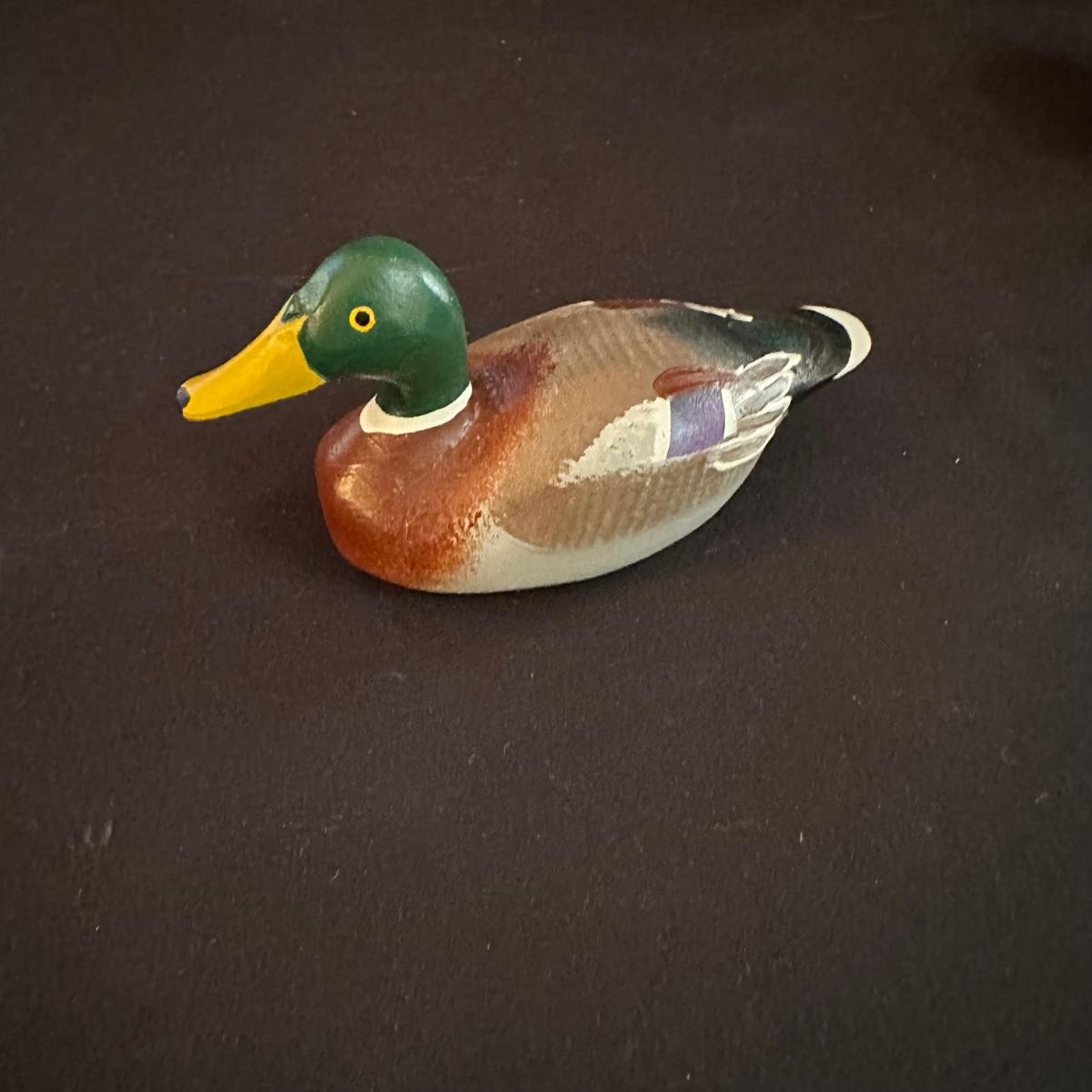 Twenty-four wooden decoys carved and painted by Clarence Bauer. Please see photo for additional history. Almost all are signed. They measure approximately 5” x 2” x 3”H. Shipping available.