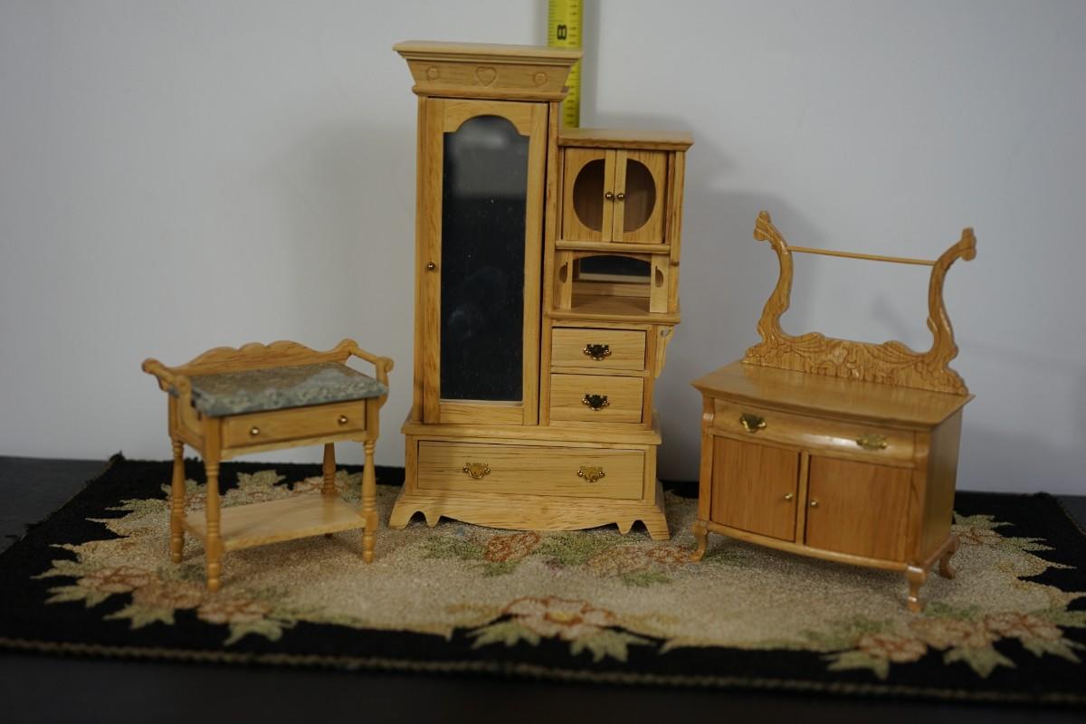 MINIATURE THREE PIECE LIGHT WOOD BEDROOM SET/REPLICA EARLY 1900'S