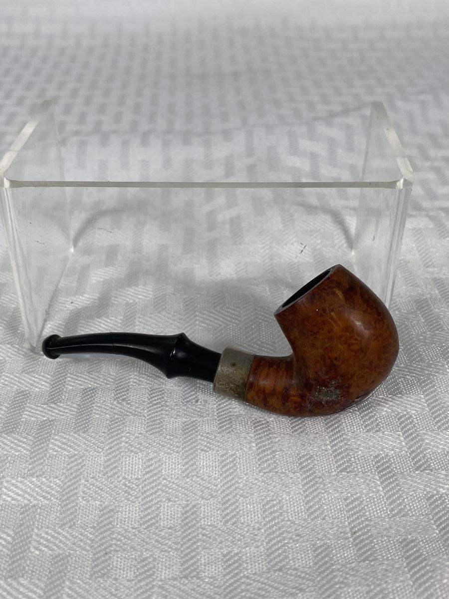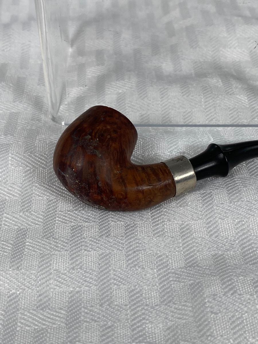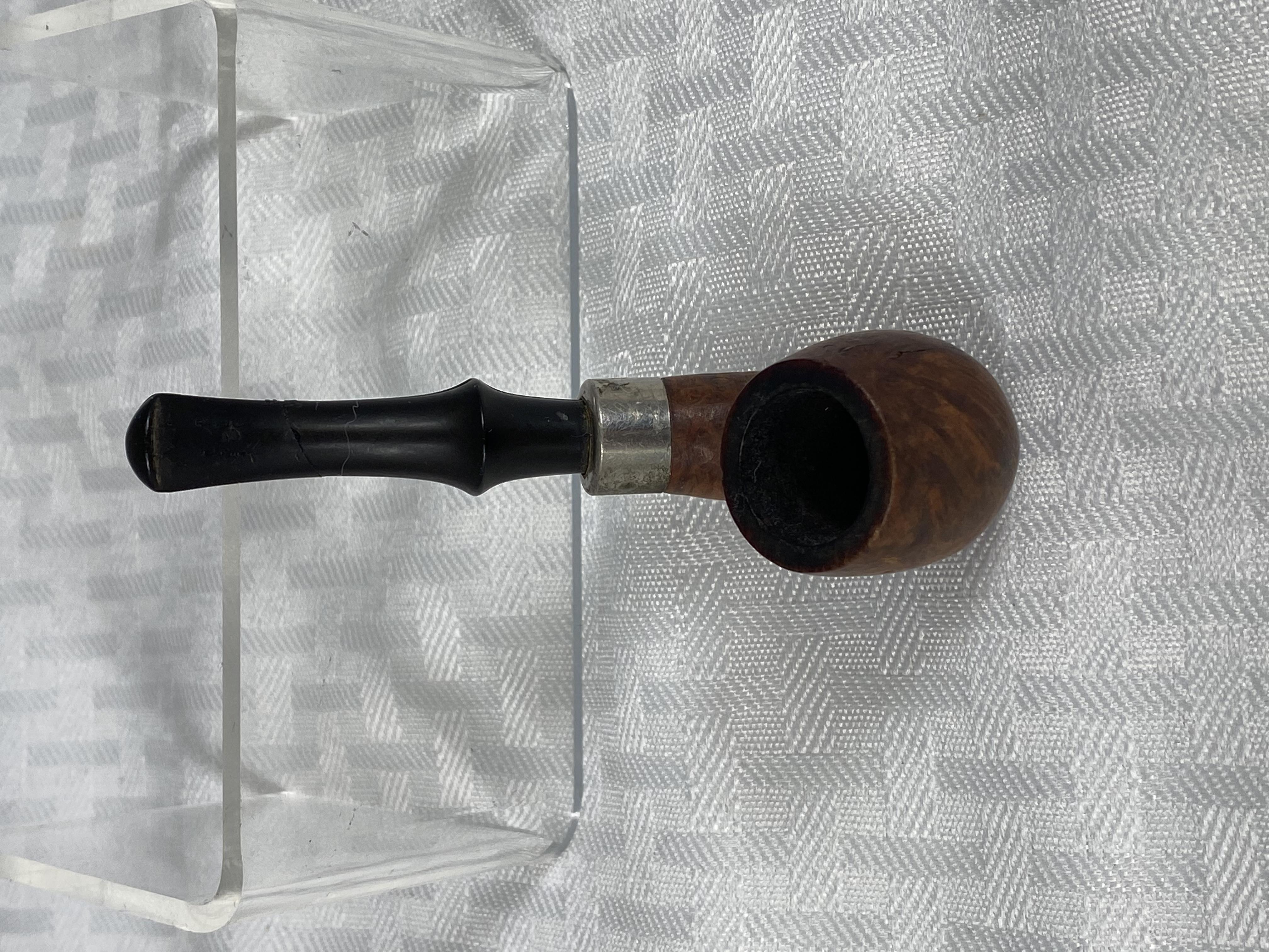 Miniature Tiny Tobacco Pipe. Has tack on the wood bowl, was possibly stuck to something like a display or doll. In otherwise good condition. About 3.5'.
