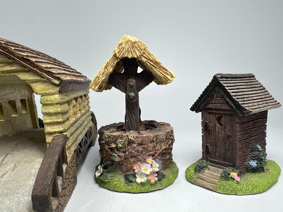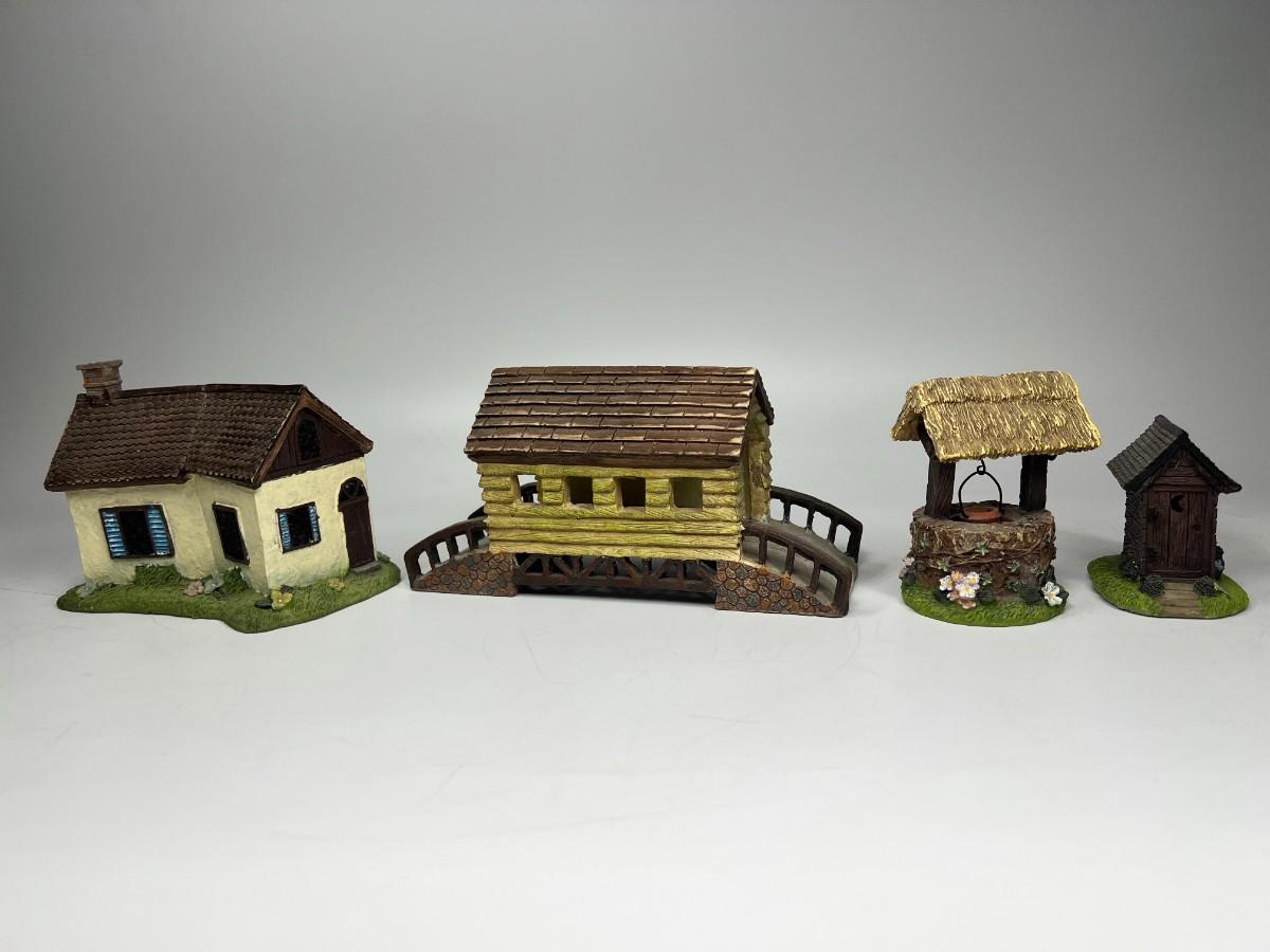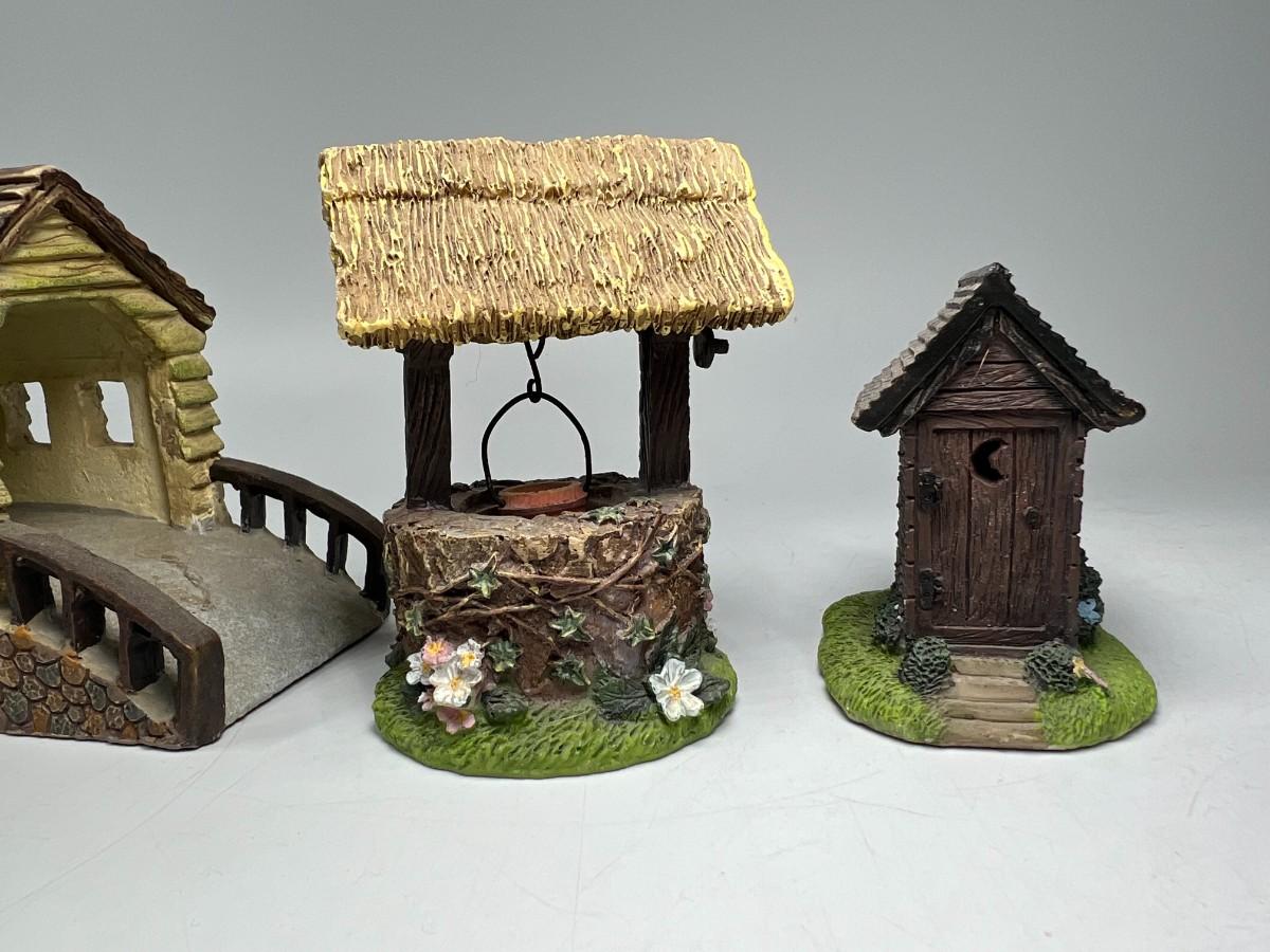 Miniature Village House Cottage Bridge Wishing Well Outhouse Figurines