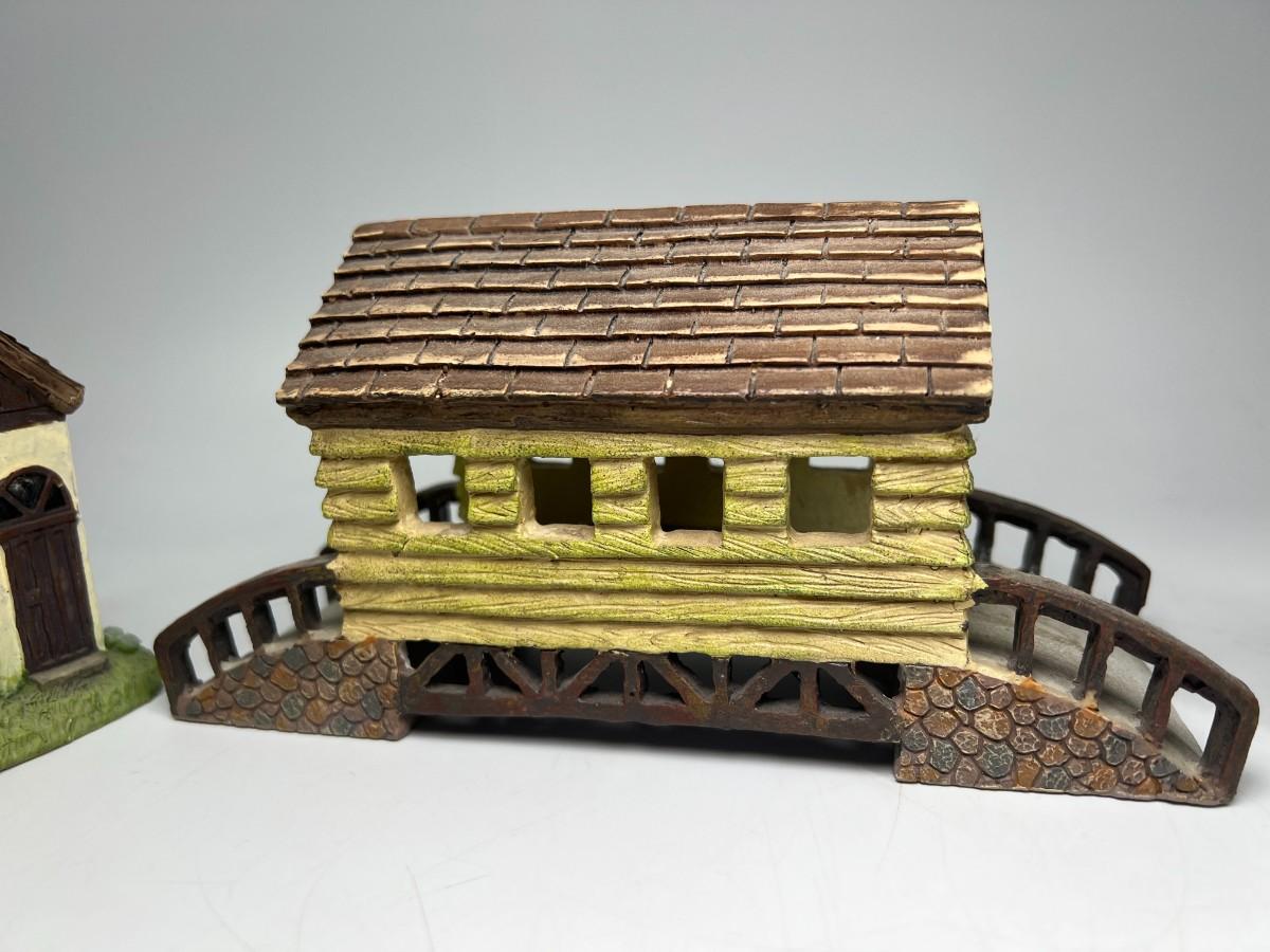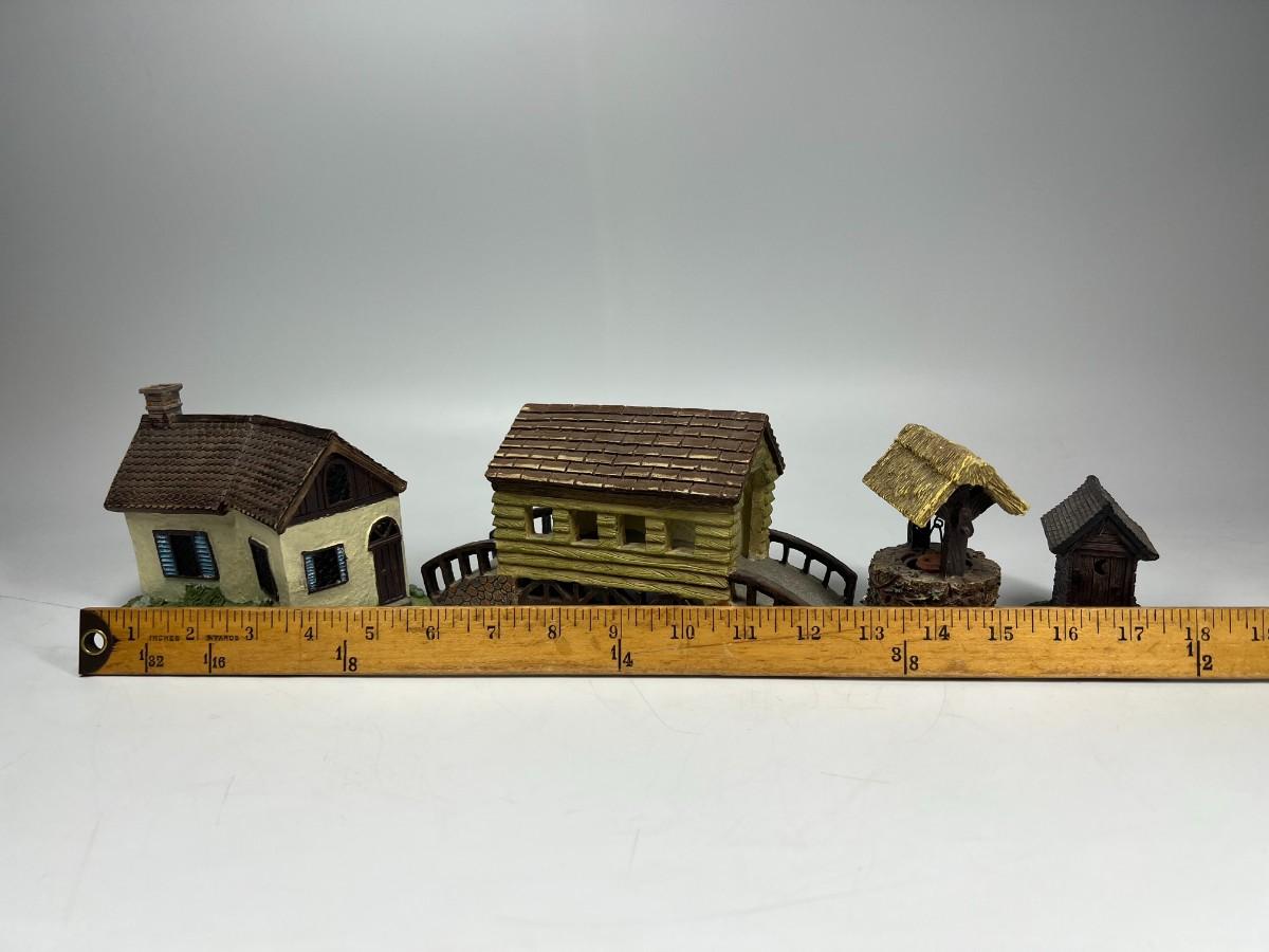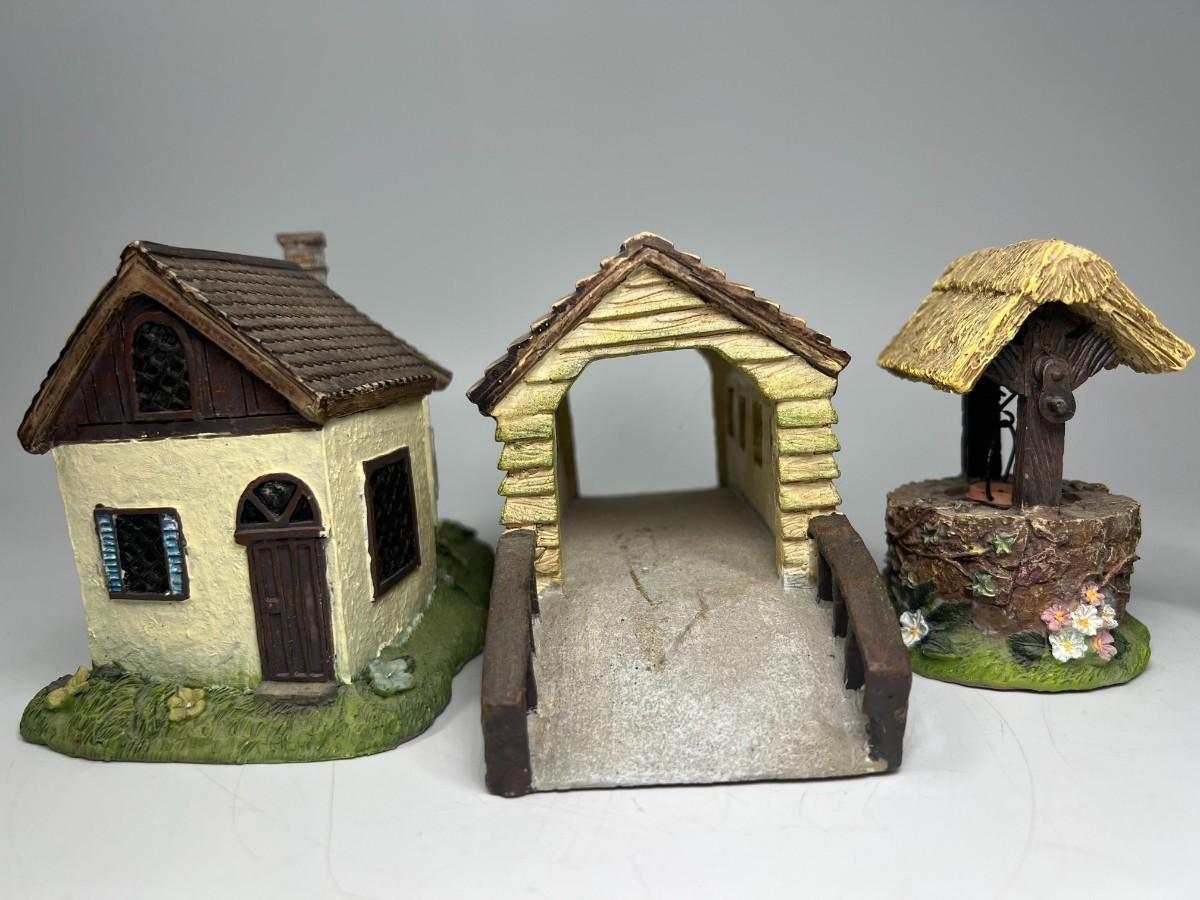 Miniature Village House Cottage Bridge Wishing Well Outhouse Figurines