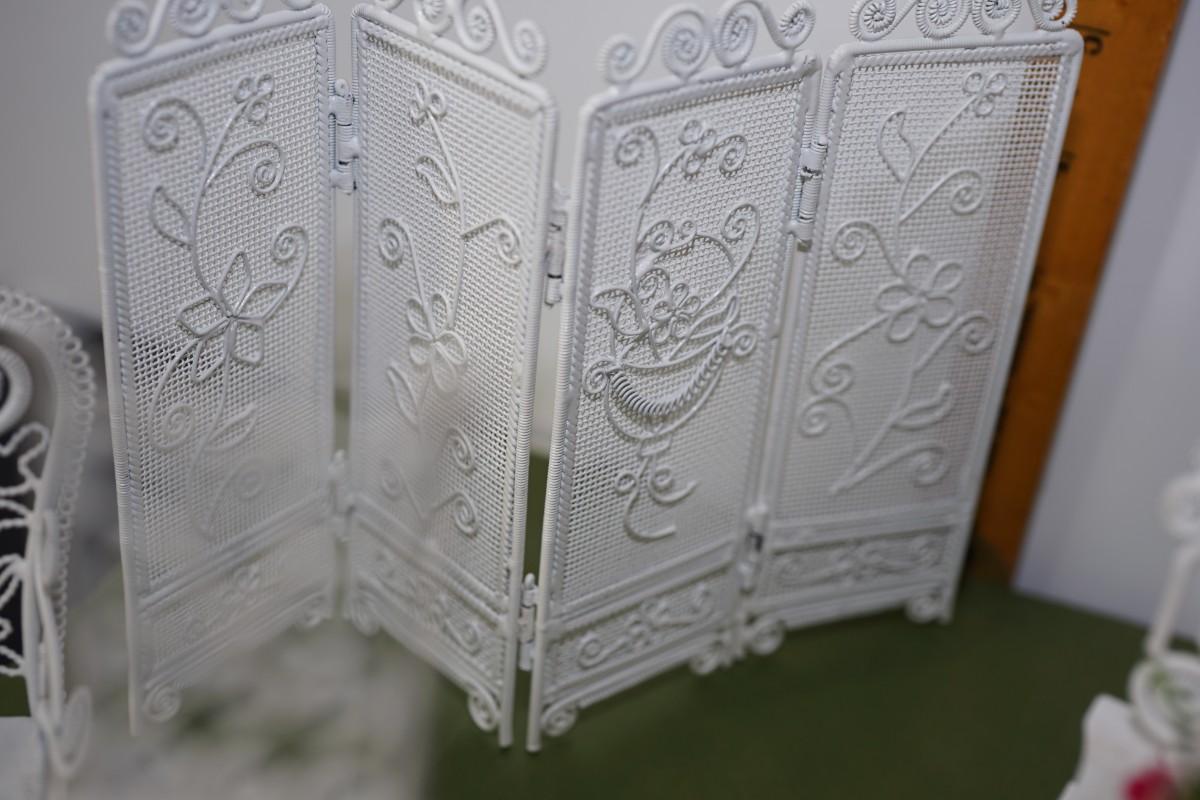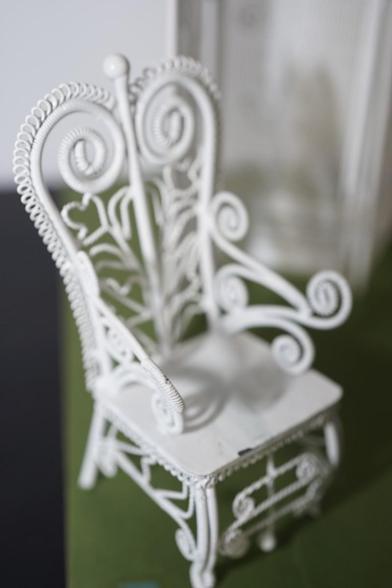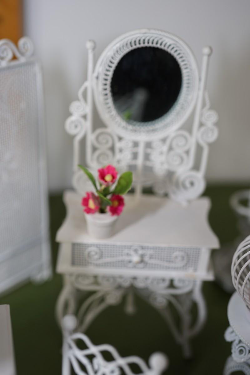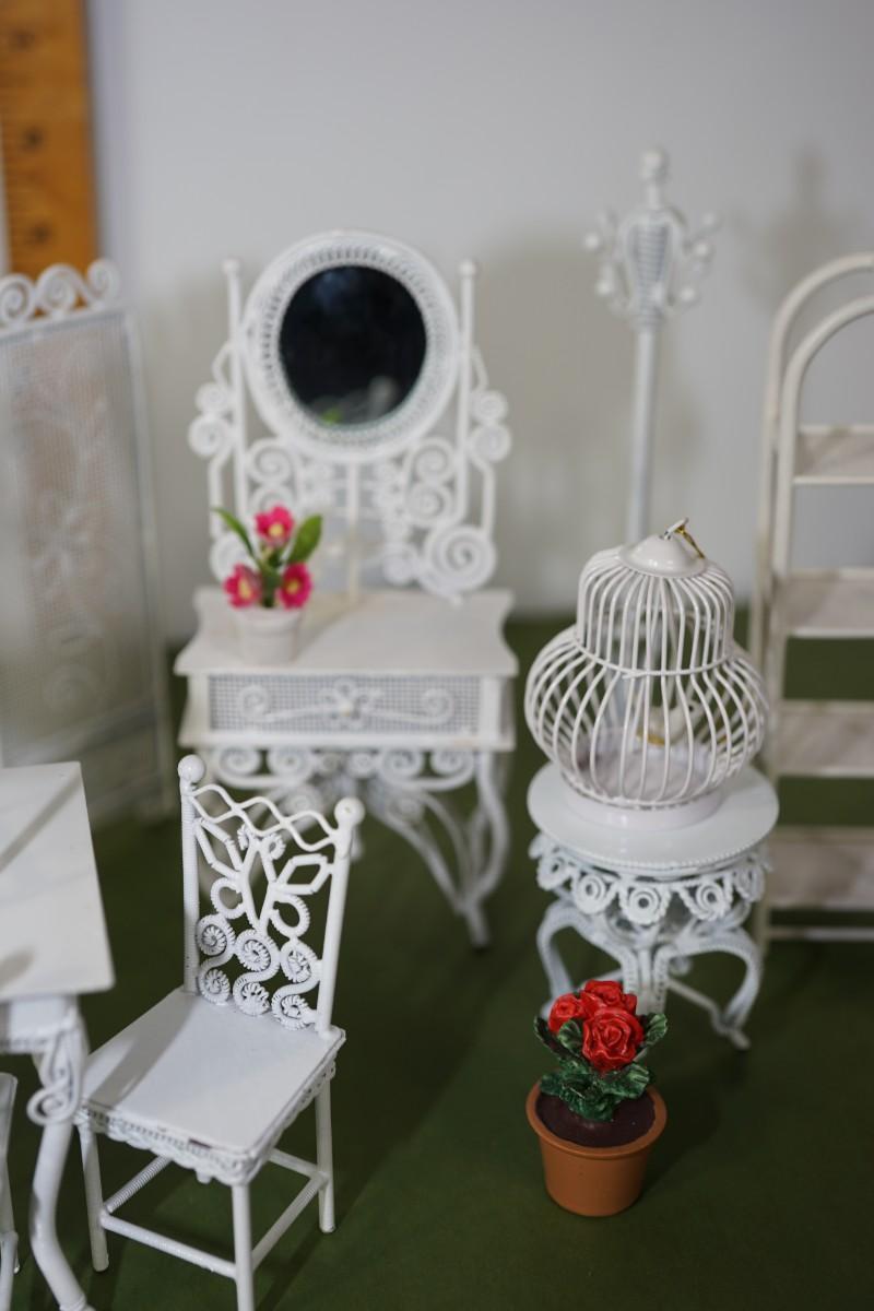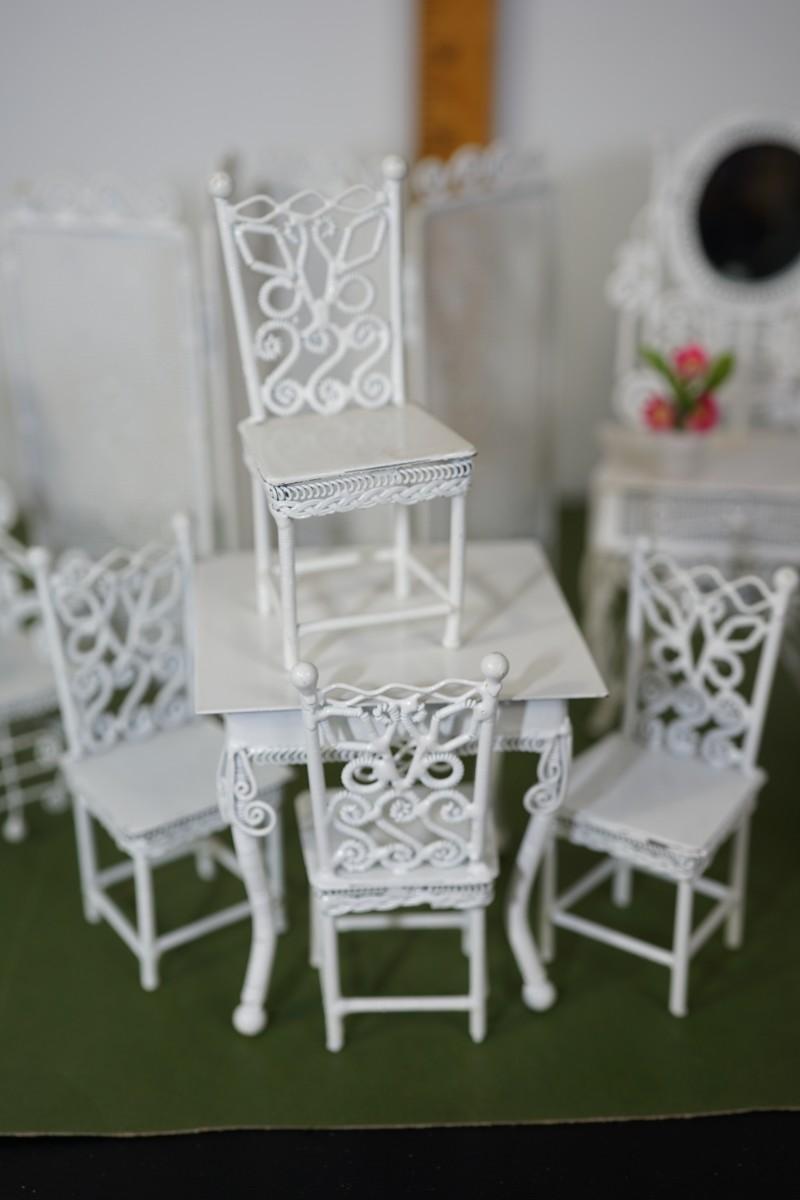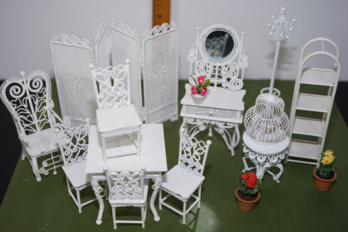 MINIATURE WHITE METAL WICKER FURNITURE FILLIGREE -QUALITY
