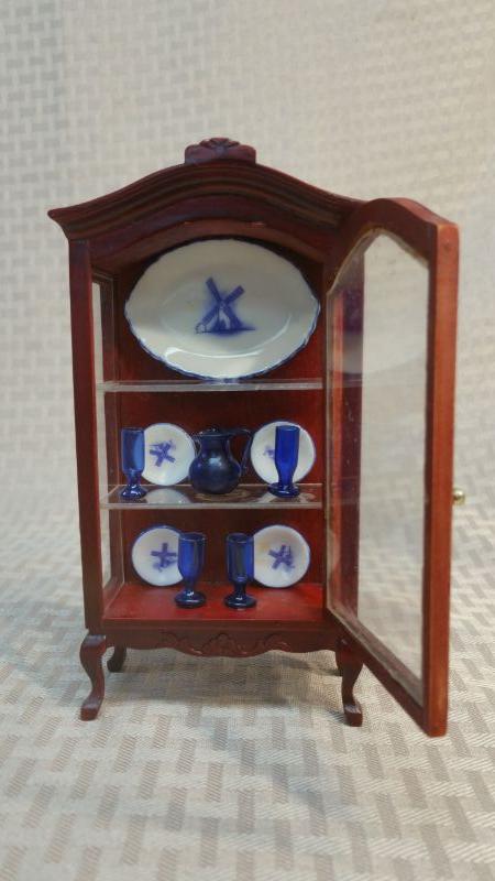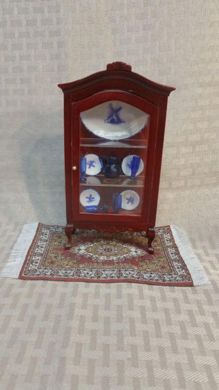 Miniature Wood Dollhouse China Cabinet Armour with rug