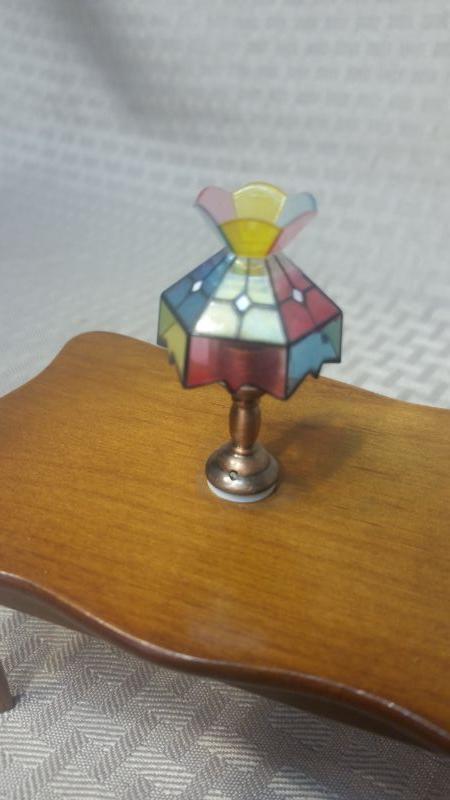 Miniature Wood Dollhouse Dining Table with Chairs Tiffany Lamp