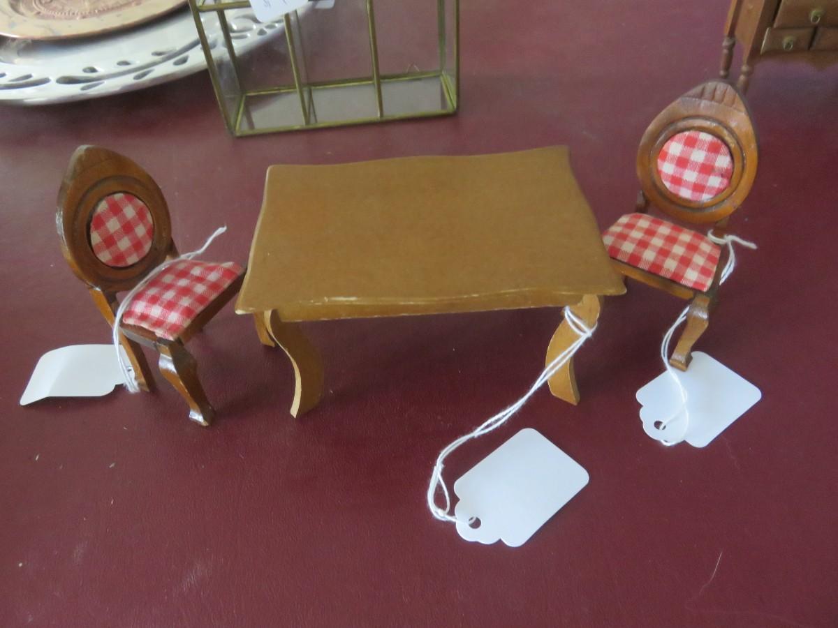 Miniature Wooden Dollhouse Furniture - Table and Chairs