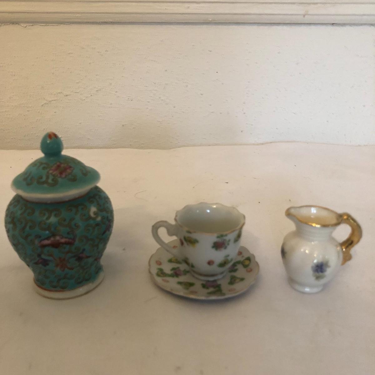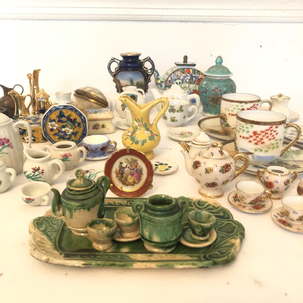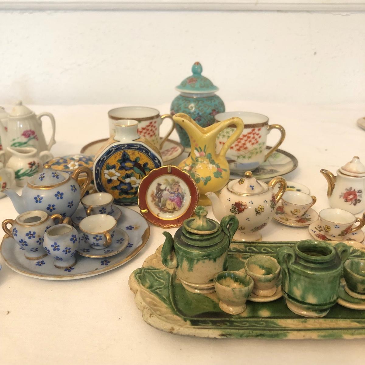 This large collection of miniatures includes fine bone China sets and more. Limoges, Asian items and much more. Look through the images for more information on these miniature collections.