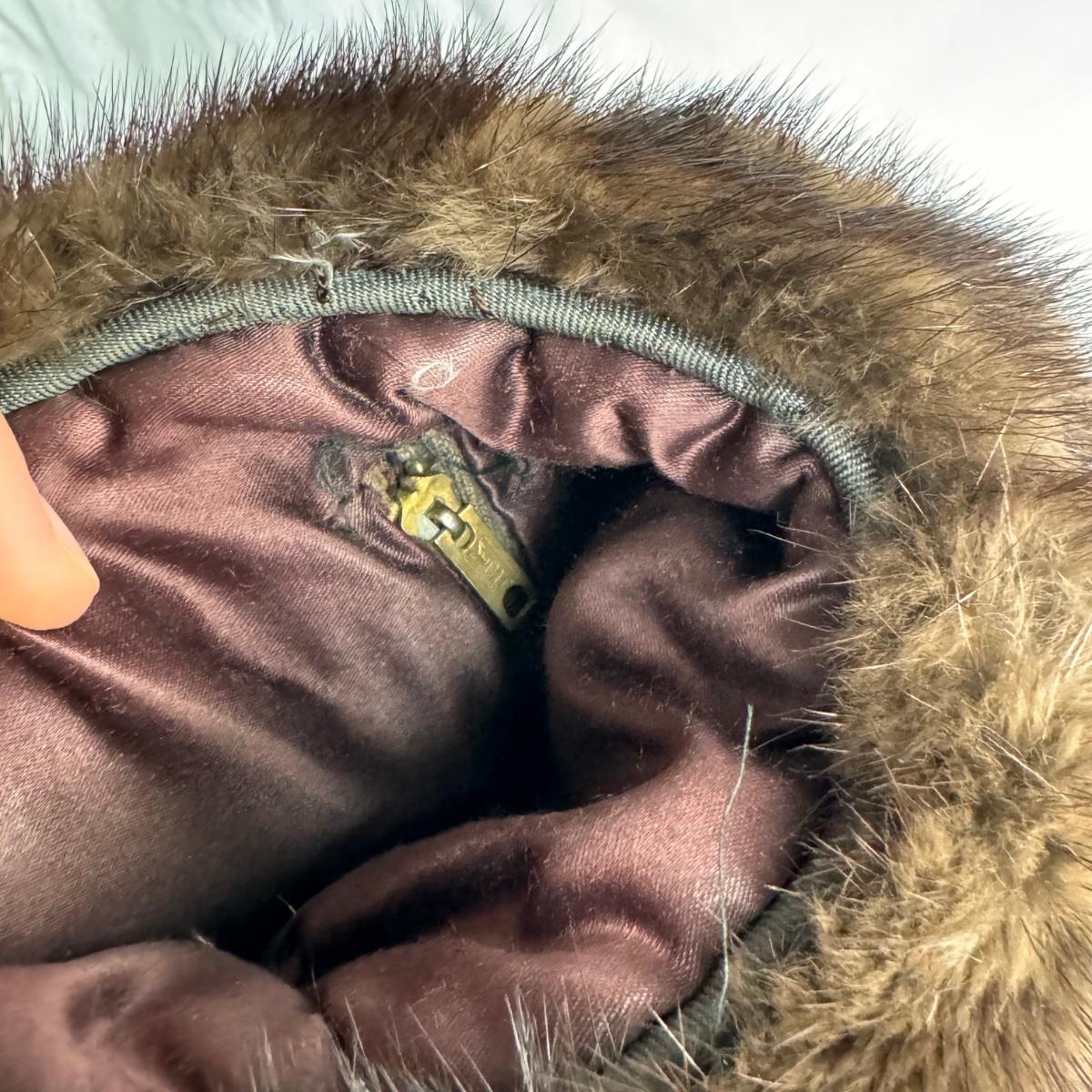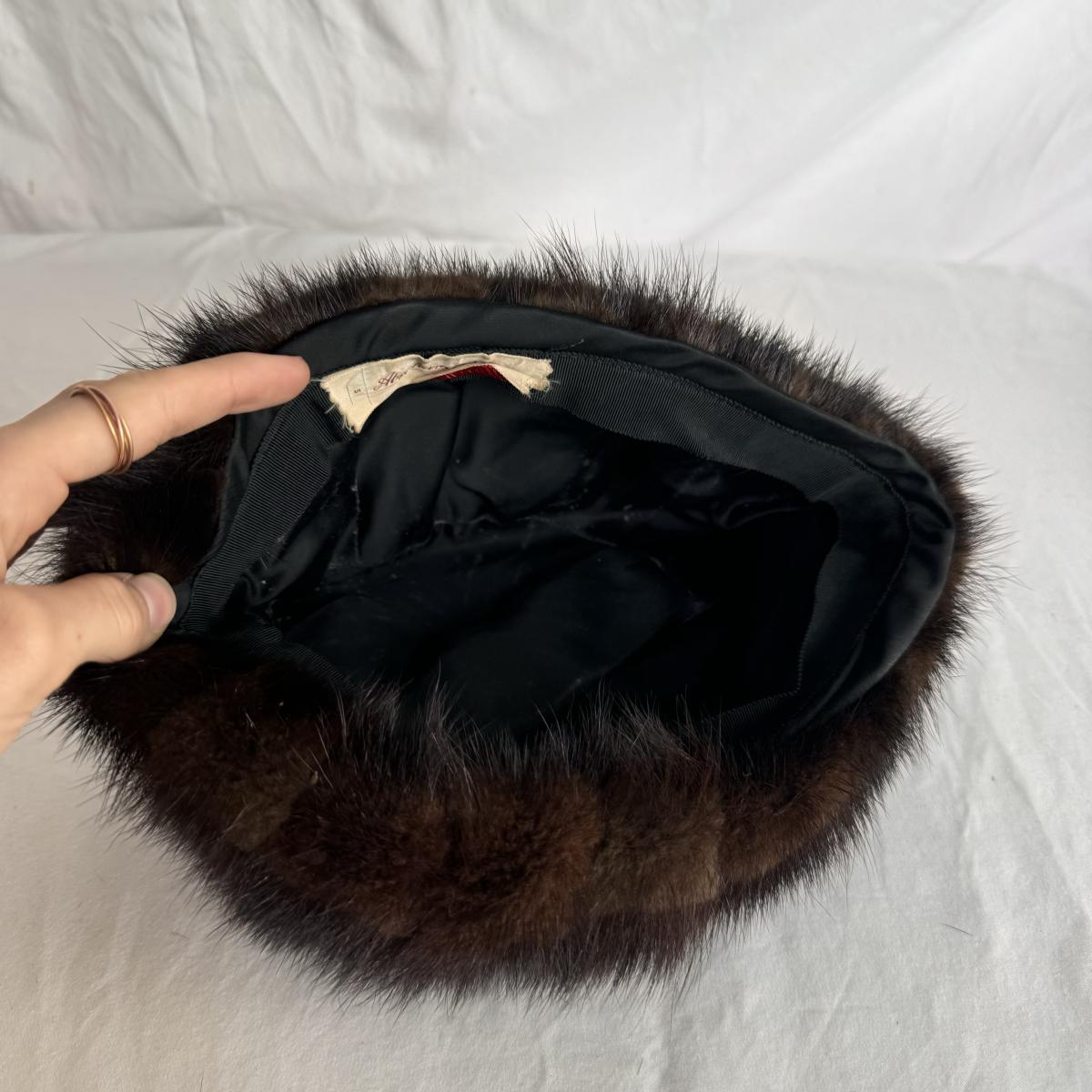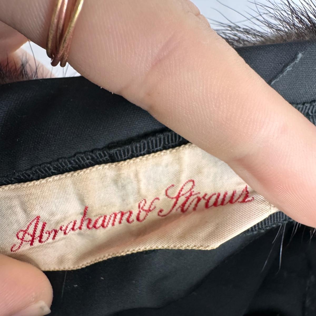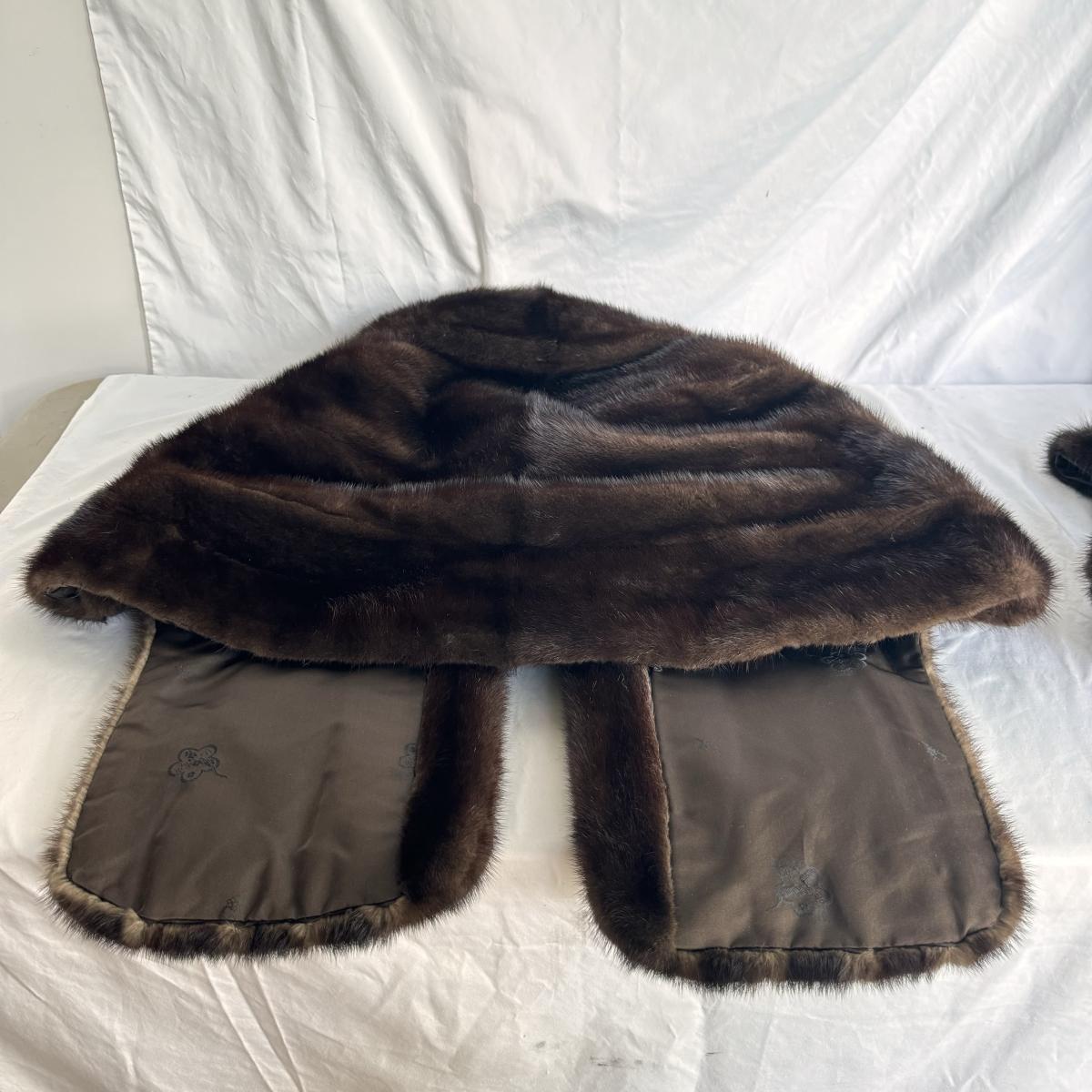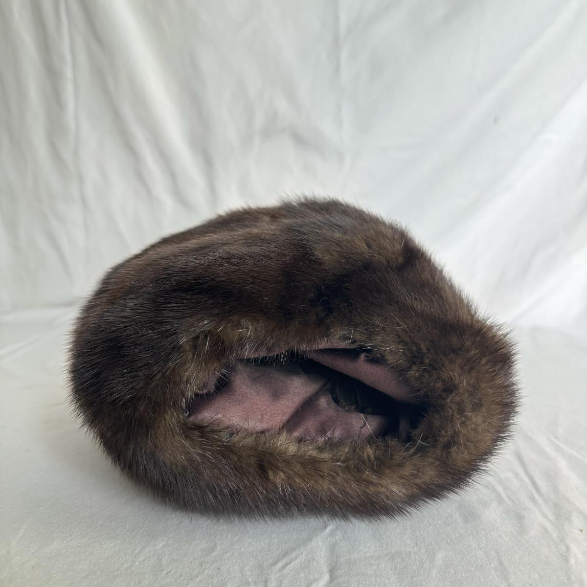 This lot includes one stole, one muff, and one hat. All items appear to be mink. The muff has a zipper on the inside that works. The stoke does not have a size label but it appears to be 25” x 27”H. The hat is labeled Abraham & Straus.