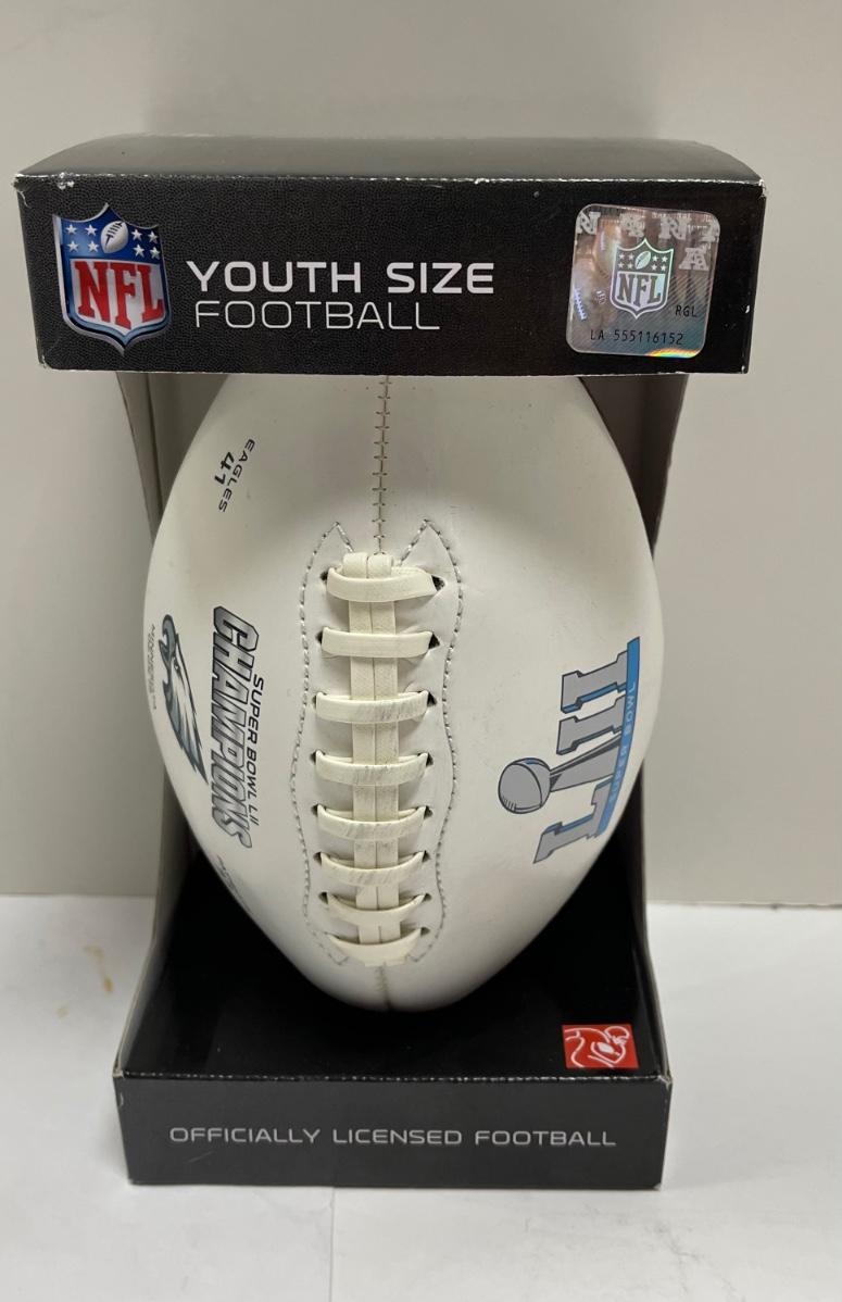 This collectible football is a youth-size New England Patriots Super Bowl 52 Champions football. The ball has white panels intended to be used for autographs. New condition and still in factory package -see pictures for condition.