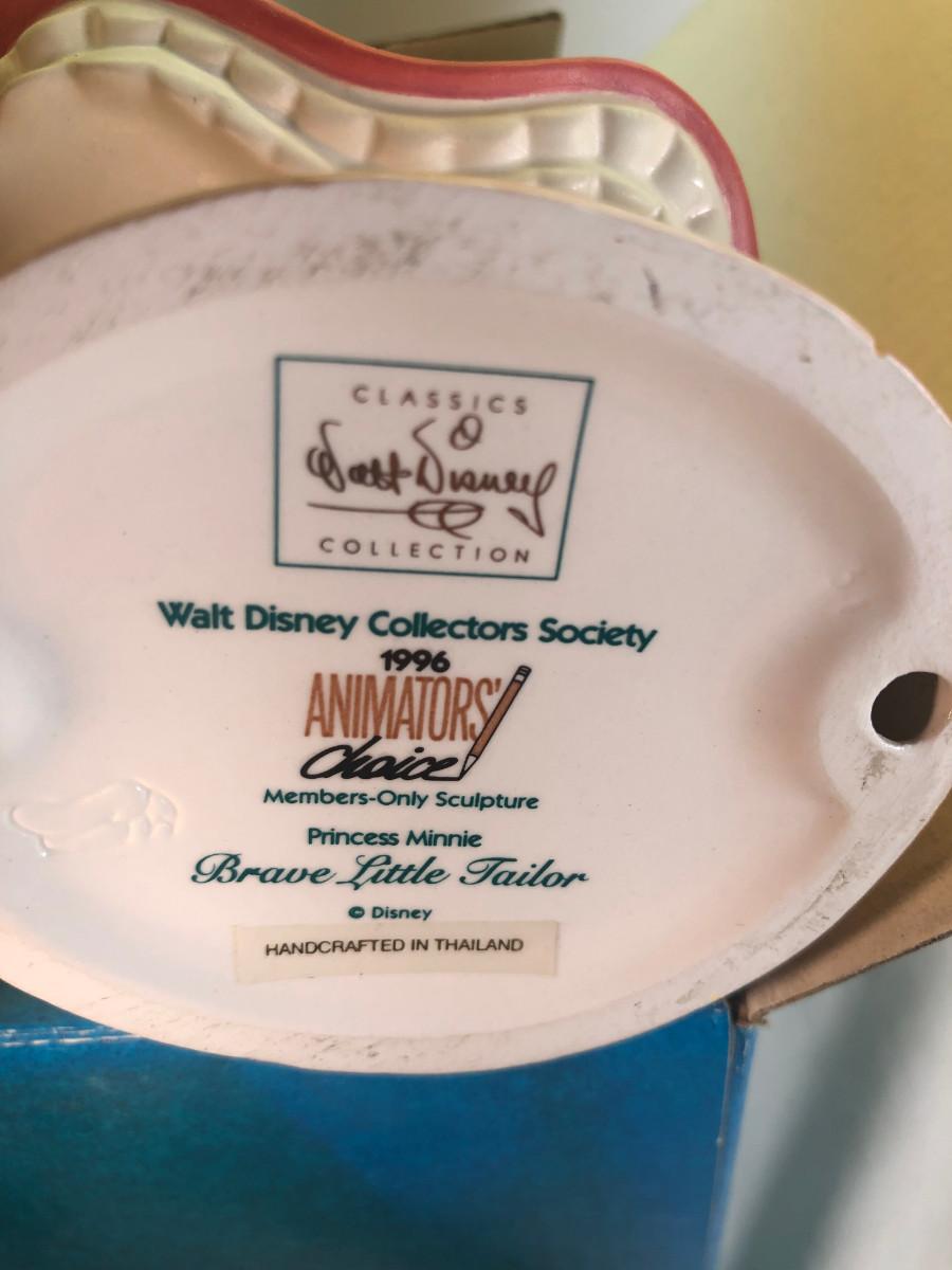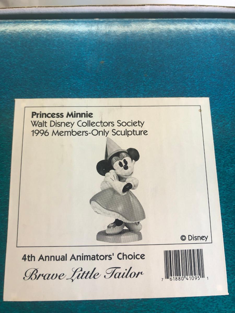 WDCC 1996 Animators Choice Members Only Sculpture Minnie Mouse as Princess Minnie from the Brave Little Tailor Approx. 7" tall. Walt Disney Classics Collection Princess Minnie Figurine Retired. 1996 Members only piece. Marked with Donald's Hat. NO Certificate of Authenticity included, original Box