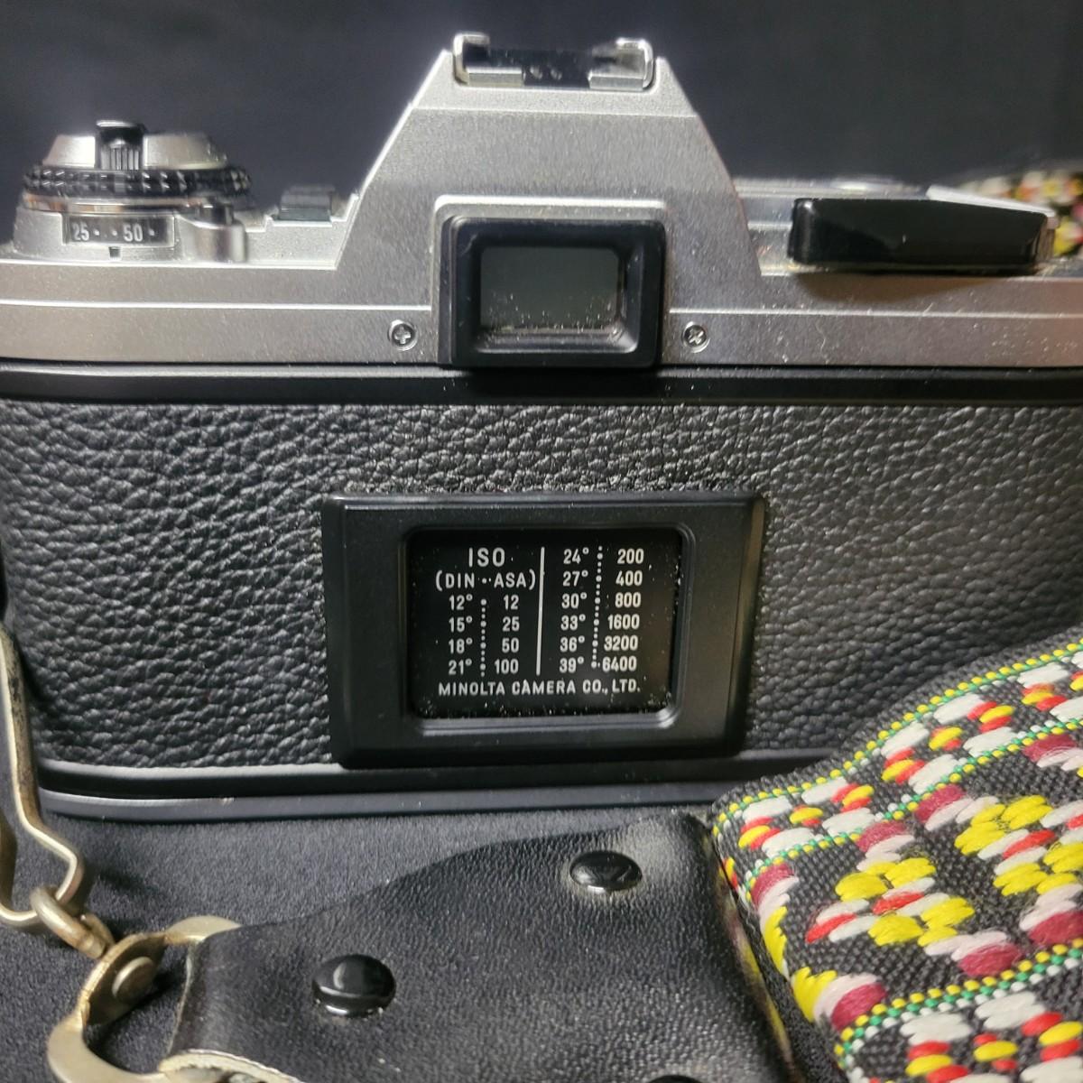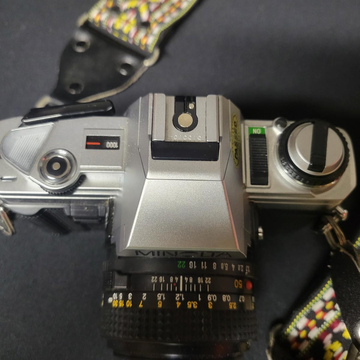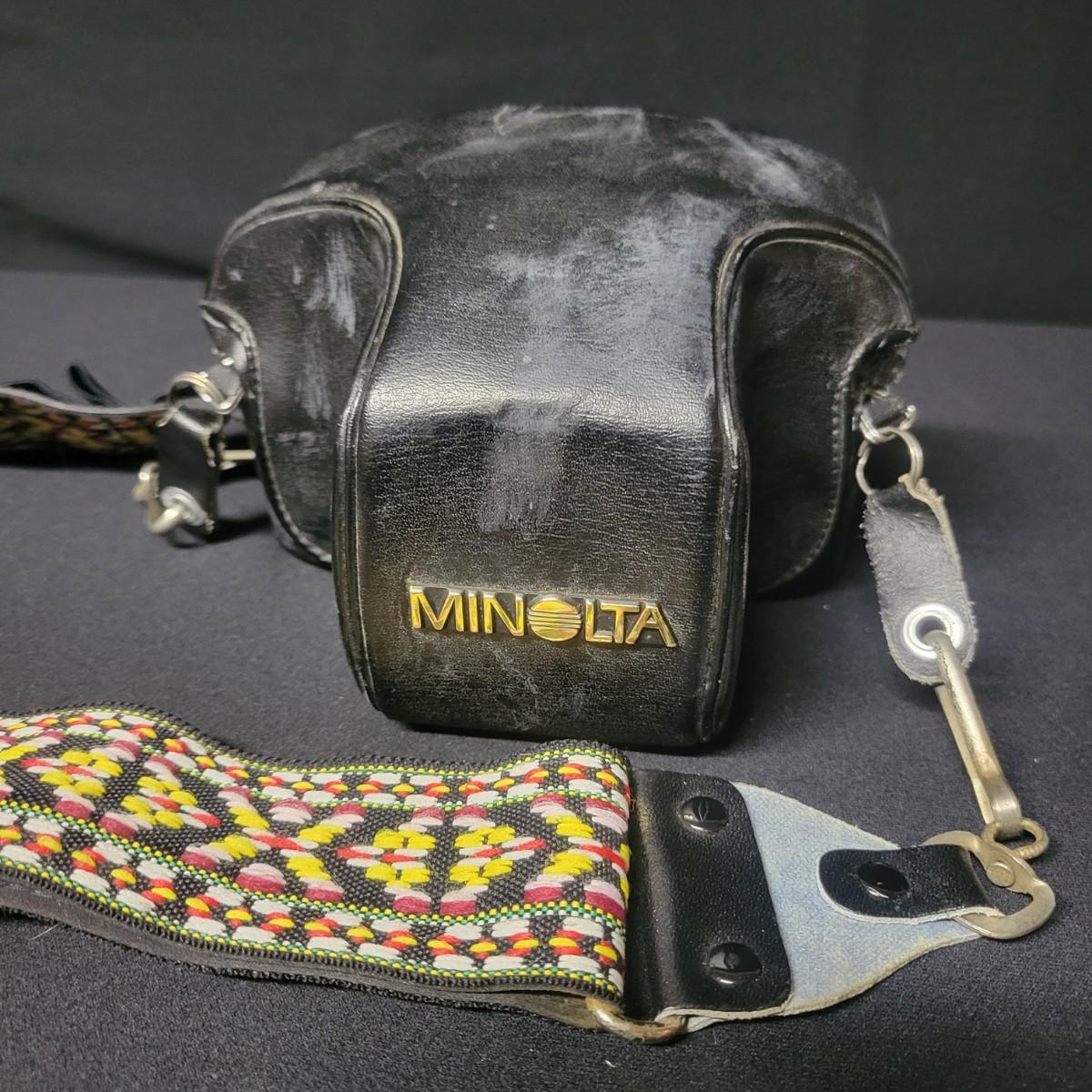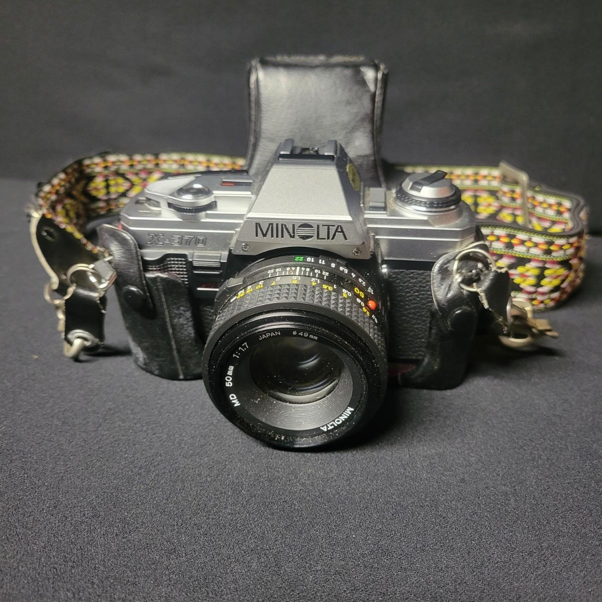 A Minolta X-370 camera with Minolta 50mm lens, leather case and shoulder strap. Camera appears to be in good condition, but could not be tested. Shipping available