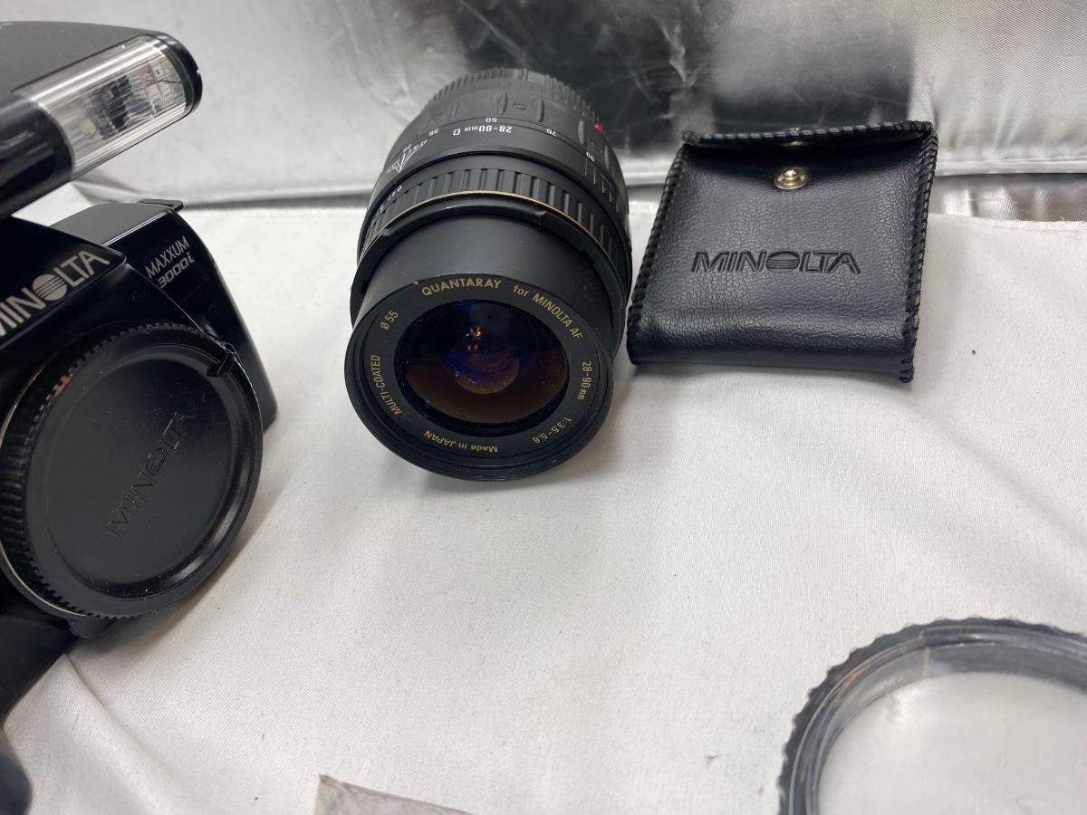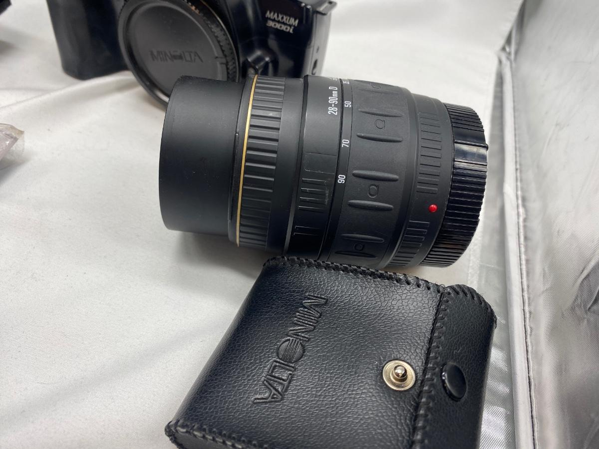 MINOLTA 35mm CAMERA WITH LENS ALSO SPARE BATTERIES FOR. IKON CAMERAS