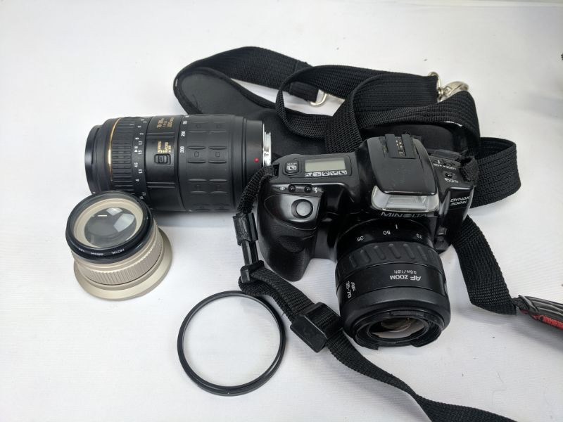 Minolta Camera, Quantaray 58mm Lense, Hoya 49mm Lense, Bag & Extra Strap