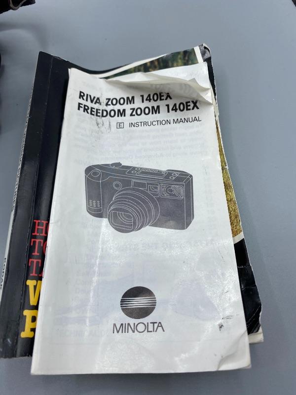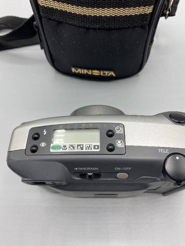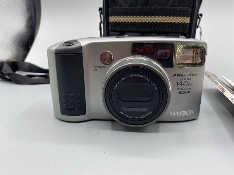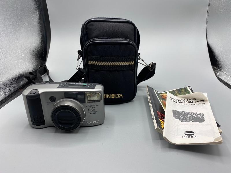 Minolta Freedom Zoom 140 Ex panorama 35mm camera. Comes with manual, picture taking how-to booklet, and a carry case. Looks to be in good condition, well kept. Working condition unknown.