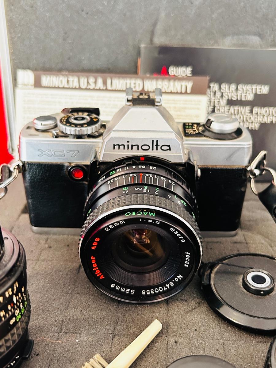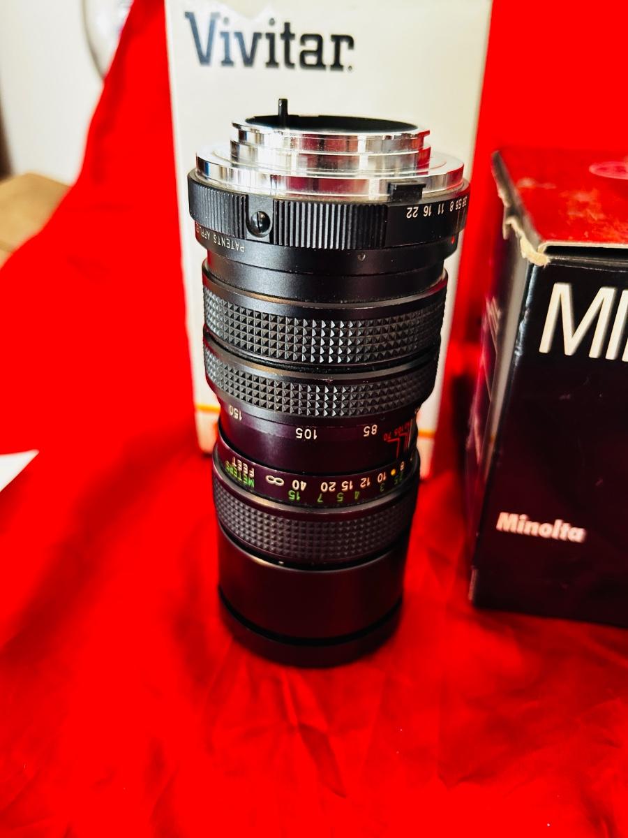 The Minolta XG-7 is a popular, lightweight 35mm film SLR camera from 1977, known for its easy-to-use aperture-priority auto exposure, electronic shutter (1s-1/1000s), and unique touch-sensitive shutter button that activates the meter, making it great for beginners or enthusiasts wanting a compact film body, though it requires batteries for all functions and features a less bright viewfinder and basic CdS meter and th VIVITAR 70-150