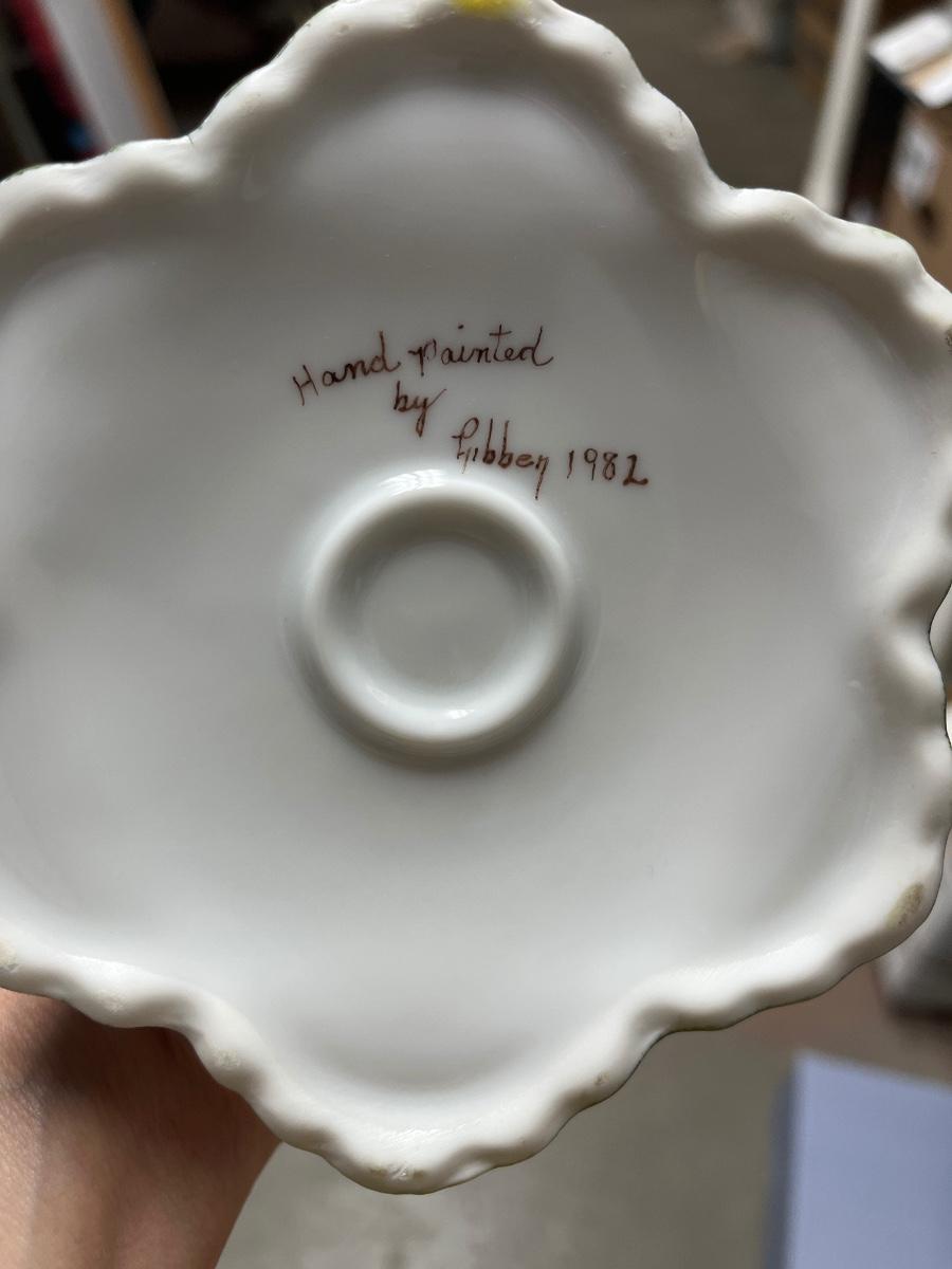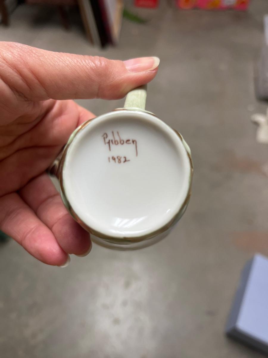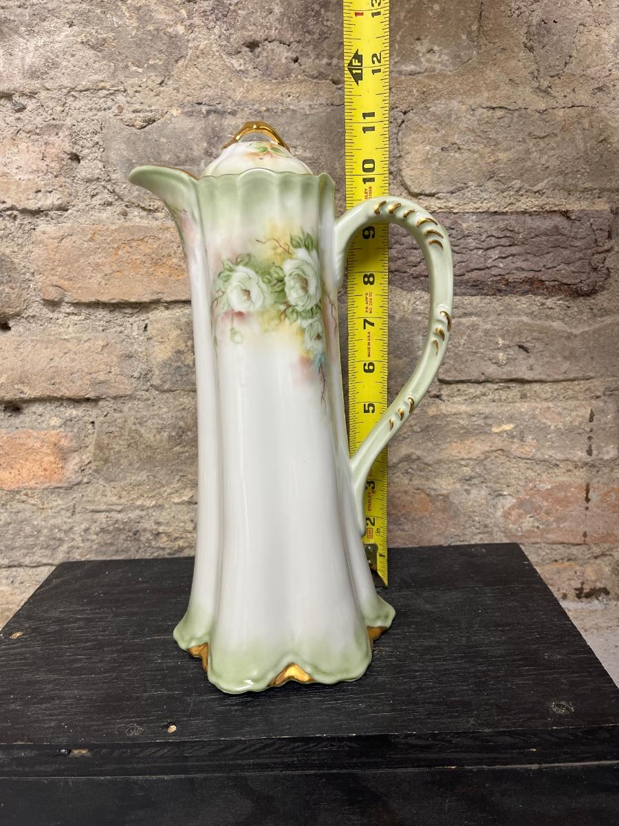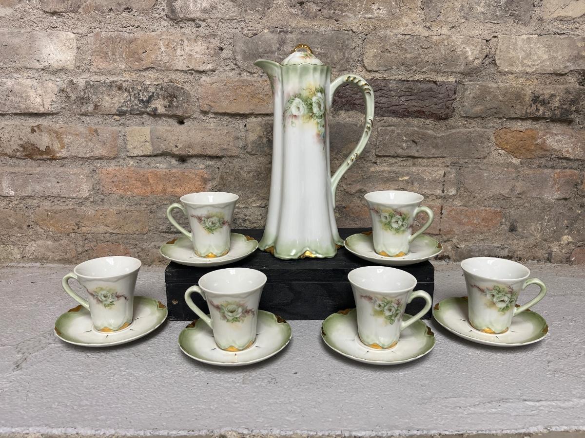 Stunning hand painted chocolate set with six pristine cups and saucers.