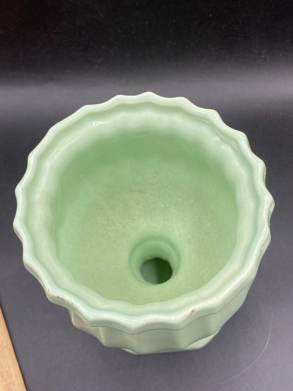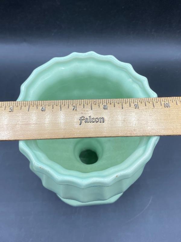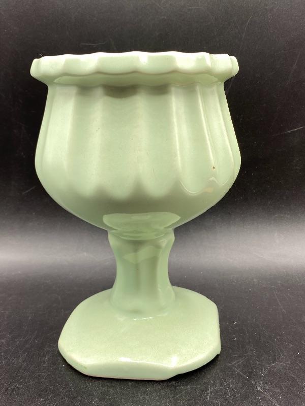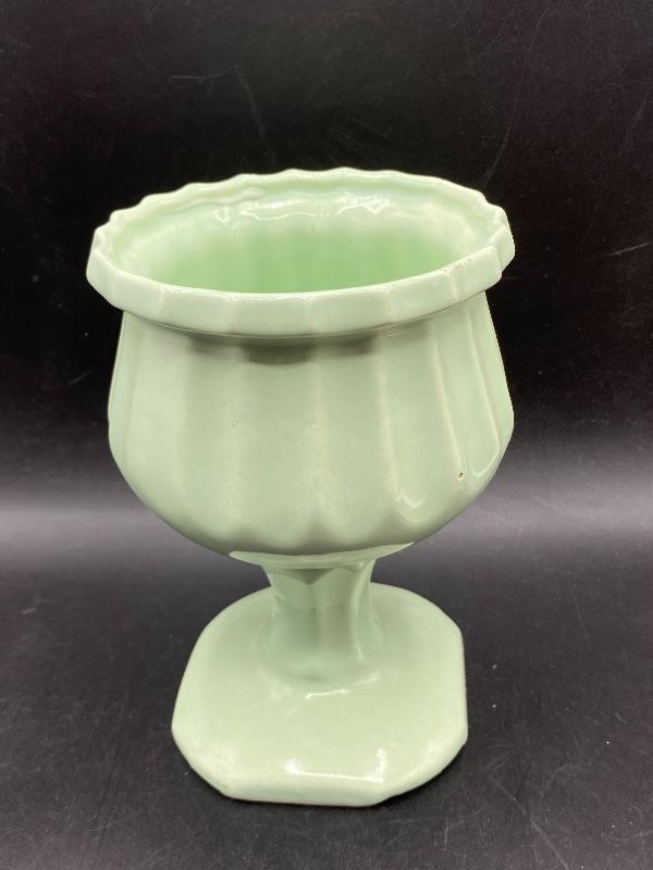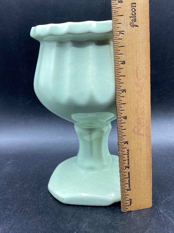 Vintage mint green pedestal planter. Good condition, no chips. Unsigned. Stands about 7.5". Great for a plant, live or faux.