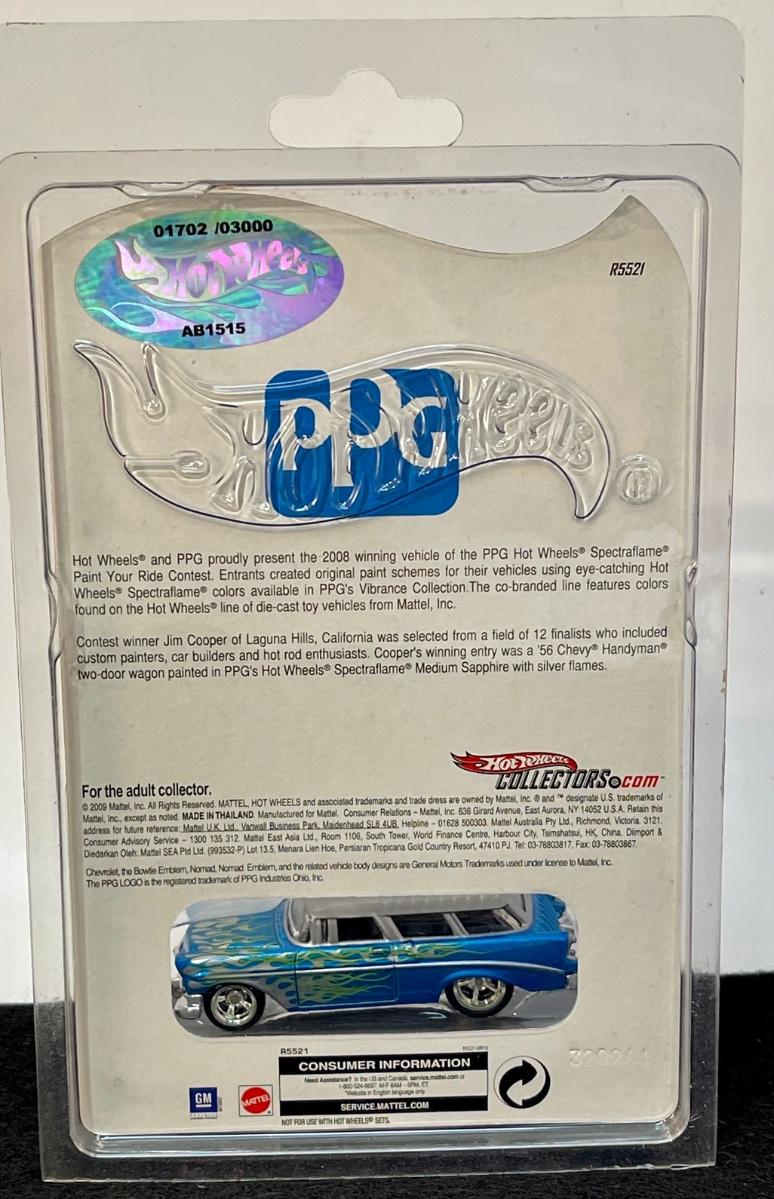 MINT signed Hot Wheels RLC '56 Chevy Nomad Handyman PPG 1702/3000 Jim Cooper autographed package. Produced in 2009.