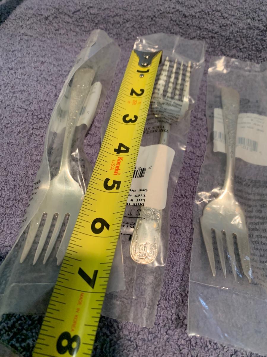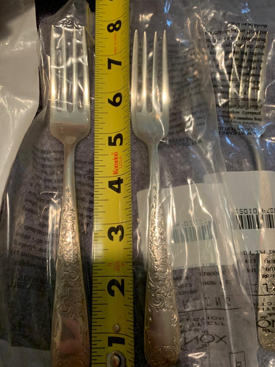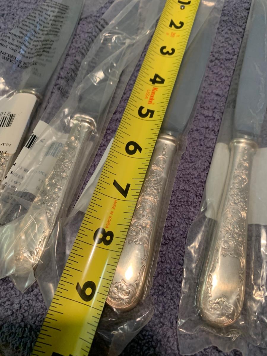 FOUR: 7.25” Dinner Forks, 6.5” Spoons, 6.25 Salad Forks, 9” Sterling Handled Knives.