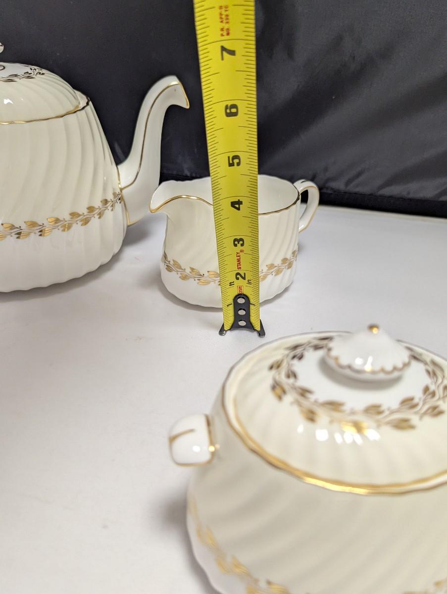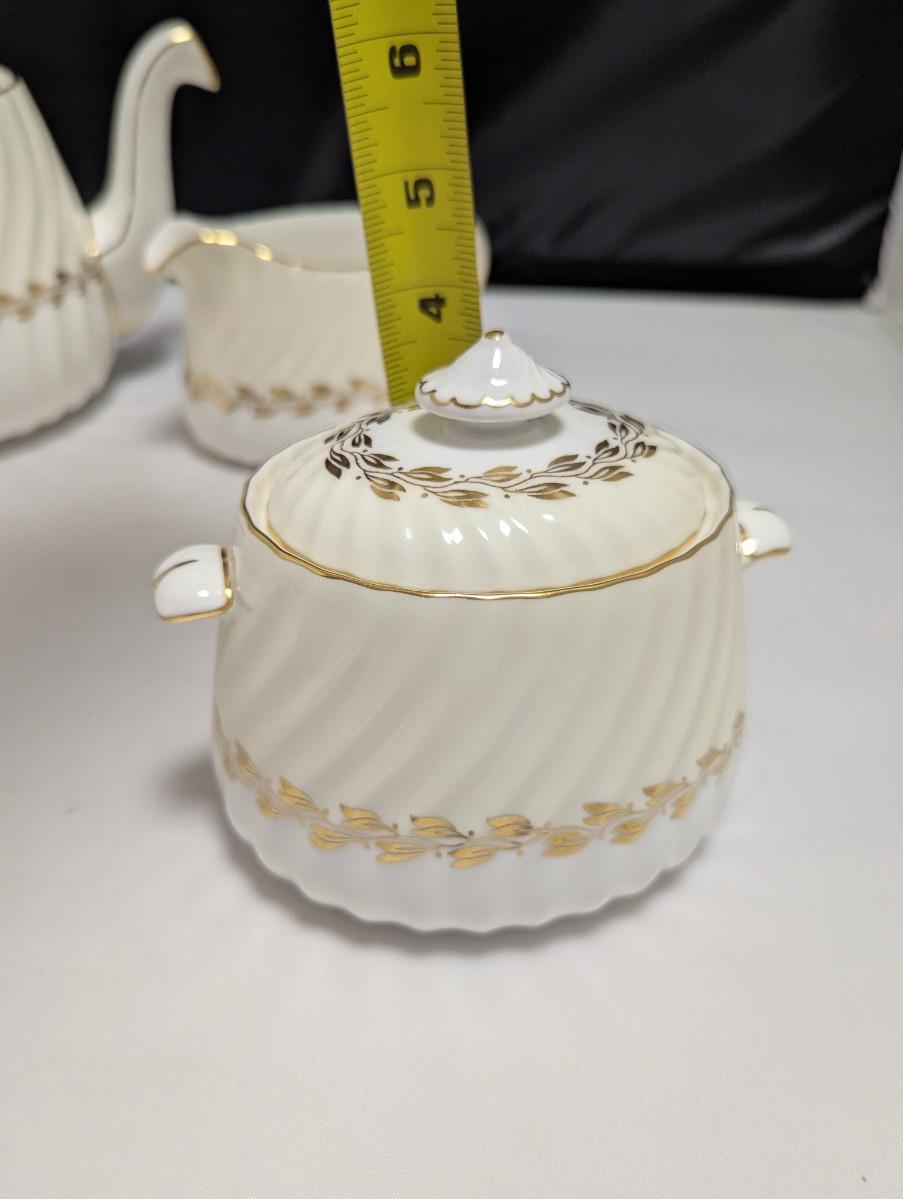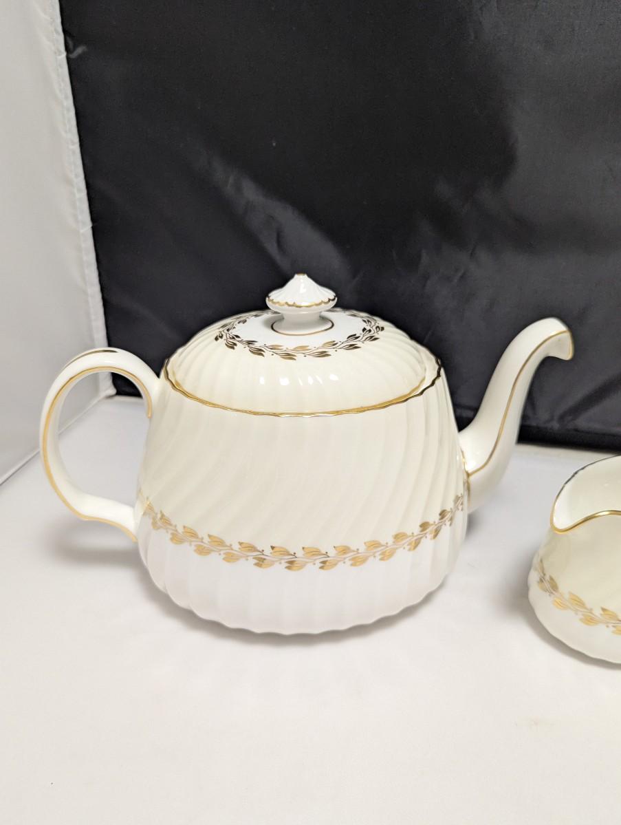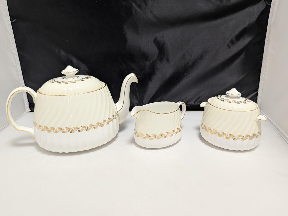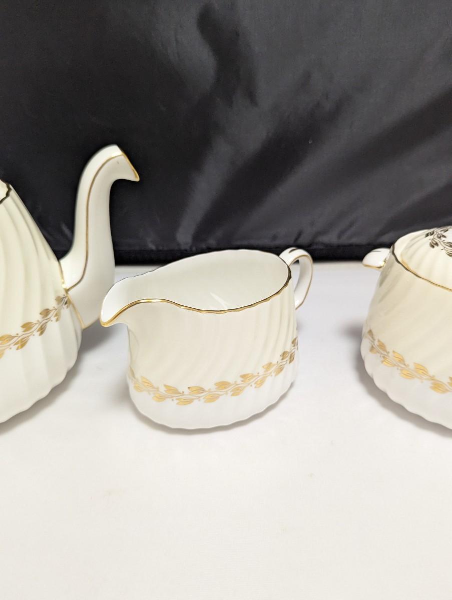 Minton Bone China Gold Cheviot Coffee Pot With Creamer & Sugar Set