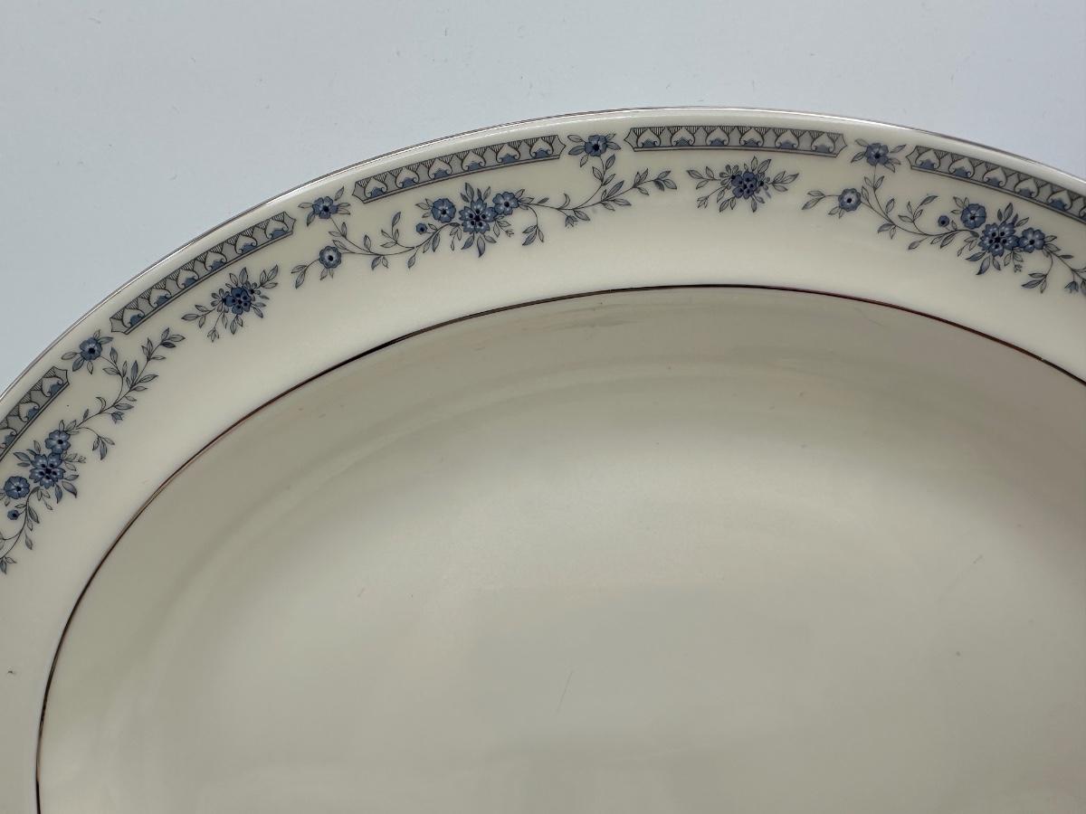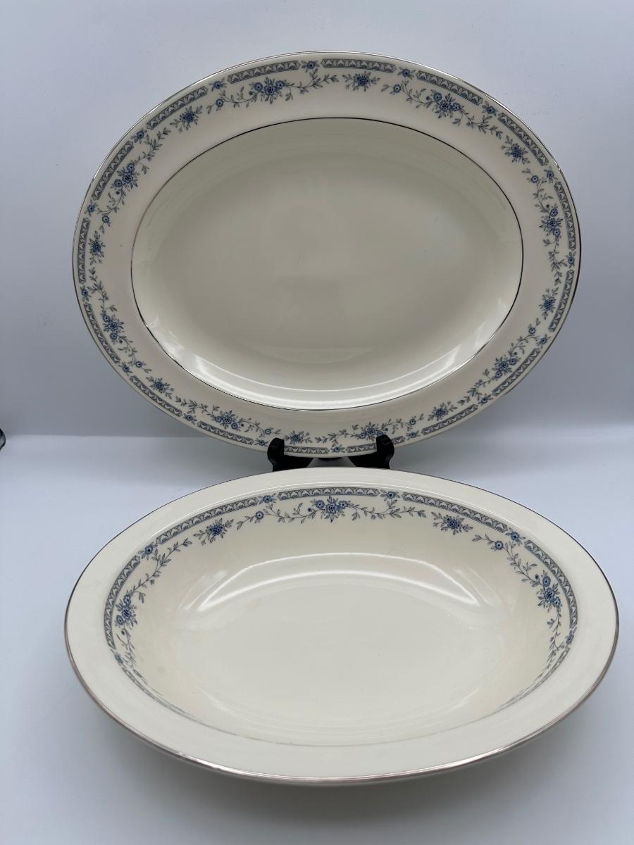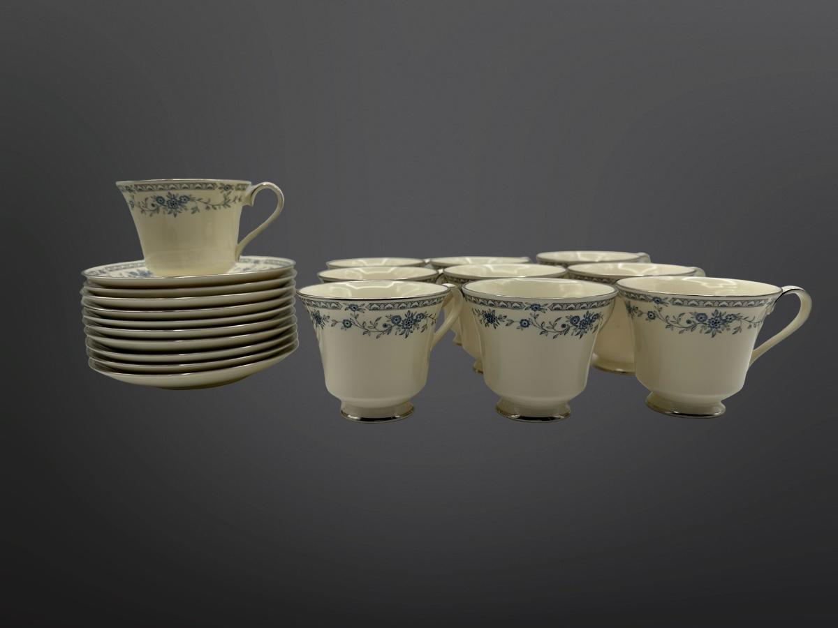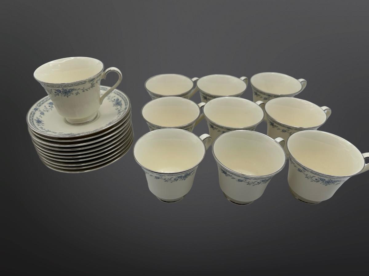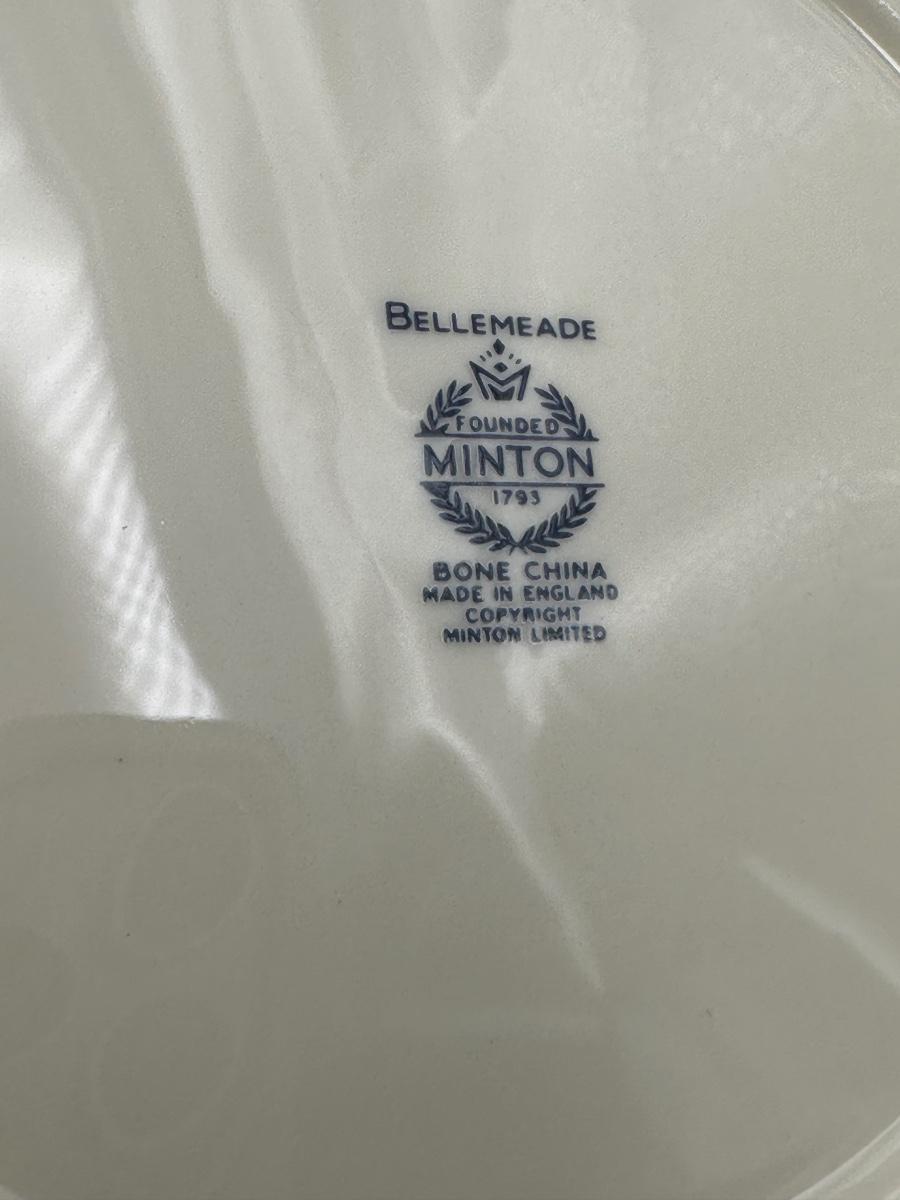 Minton Fine China Dinnerware Service – Blue Floral with Silver Trim, Complete Set of Plates, Cups & Serving Pieces