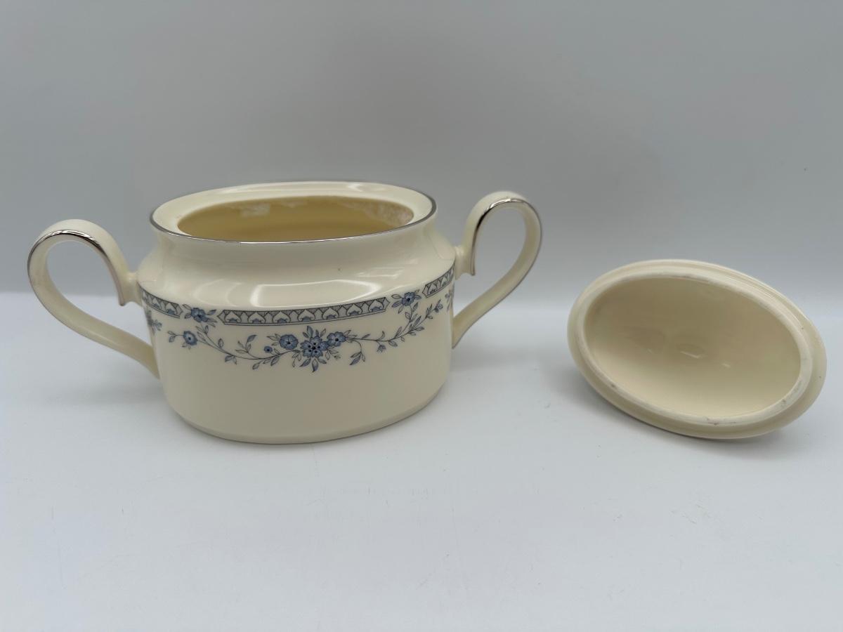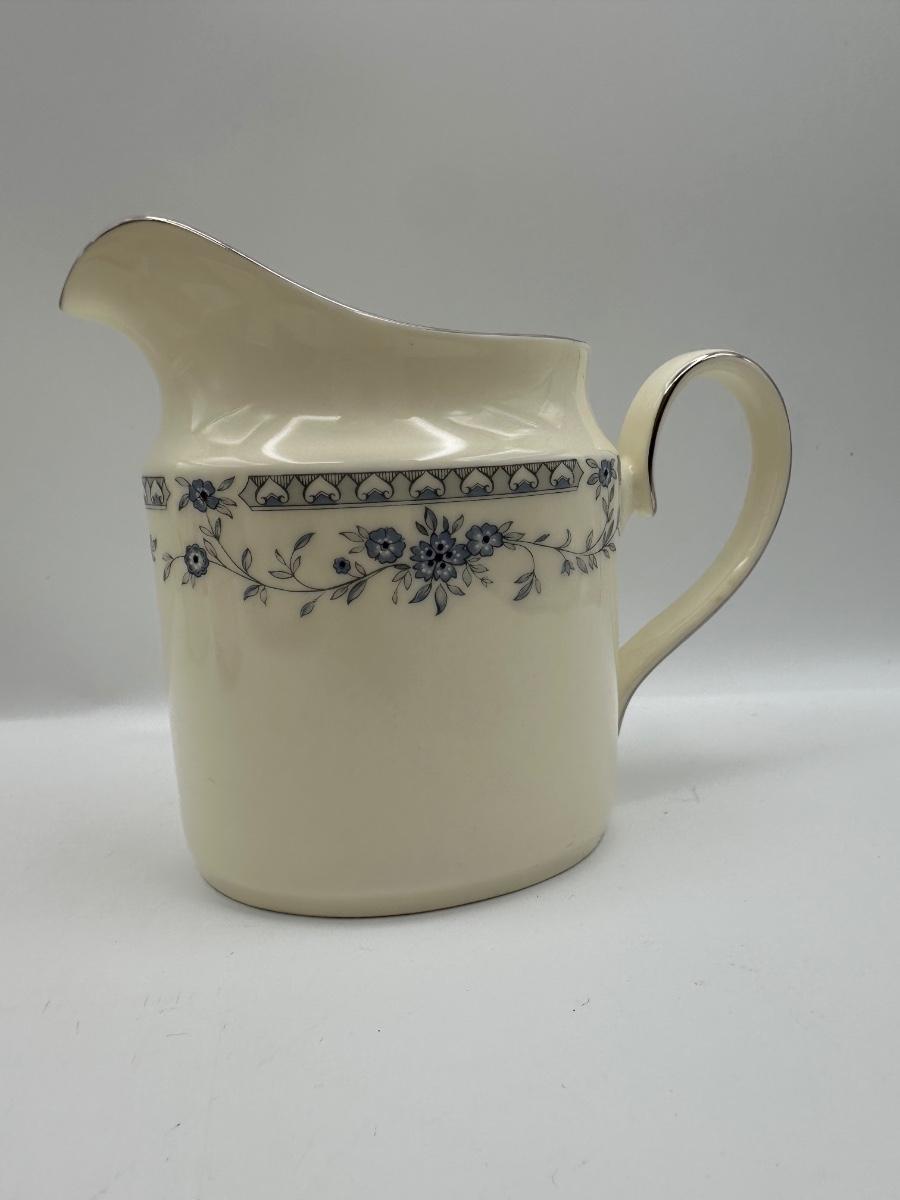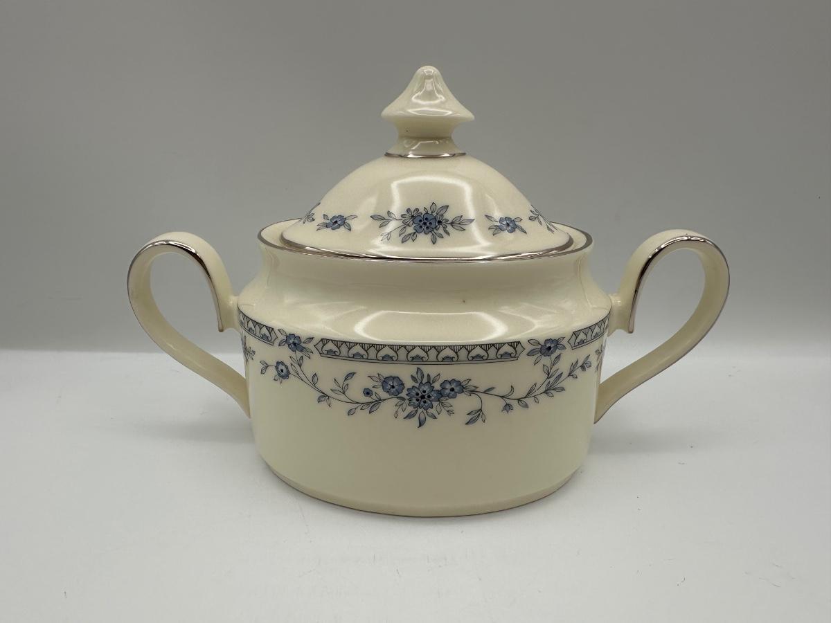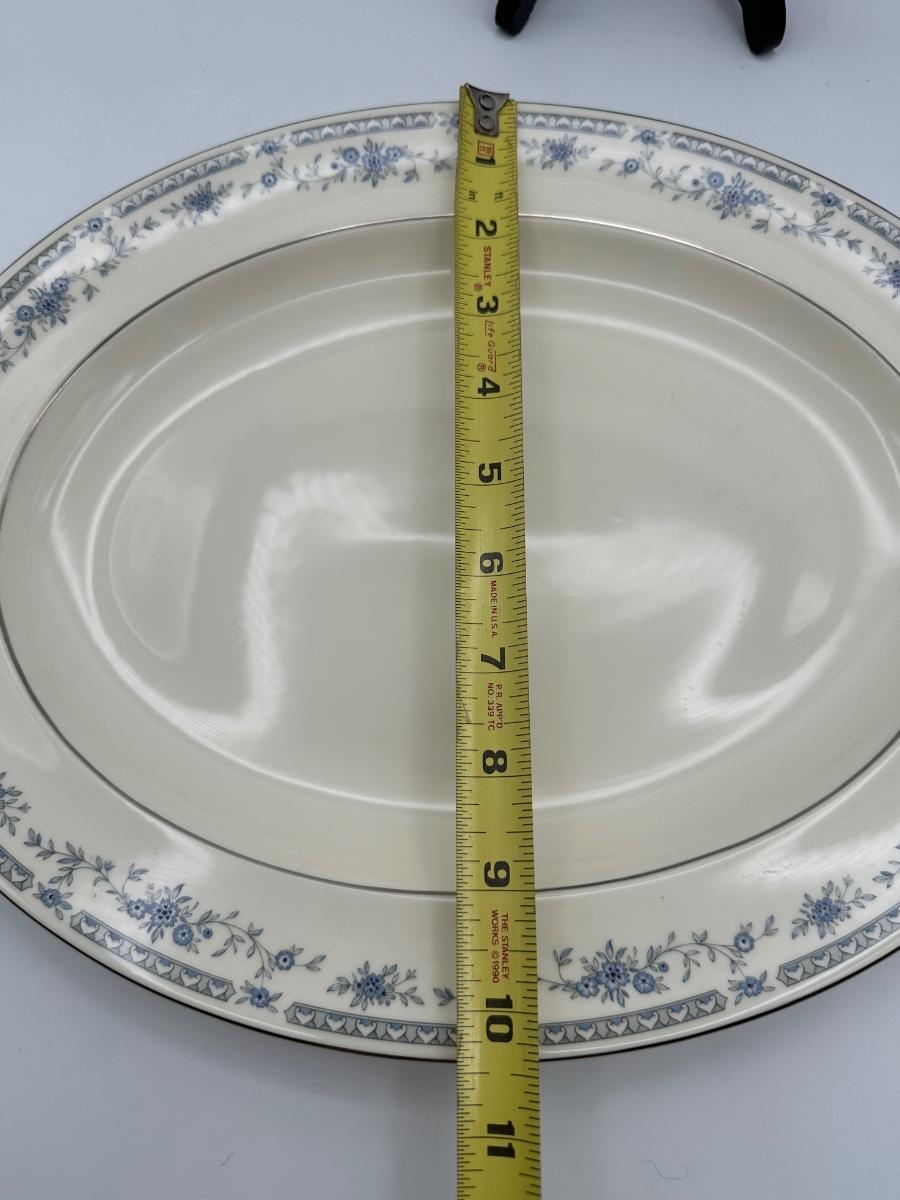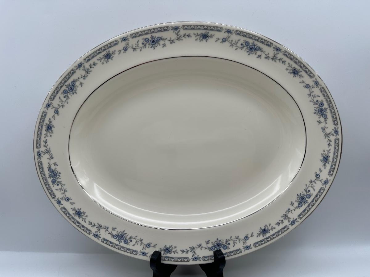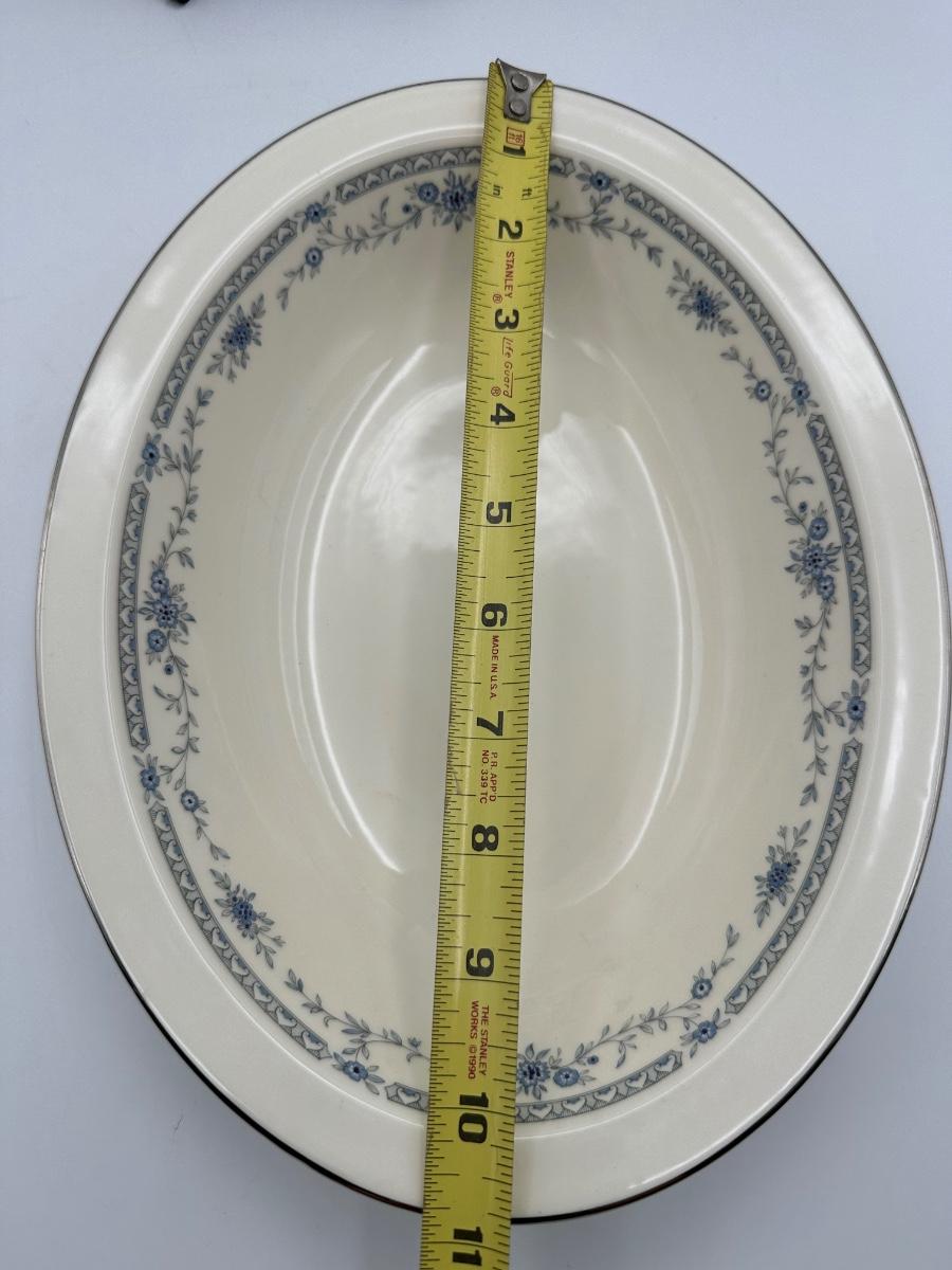 Minton Fine China Dinnerware Service – Blue Floral with Silver Trim, Complete Set of Plates, Cups & Serving Pieces