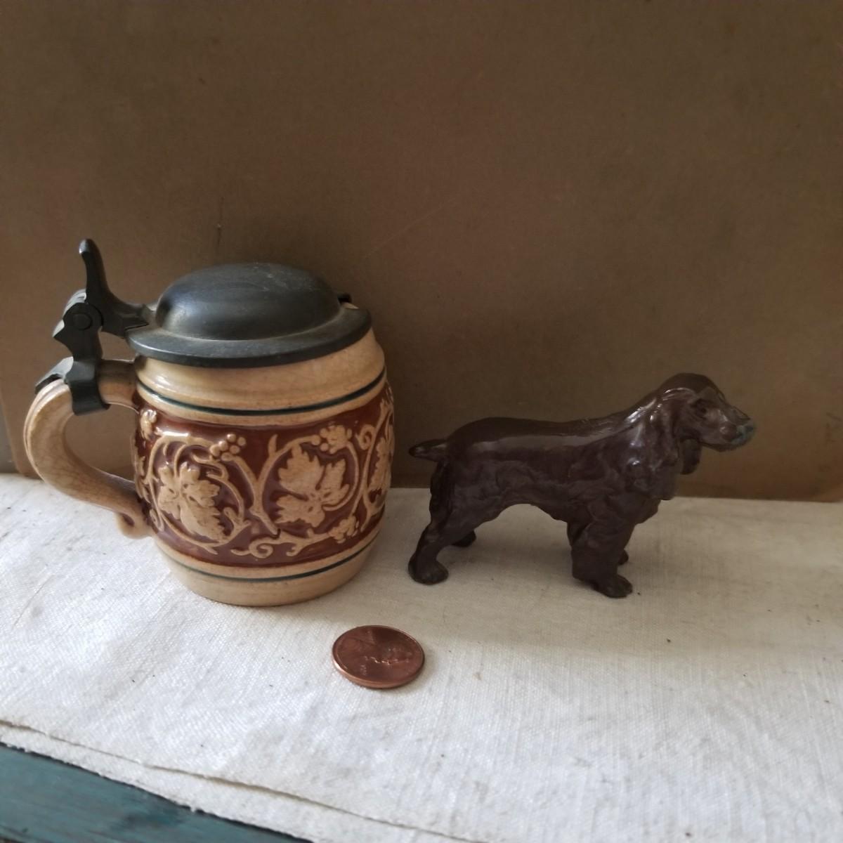 Very good condition miniture stein and sphelter dig with brinze wash