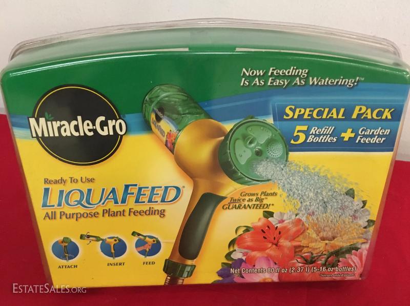 Item is new in sealed package, never used. 5 refill bottles and one garden feeder dispenser.