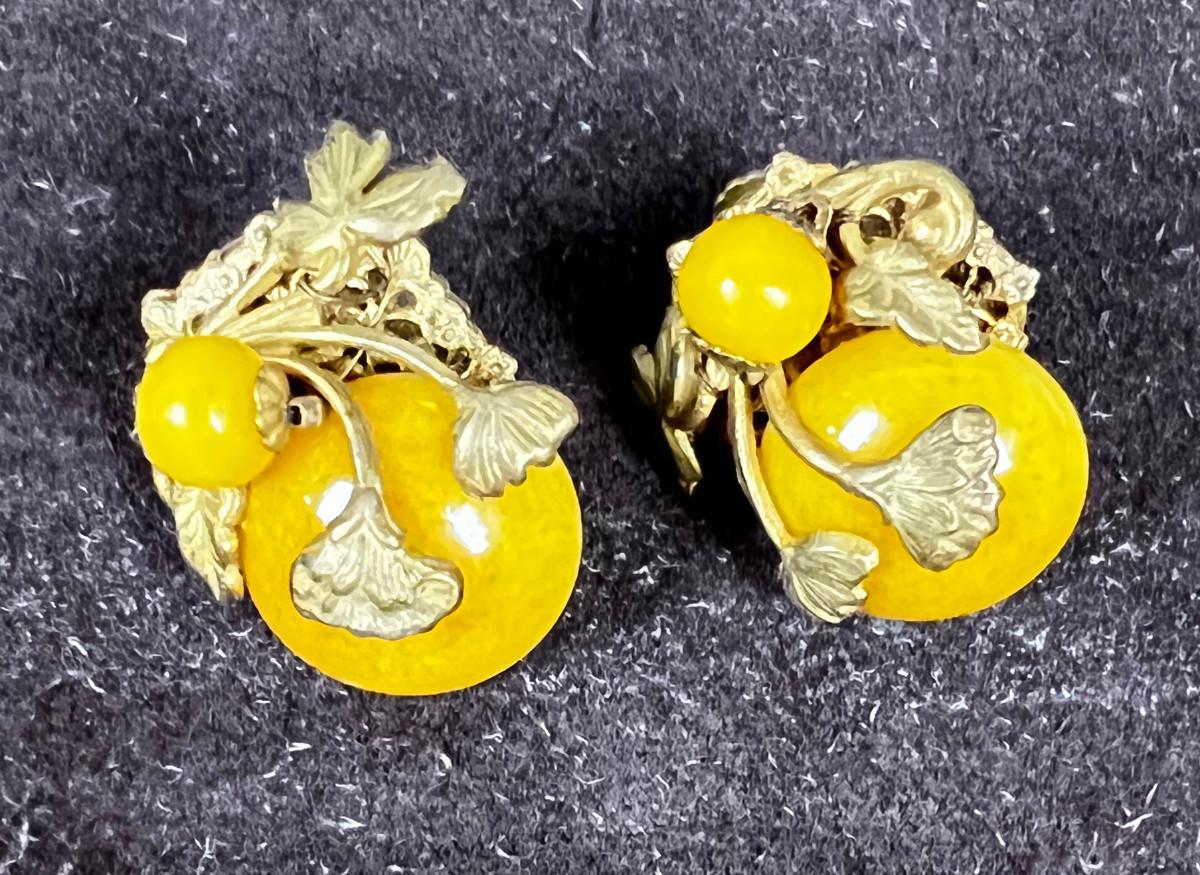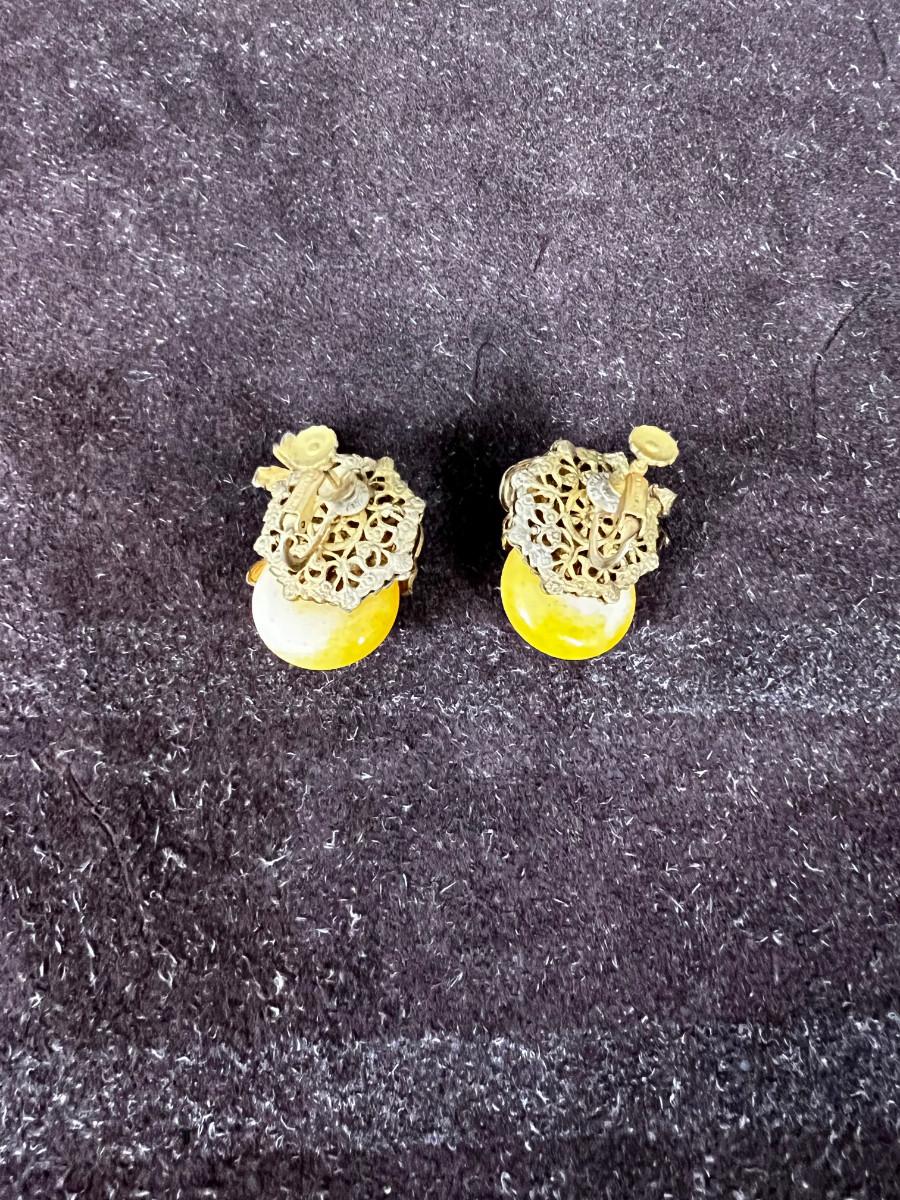 Miriam Haskell Clip on Earrings Brassy Leaf Cluster Custard