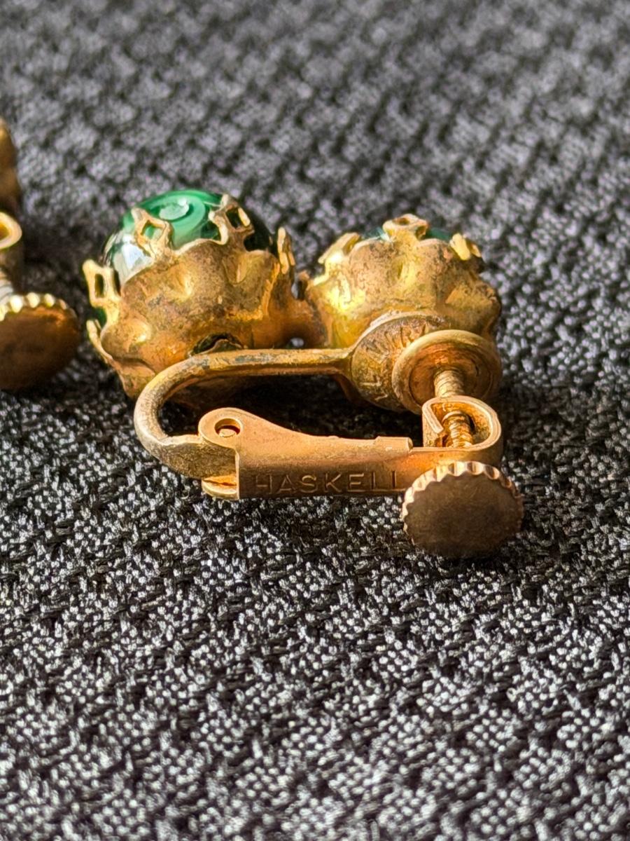 Miriam Haskell vintage green clip on earrings
