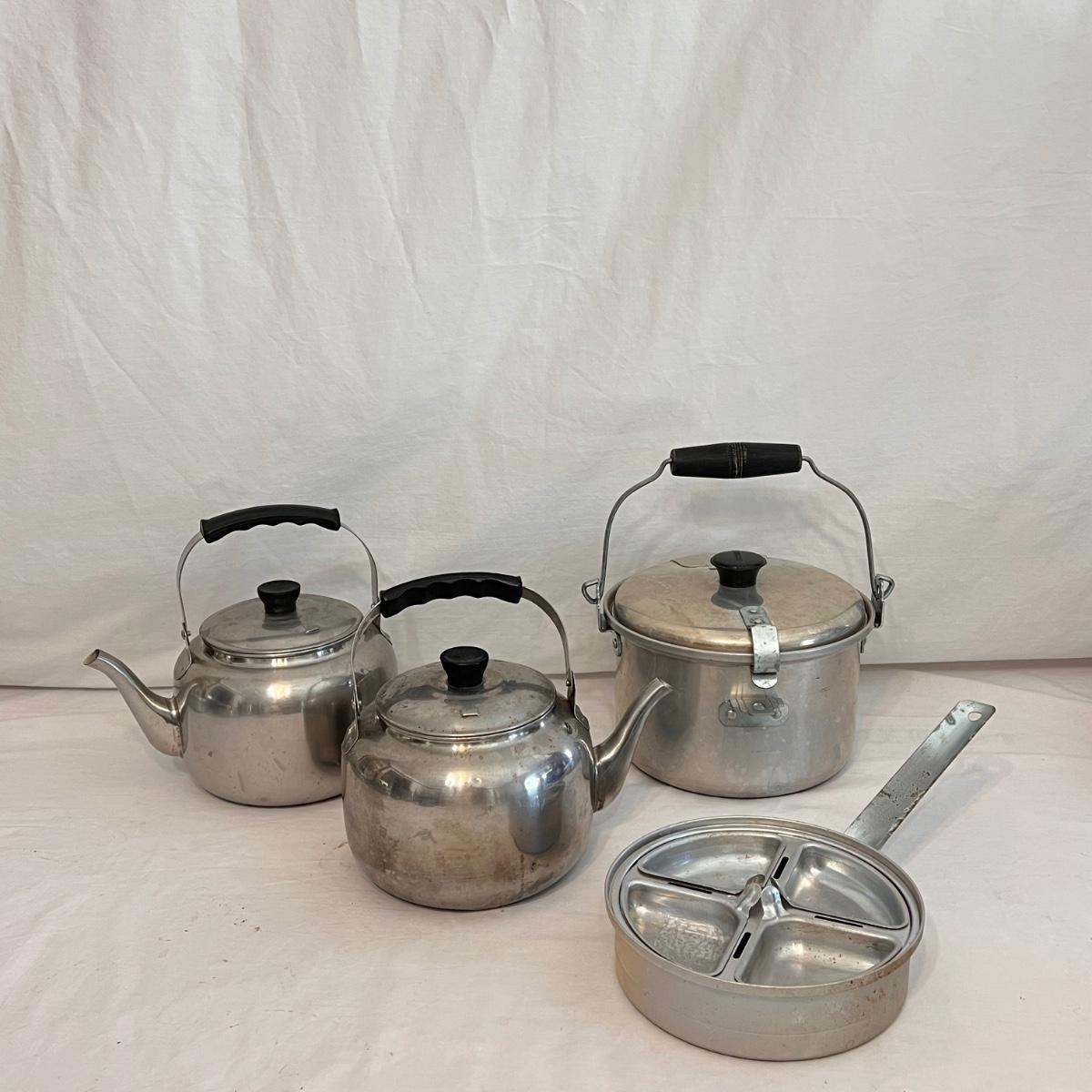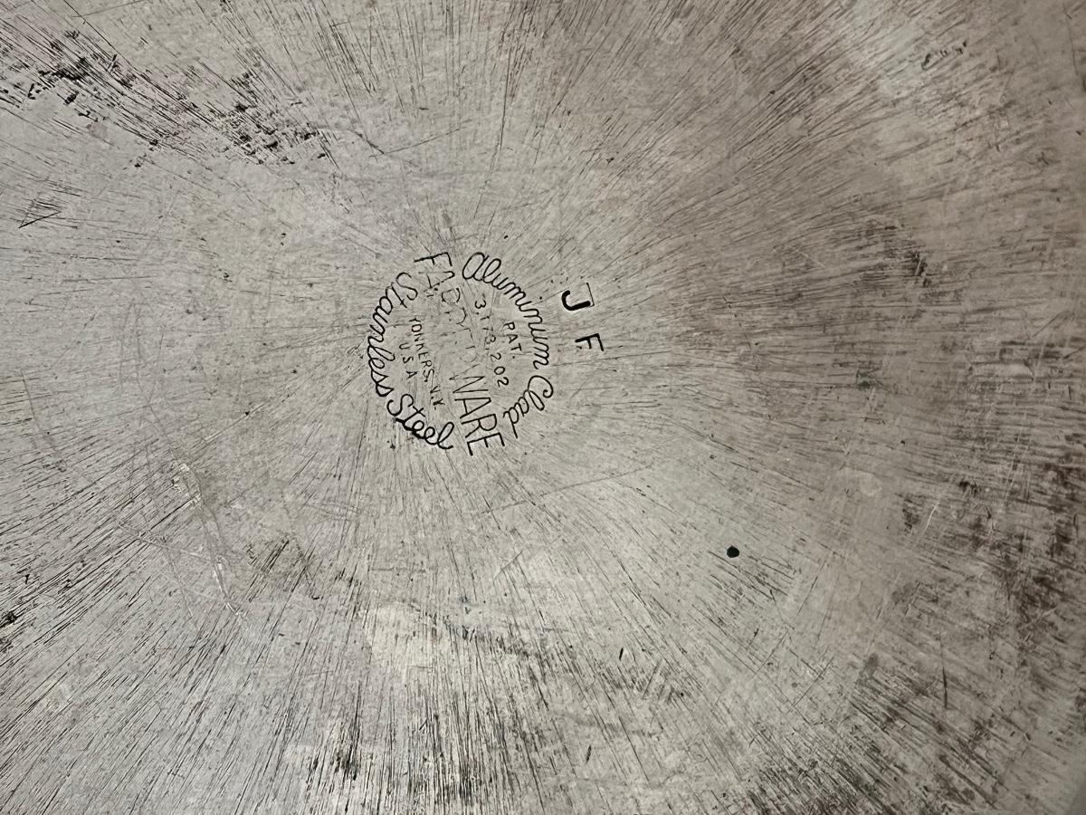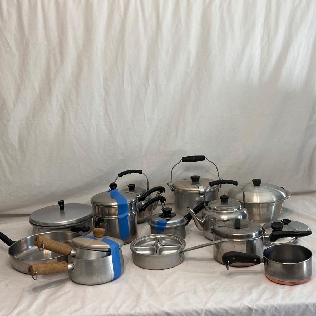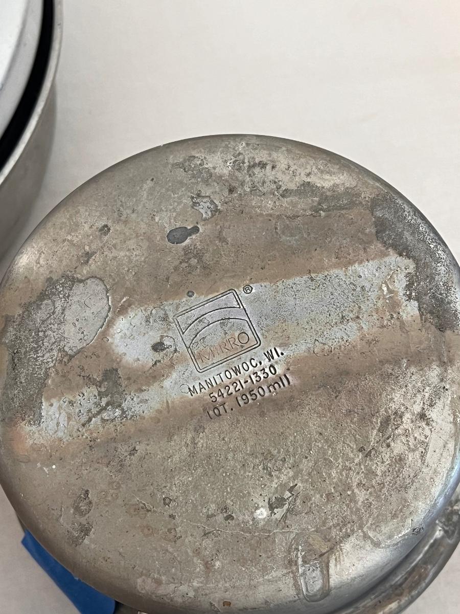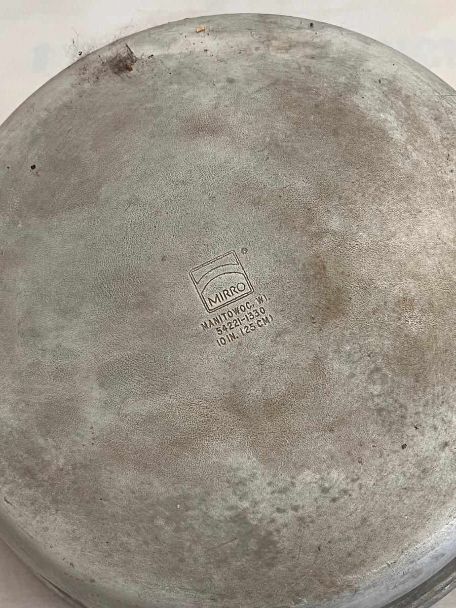 This lot includes several Mirro pans and other branded cookware. The largest item is a Mirro pot that measures 13”D x 6”H. Shipping available. Shipping can be costly. We suggest contacting our preferred local shipping provider, Postage Express, with dimensions and getting an estimate before bidding: (828) 670-5501 or shipping@postageexpressnc.com.