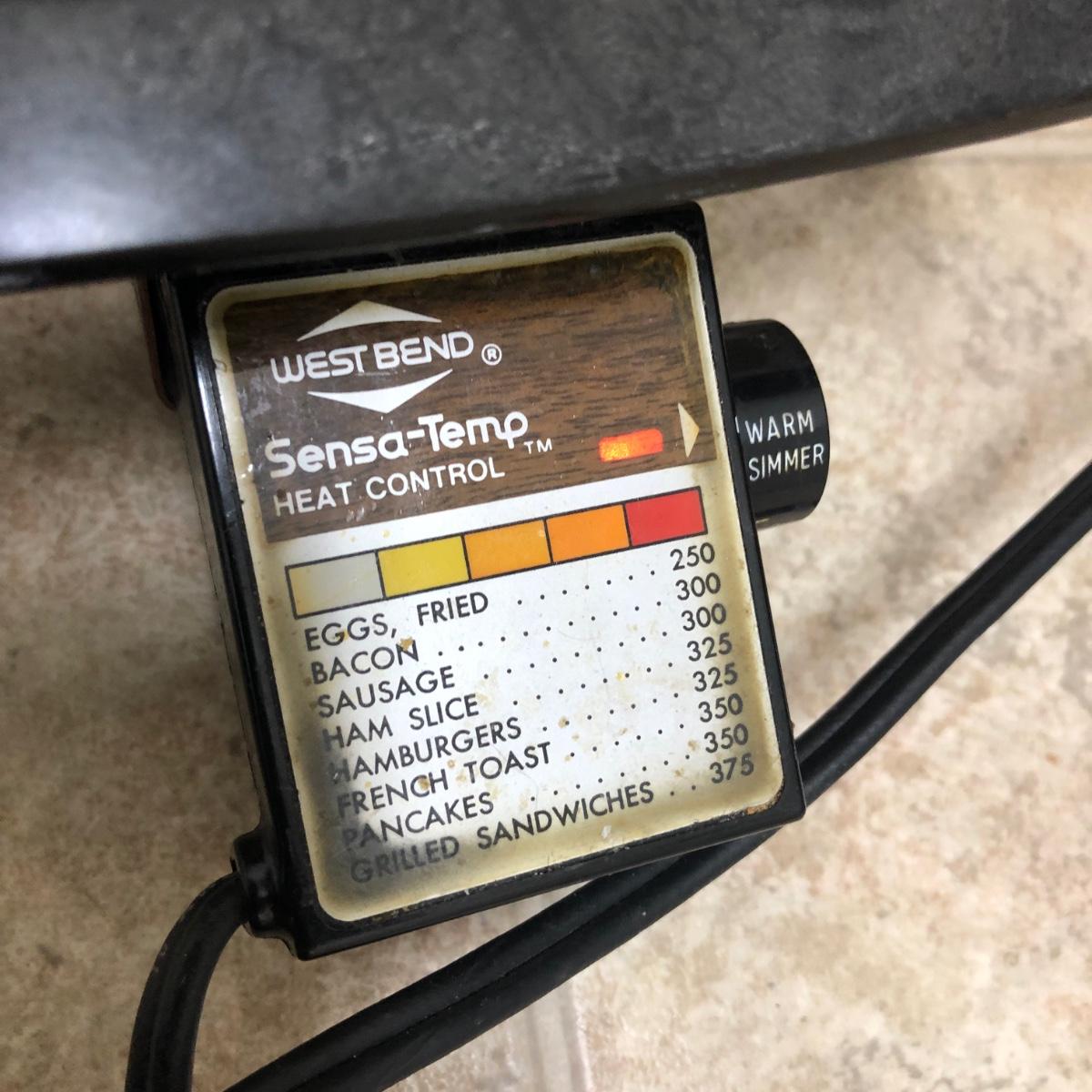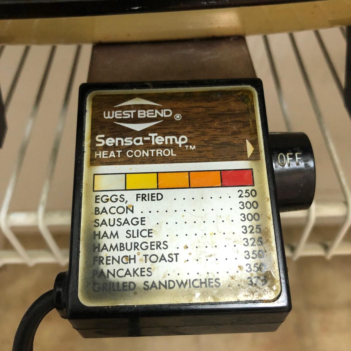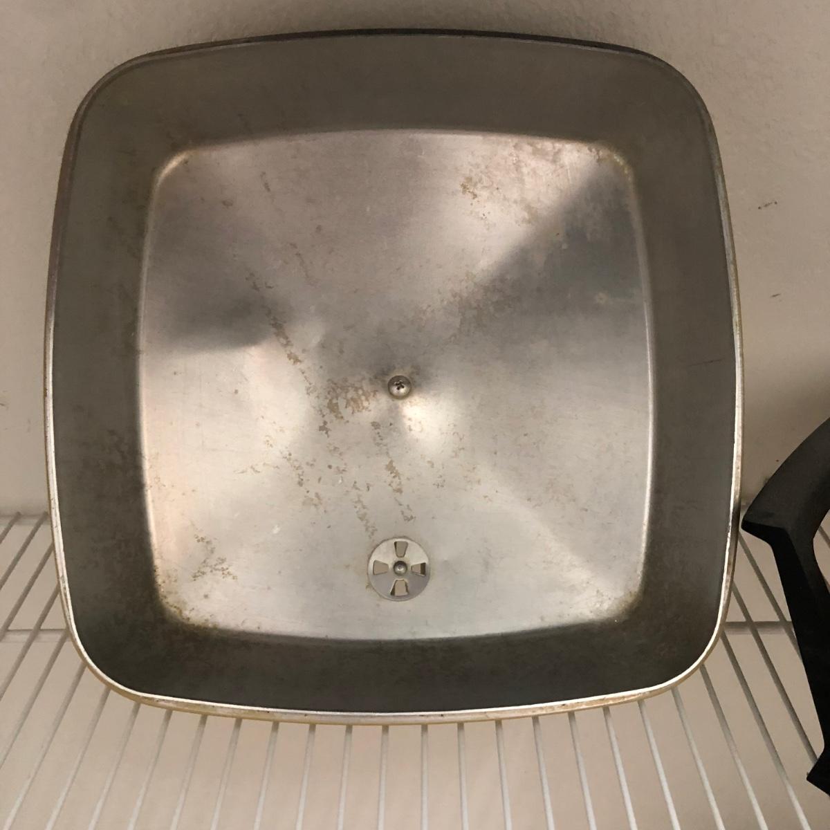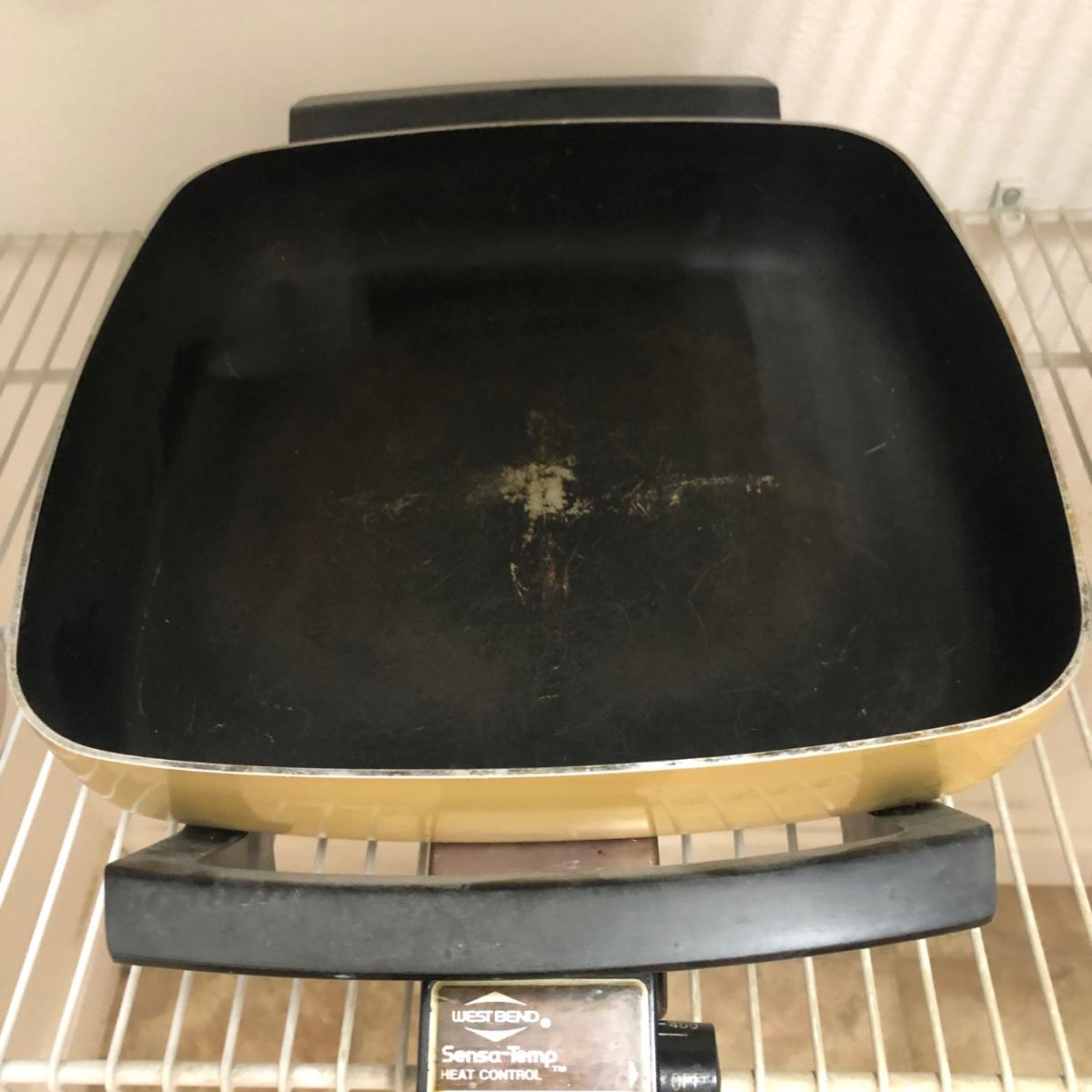 There are three items in this lot: one West Bend covered skillet and two Mirro Pressure Cookers. The West Bend skillet turned on when plugged in. Just the skillet part measures 11” x 11” x 2.5”. The older Mirro pressure cooker is 8.5” in diameter and stands 5” tall. The shiner Mirro pressure cooker is 8” in diameter and stands 6” tall. Shipping Available.