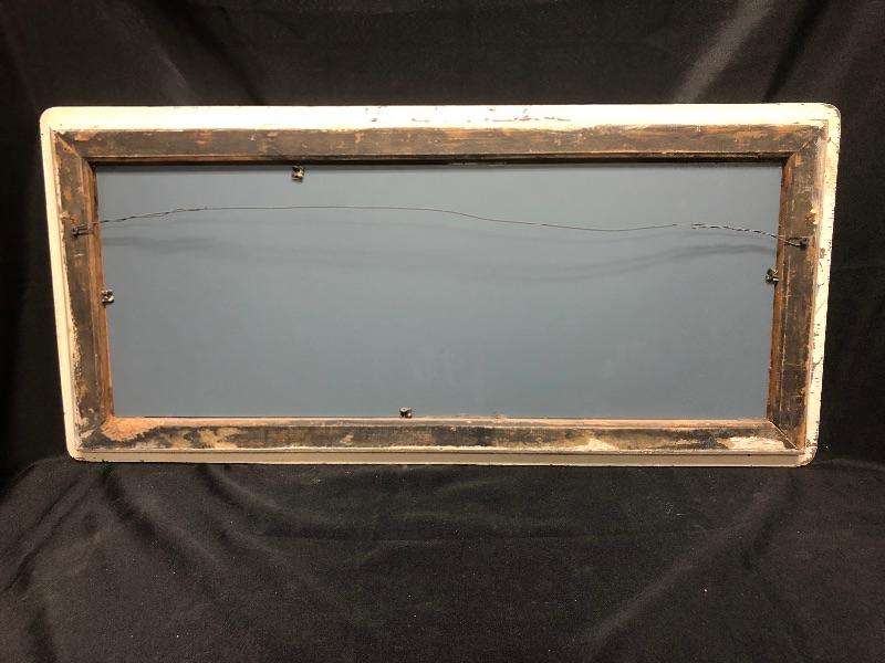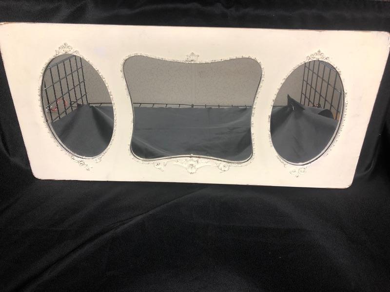 White vintage triple mirror. Has a shabby chic look to it. Solid mirror piece.