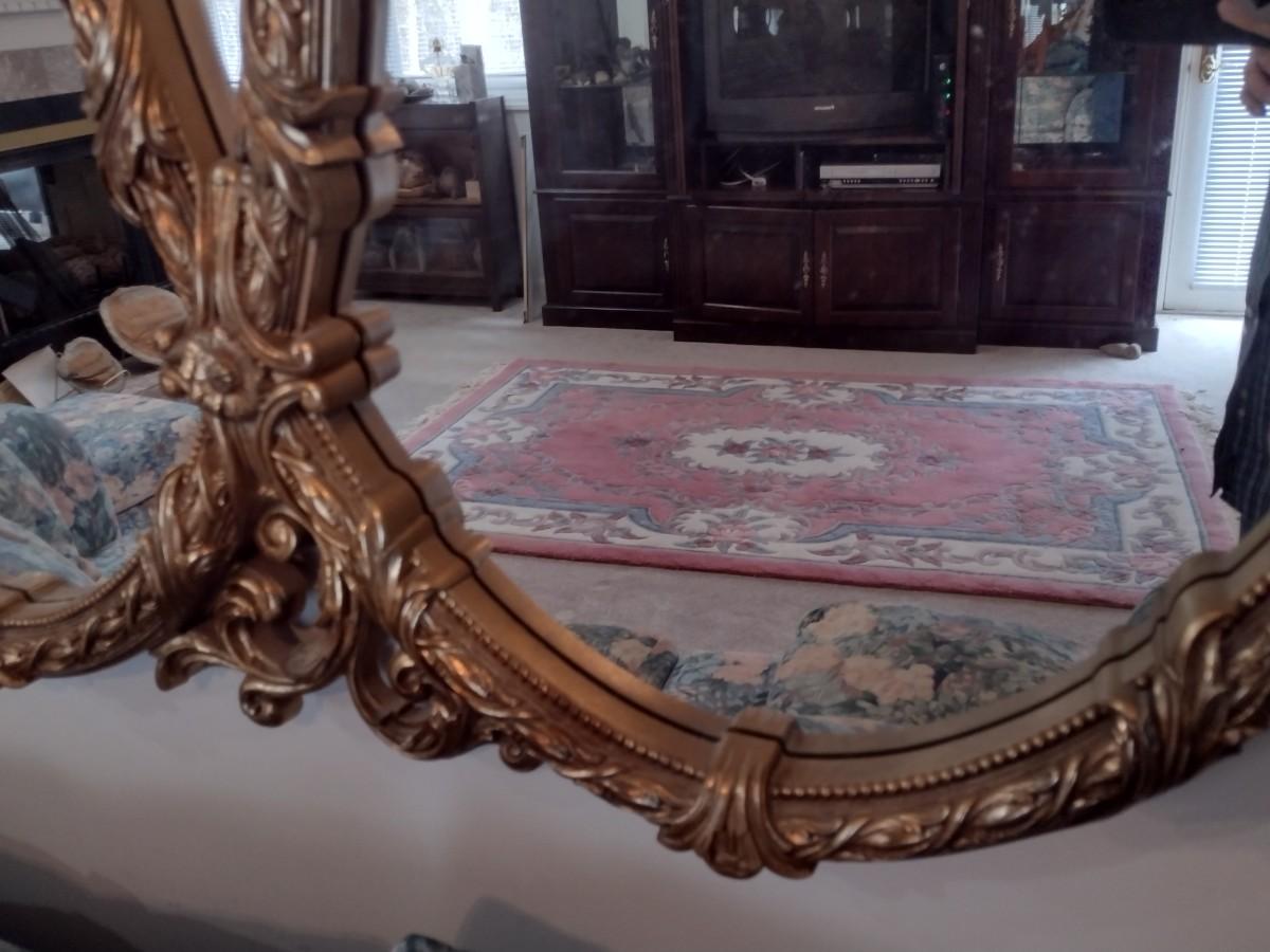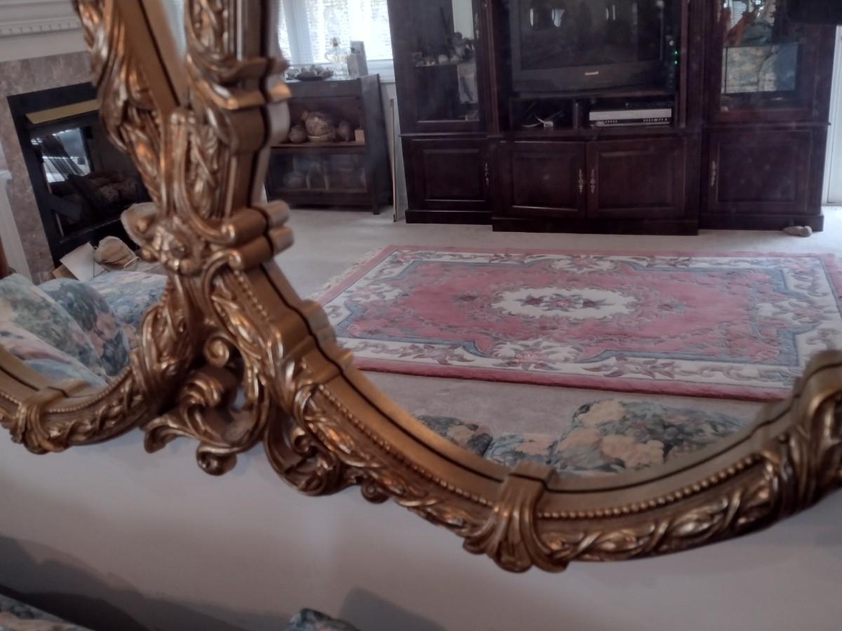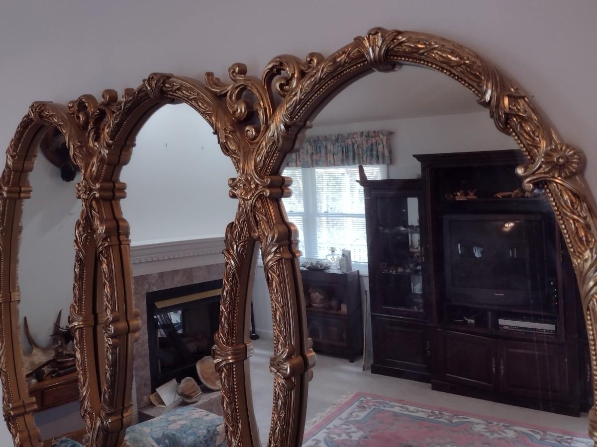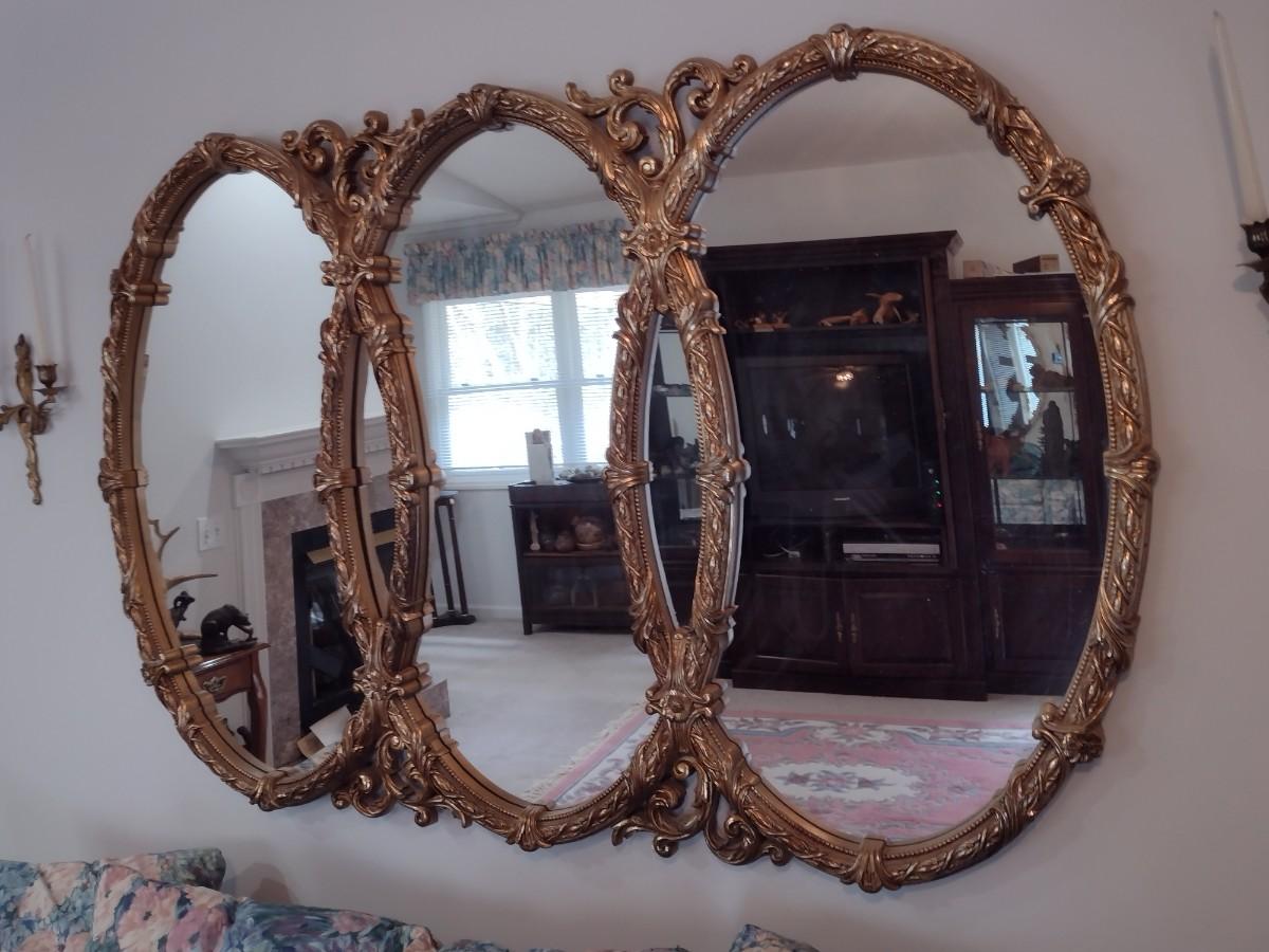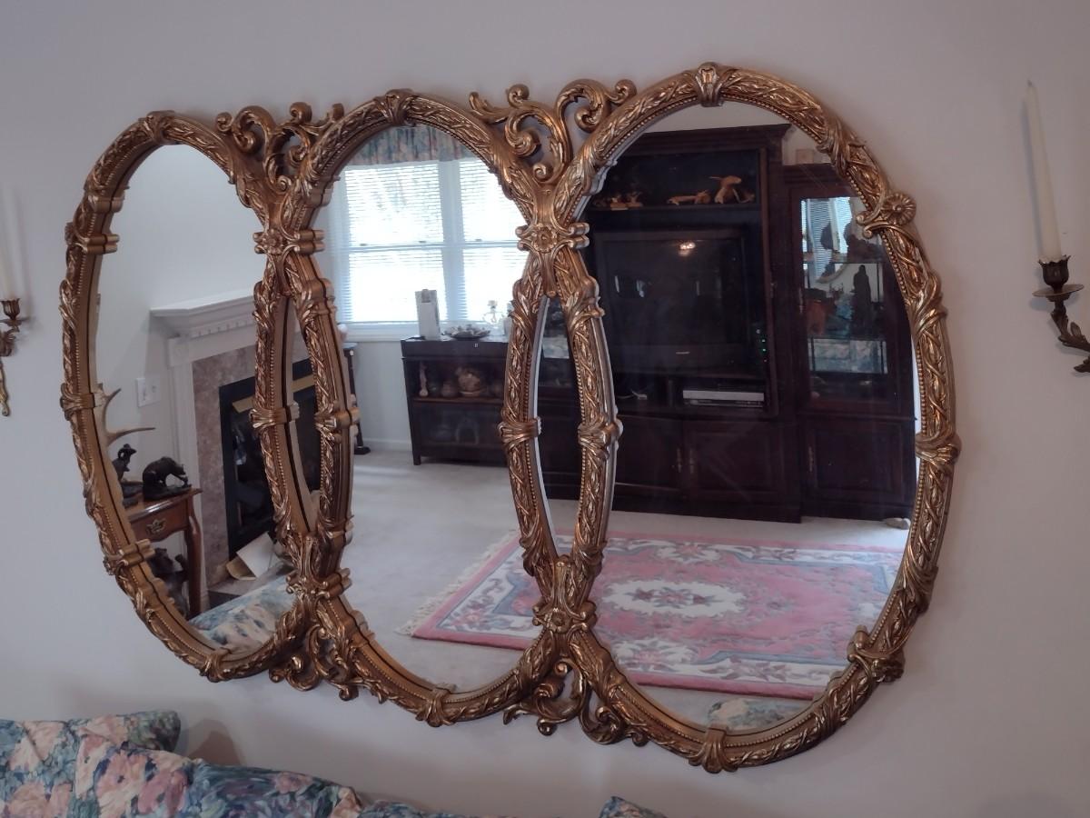 Large Ornate French Provincial Triple Ring Resin Wall Mirror
