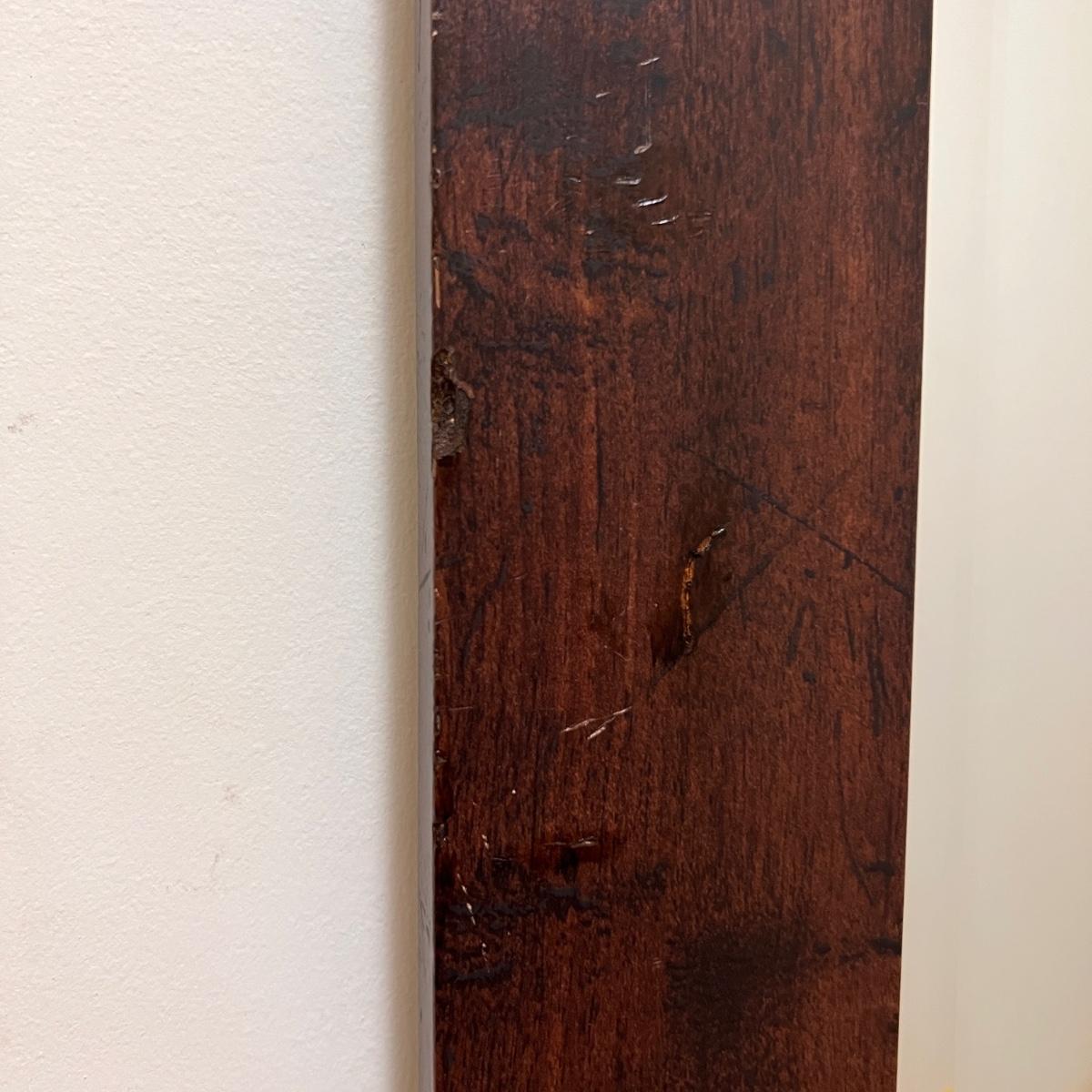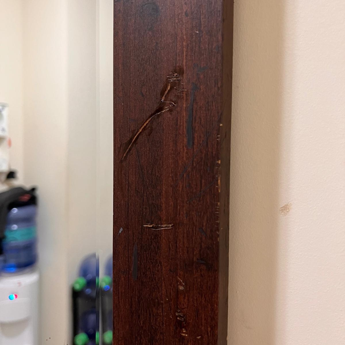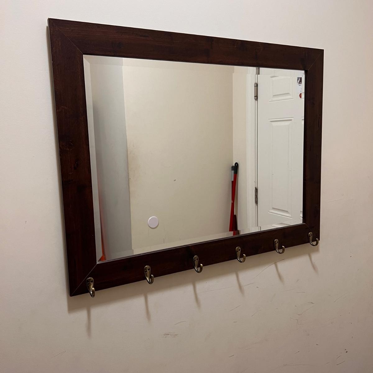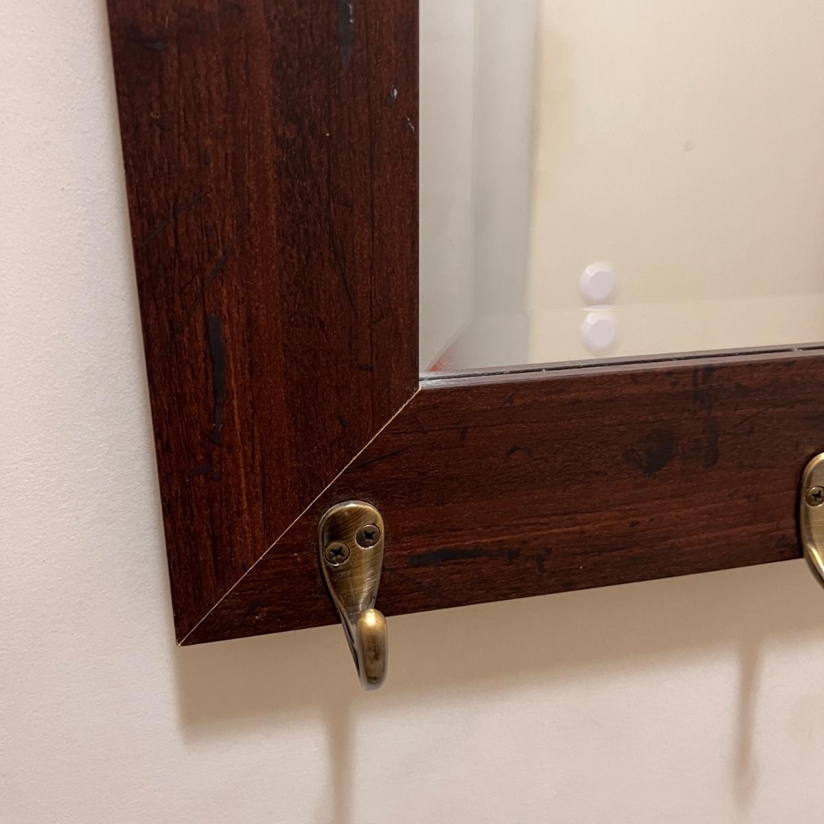 Large entryway mirror with 6 hooks. It has some scratches and knicks as shown in pictures.