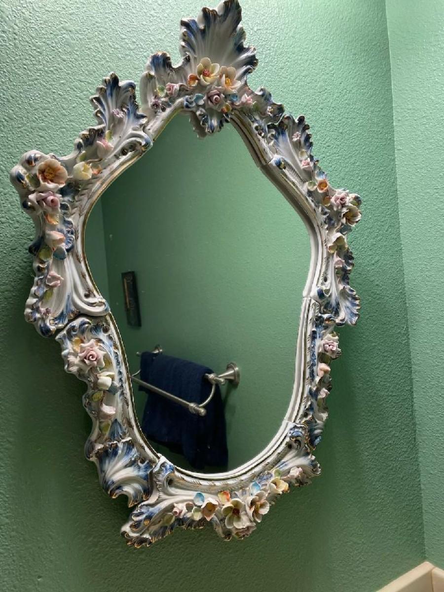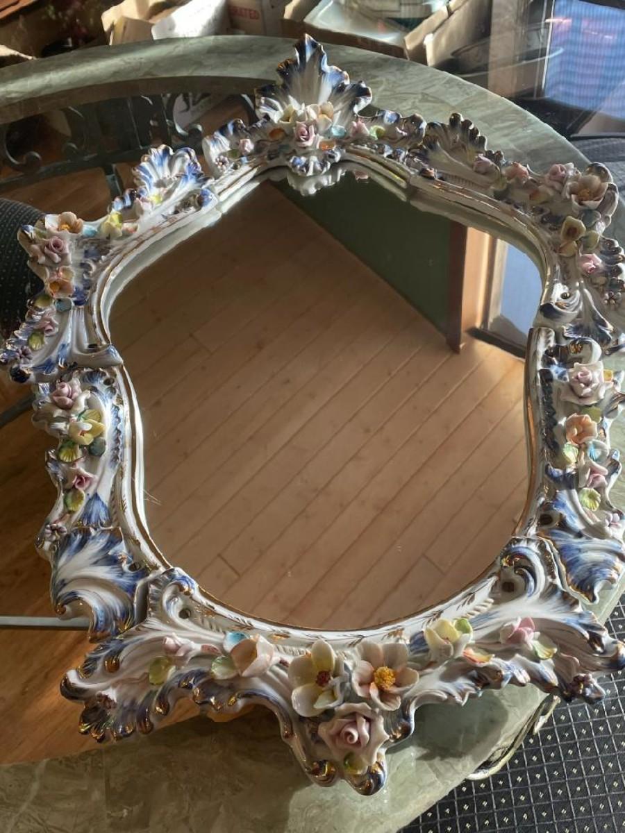 Vintage Porcelain Capodimonte Style Framed Wall Mirror