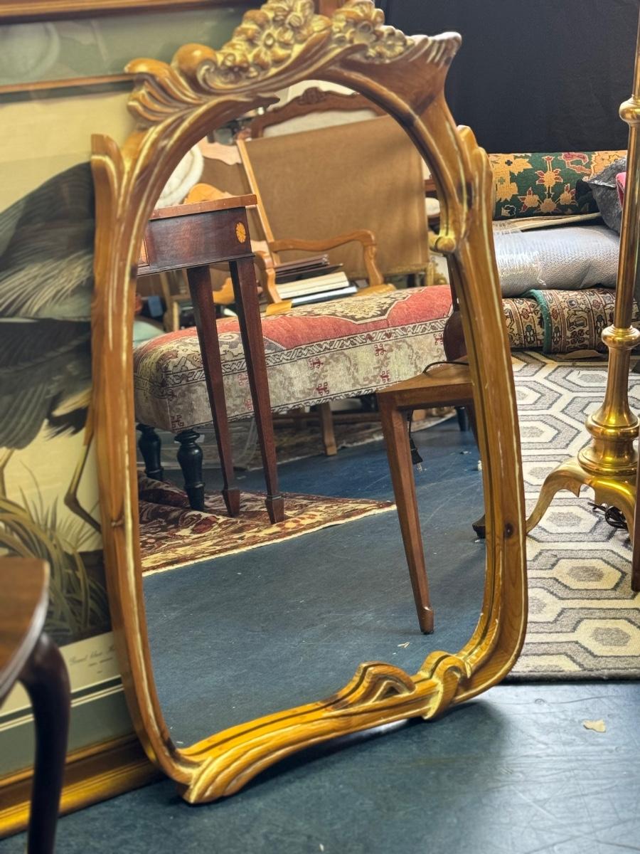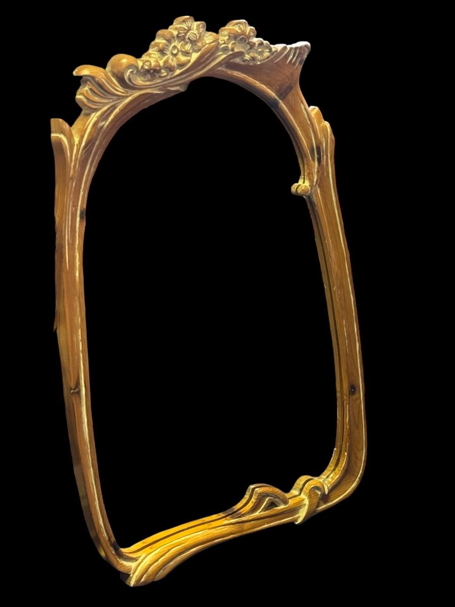 Heavily constructed Mirror with wood frame/floral wood design. The was emphasizes the corded design. Perfect for a guest room.