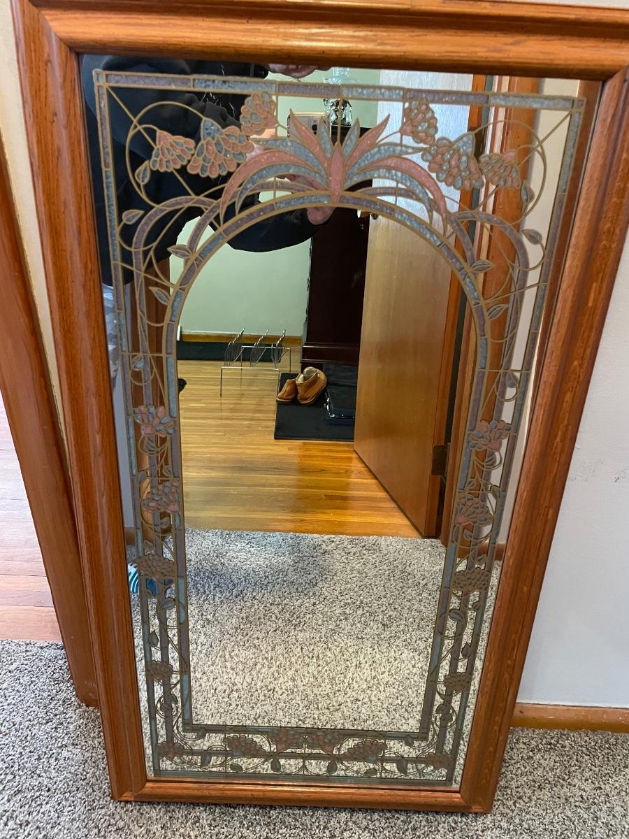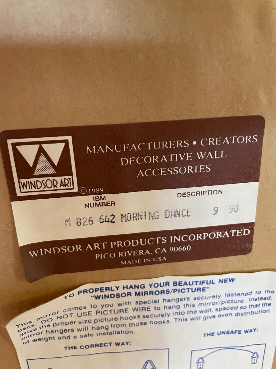 Windsor Art “Morning Dance” mirror decor with wood frame. Size is 40” tall x 21” wide.