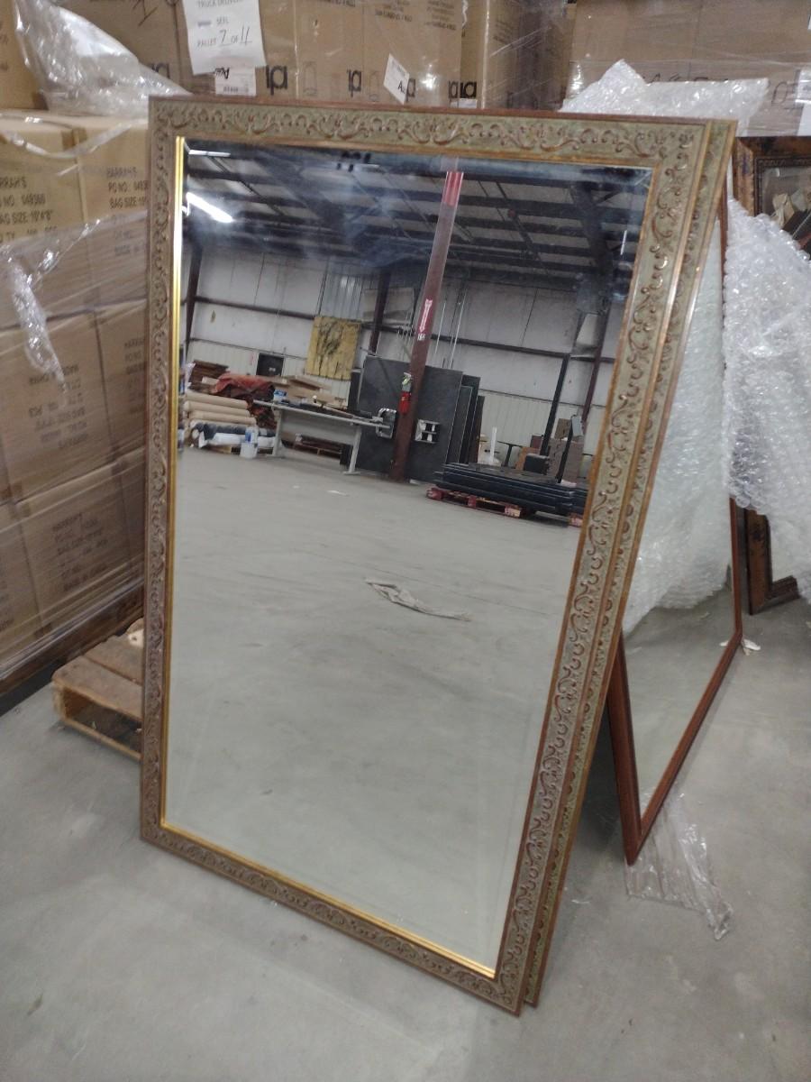 Large Beveled Glass Wall Mirror Brown with Antique Green Frame Shipping option via freight or local mover is Buyer's responsibility and expense. Buyer must have all shipping scheduled within the stated dates and times of pickup. Recommended local movers are Beaty Bros. Moving 828-201-2982 and Carolina Pack n Go 828-489-9773