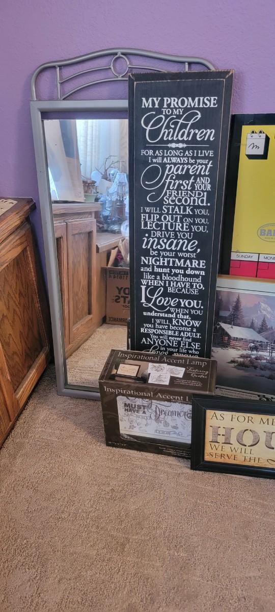 Mirror, inspirational accent lamp, musc saying wall pieces