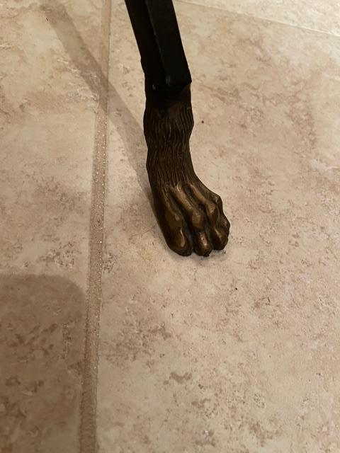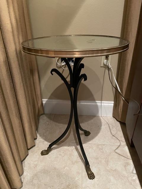 Round mirror-top metal base bedside/occasional table with lion's feet. 17" diameter x 26 1/4" high
