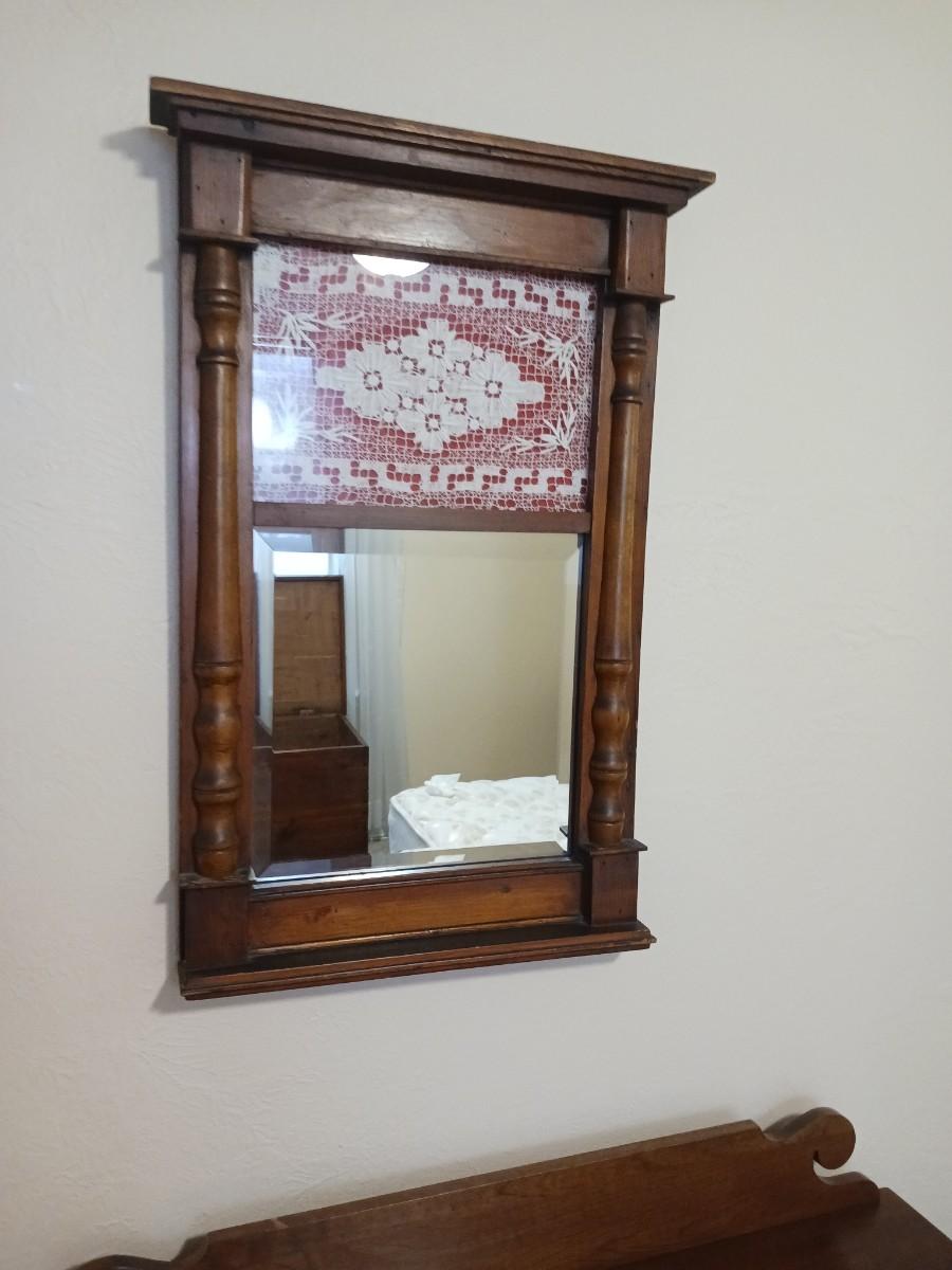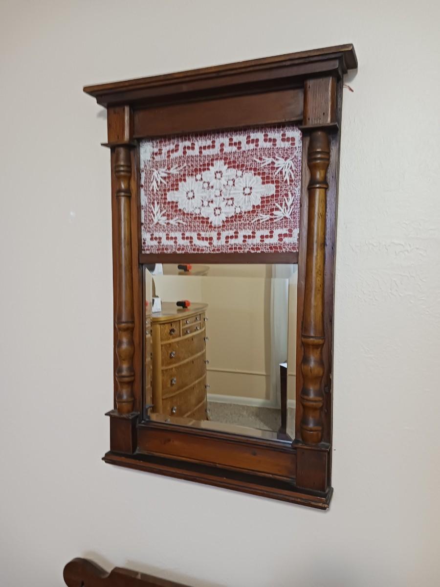 ANTIQUE WALL MIRROR WITH HAND CRAFTED DOLIE