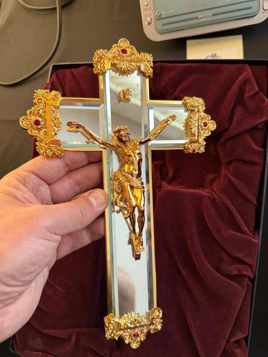 Mirrored Crucifix in red felt lined box